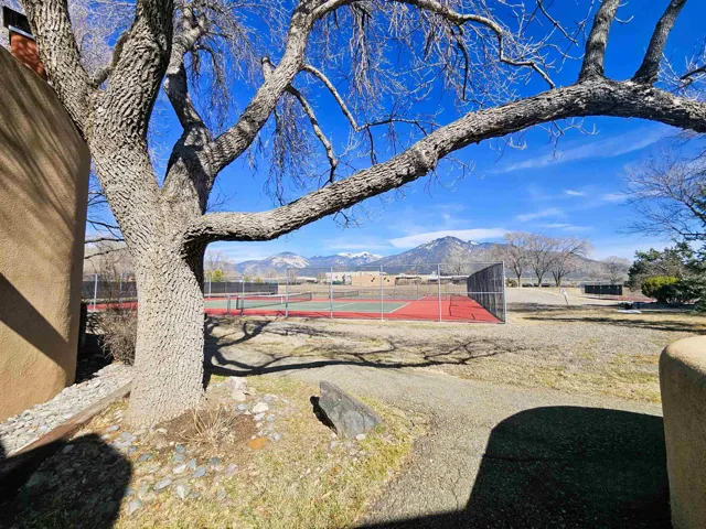Warm and inviting 488 square foot studio single story condo with a wood burning fireplace and panoramic Taos Mountain views. This unit features tile flooring, natural light, a full kitchen and bath, and glass sliders opening to a spacious private patio with great views of the tennis courts and Sangre de Cristo Mountains. Queen size Murphy bed and sofa sleeper comfortably accommodate four people. Three closets provide excellent storage for seasonal gear. Sold furnished and equipped, the condo is turnkey and ready for personal use or rental, no short term restrictions. Located in the Quail Ridge Inn/Taos Tennis Club, ownership includes access to top rated tennis facilities, a seasonal pool, hot tub, onsite dining, and well maintained common areas. Ideally situated between the Town of Taos and Taos Ski Valley, this condo combines style, location, and ease of living. A rare opportunity to own a resort style getaway with outstanding amenities and exceptional mountain views.