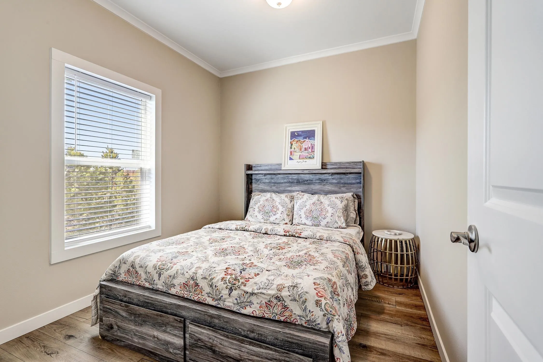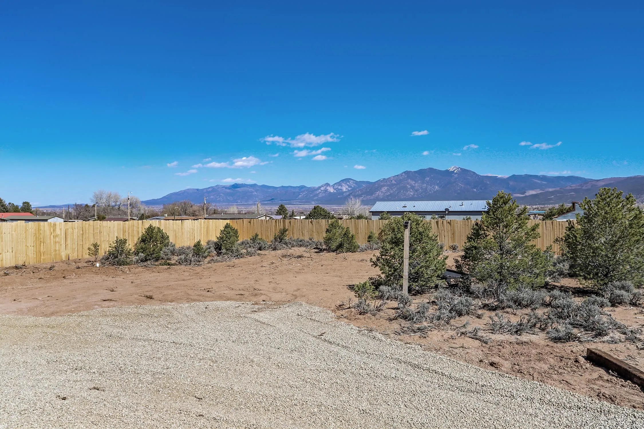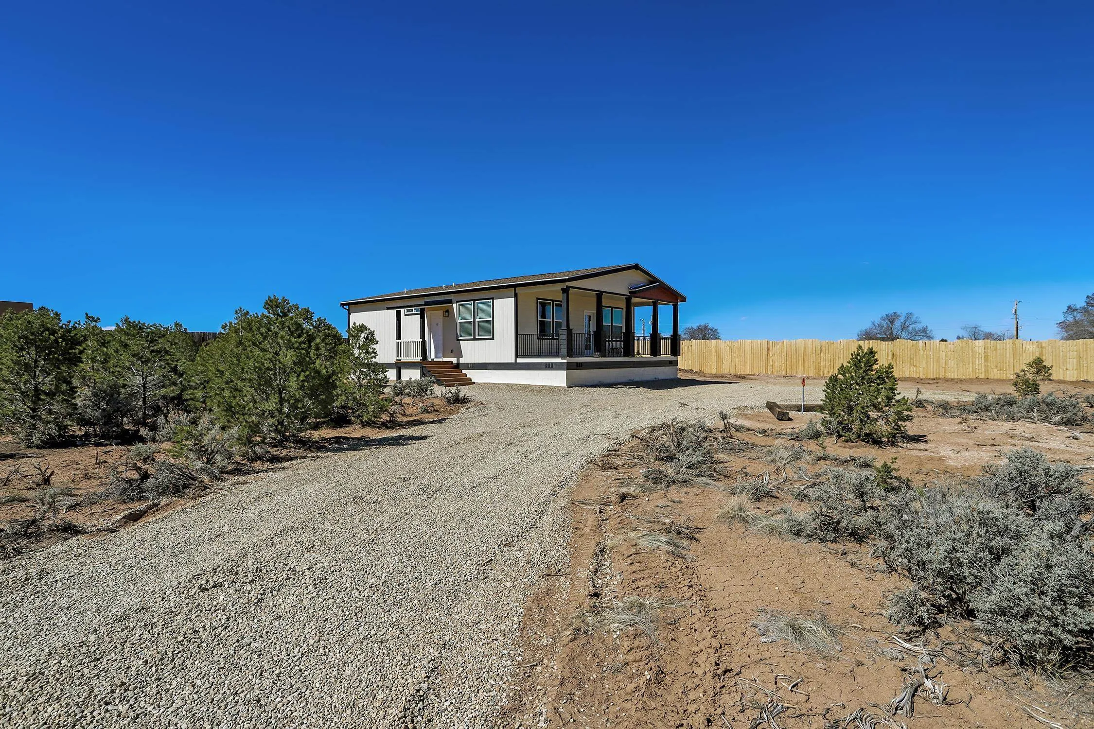 Brand new Karsten home in Ranchos de Taos with beautiful Taos Mountain views! This 1,110 sq ft, 2-bedroom, 2-bath home sits on 1.17 acres and features 9-foot ceilings throughout, taller upgraded cabinets, solid surface countertops, stainless steel appliances, and a walk-in pantry. Both bedrooms include walk-in closets, and 2-inch blinds are installed throughout. Enjoy the covered front porch, perfect for taking in the mountain views and big New Mexico skies. The home sits on an engineered foundation with block skirting and offers forced air heat with central A/C, plus an Energy Star furnace and hot water heater. The property includes two water meters and two water memberships, and the septic is permitted for three bedrooms, offering potential for a studio, casita, or additional mobile home. Three sides of the lot are fenced, and the location provides easy access to hiking and biking while still being a short drive to Taos amenities.