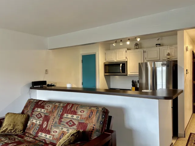 Enjoy the music of the free concerts at Frontier Park from the comfort of your own balcony with the Wheeler Peak Mountain Range view. This conveniently located one bedroom, 2 bath condo is the perfect spot to enjoy the mild summer mountain days, or build a fire in the fireplace for those cozy winter nights. There is an extra storage space on the lower side of the complex and a laundry room on site. There is parking on the upper level and common parking areas on the lower level. Main level access to the unit from the parking area…no big staircases to maneuver!