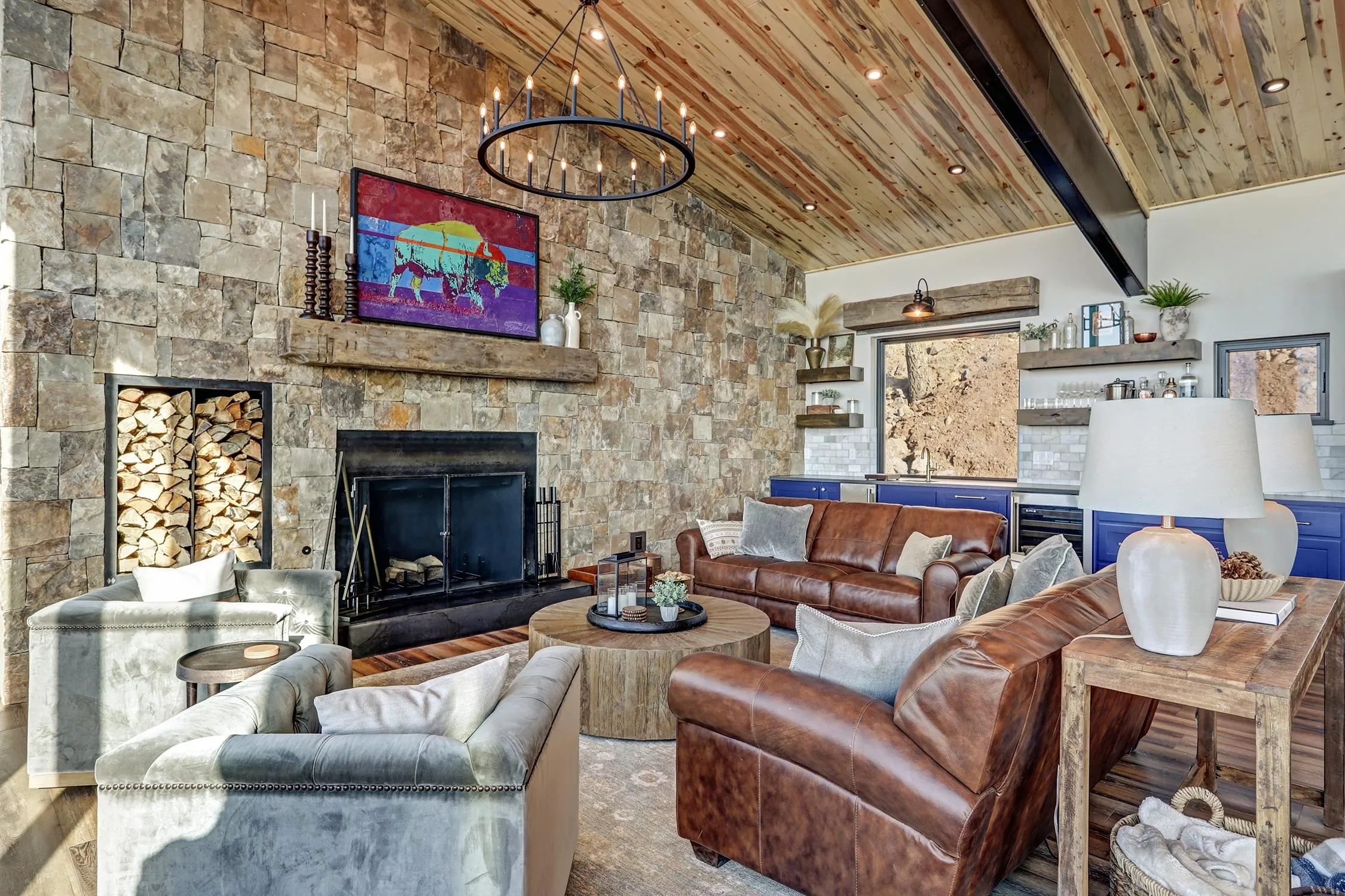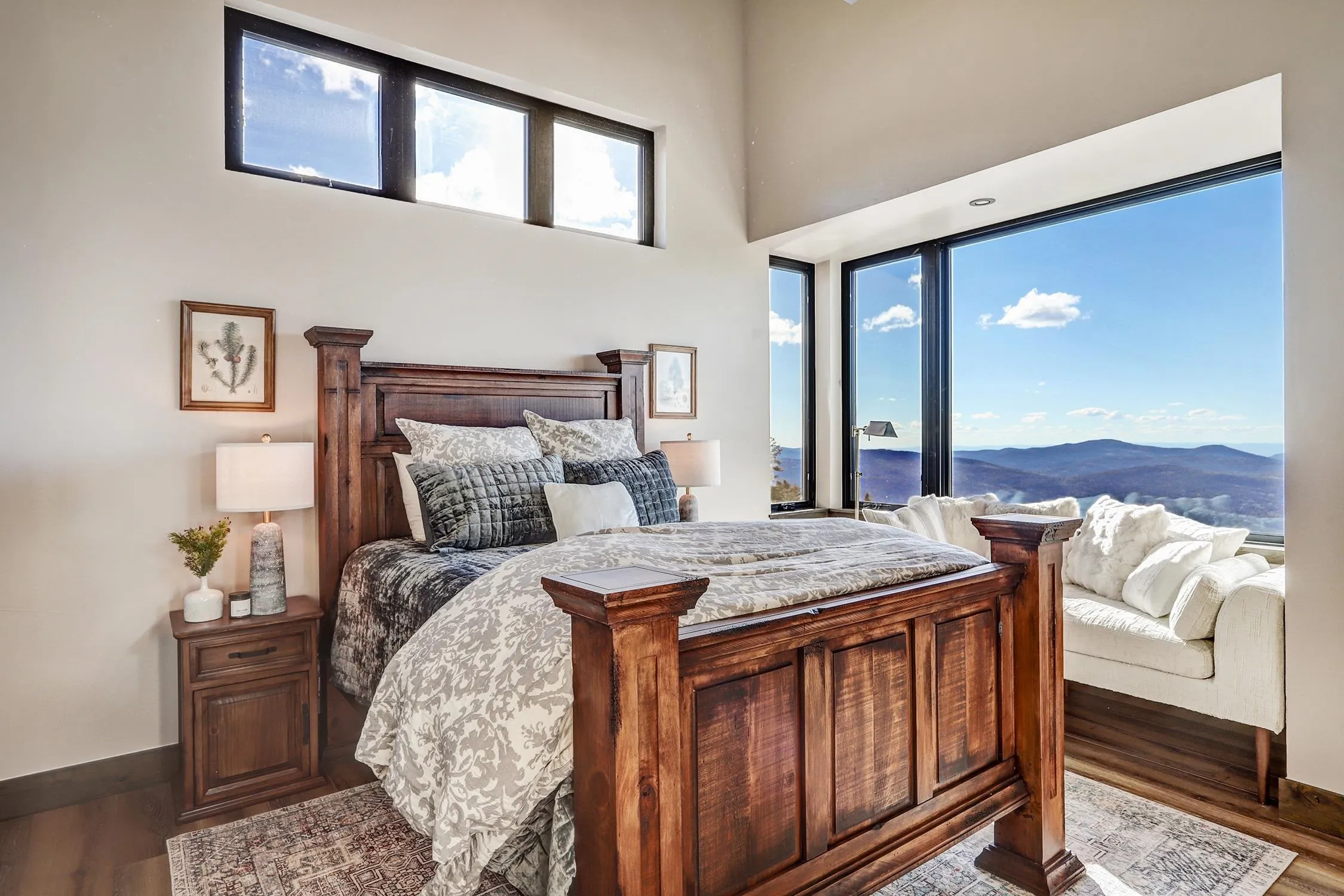 Ski-Out Luxury Retreat with Unmatched Wheeler Peak & Eagle Nest Lake Views: Welcome to a rare mountain retreat offering unparalleled panoramic views and direct ski access in the mountains of Angel Fire. New construction, built by Lindsey Custom Builders and Perfectly positioned on 2 acres, this beautifully furnished home captures breathtaking vistas from Wheeler Peak to Eagle Nest Lake—arguably the most spectacular view in the entire valley. Designed for both comfort and entertaining, the home features 4 spacious bedrooms and 4.5 bathrooms, with every bedroom offering its own ensuite bath and stunning window-framed mountain views. The thoughtfully designed layout includes two bedrooms on the main level, making main-floor living effortless. A dramatic wall of windows fills the living spaces and bedrooms with natural light while showcasing the surrounding mountains. The main living area centers around a wood-burning fireplace surrounded by beautiful stone, creating the perfect cozy gathering space after a day on the slopes. Upstairs, a second living area provides additional room for relaxation or entertainment and includes custom built-in bunk beds, ideal for hosting family and guests. The home is designed with entertaining in mind, featuring a separate bar area for cocktail hour, a spacious walk-in pantry, and inviting gathering spaces throughout. Most of the beautiful furnishings and décor convey, making this property move-in ready and perfect as a luxury mountain getaway or income-producing vacation home. Step outside and ski directly out onto Angel Fire Resort’s “Top of Headin’ Home” ski slope, giving you effortless access to the mountain.
