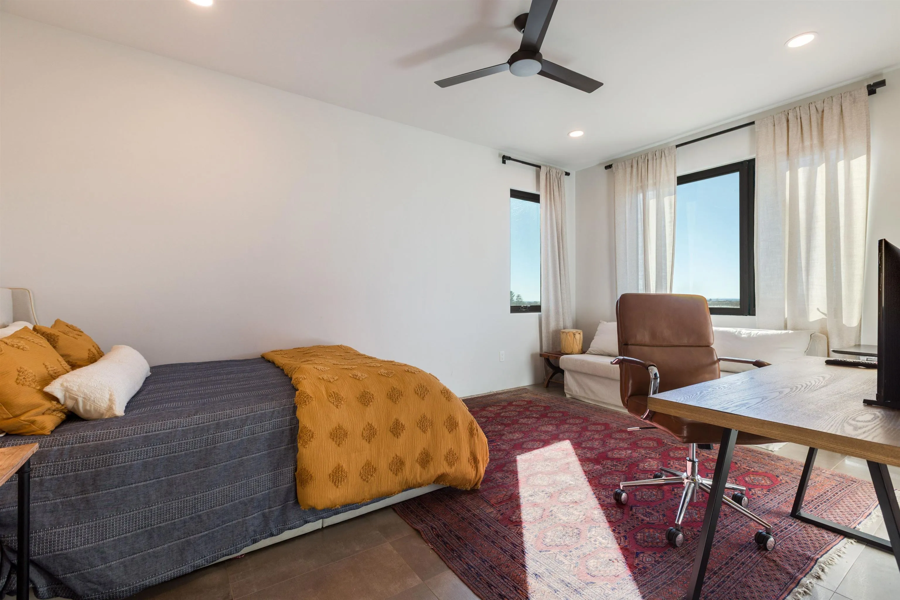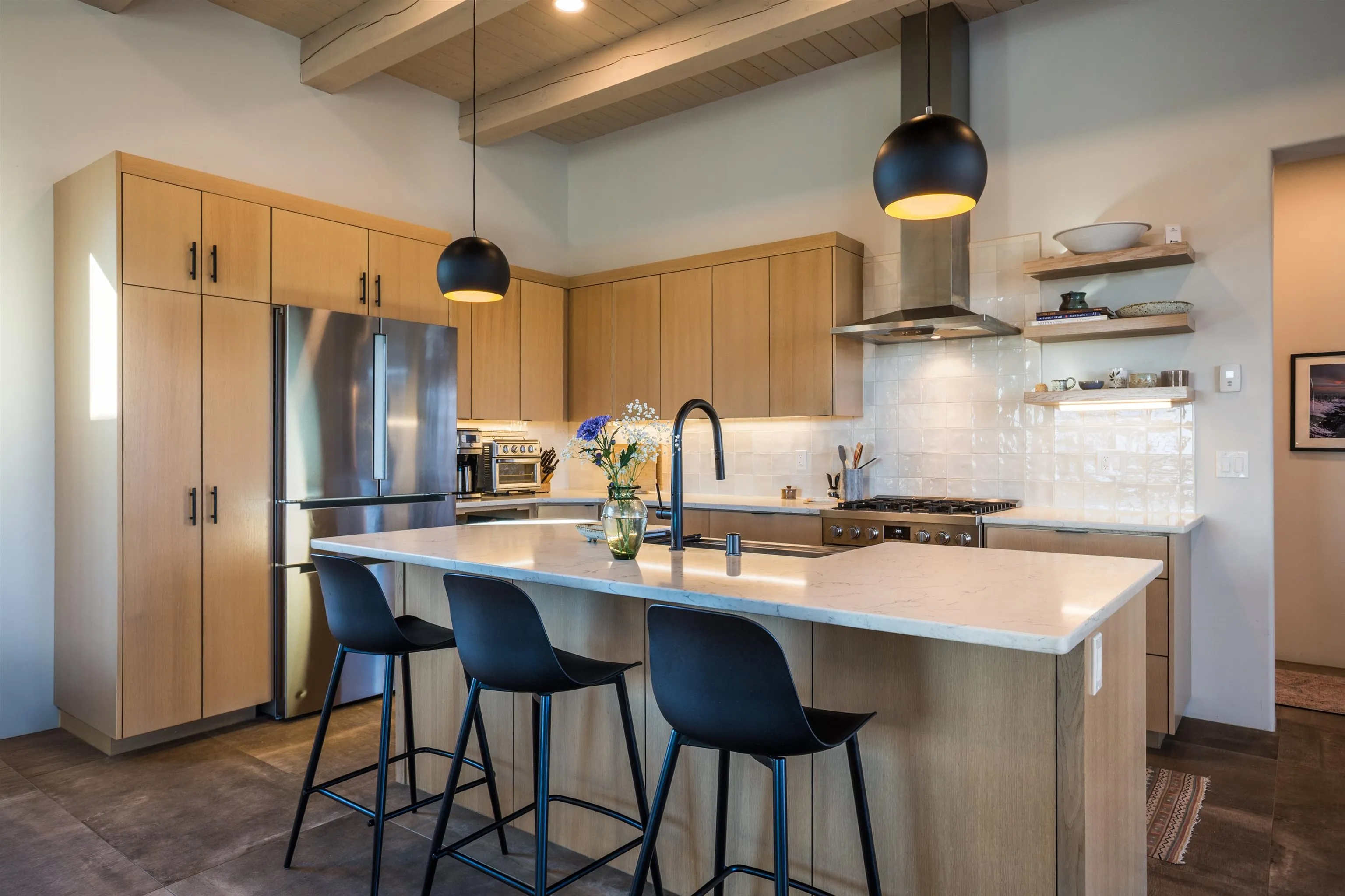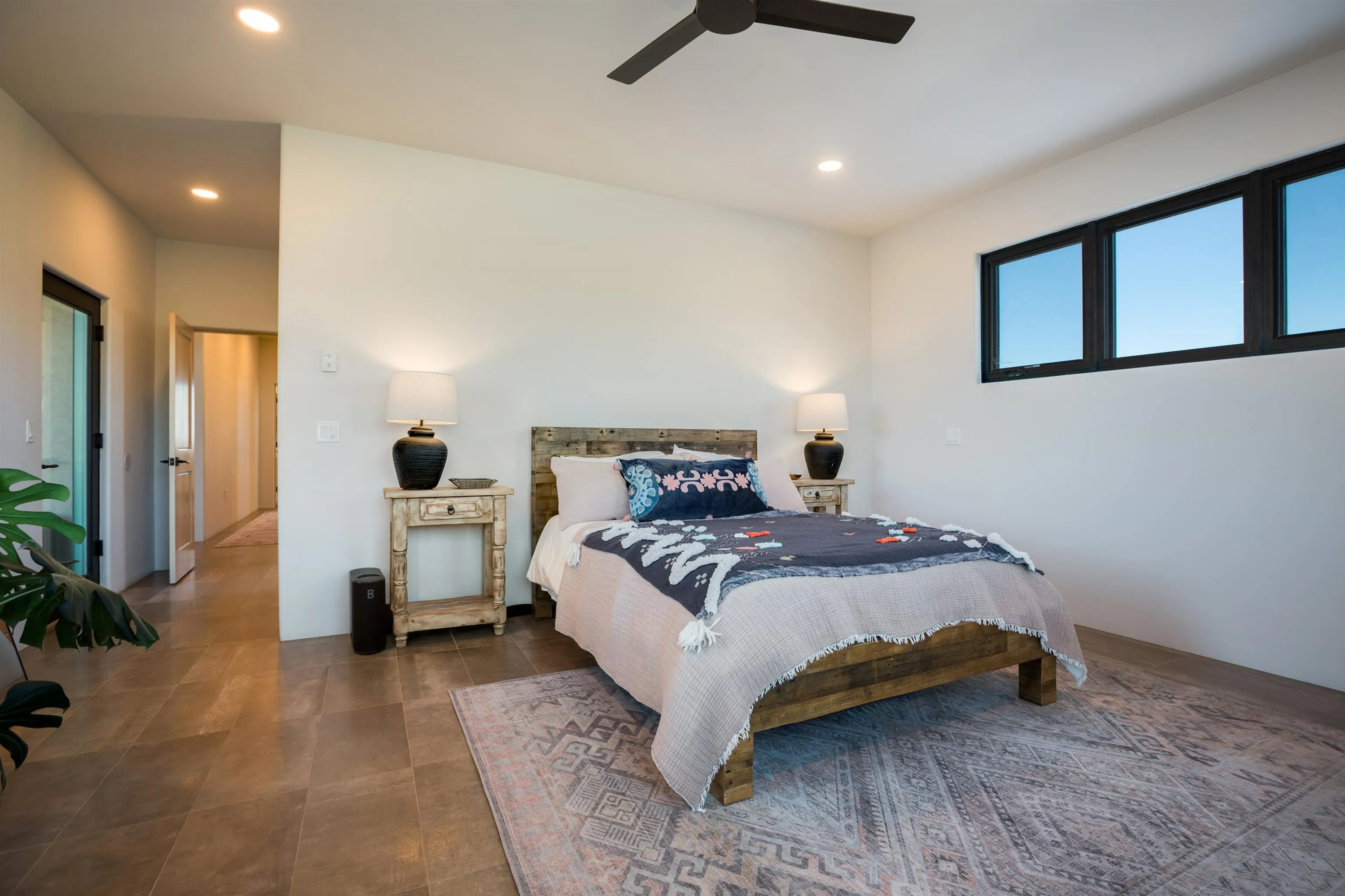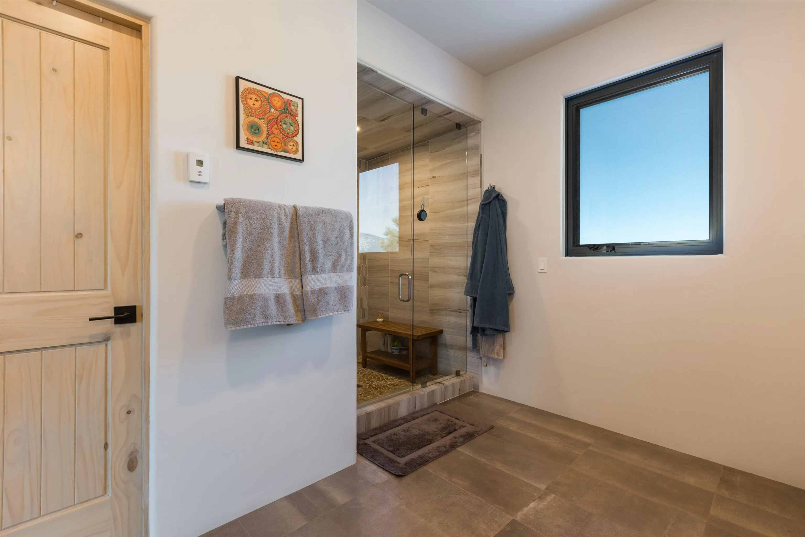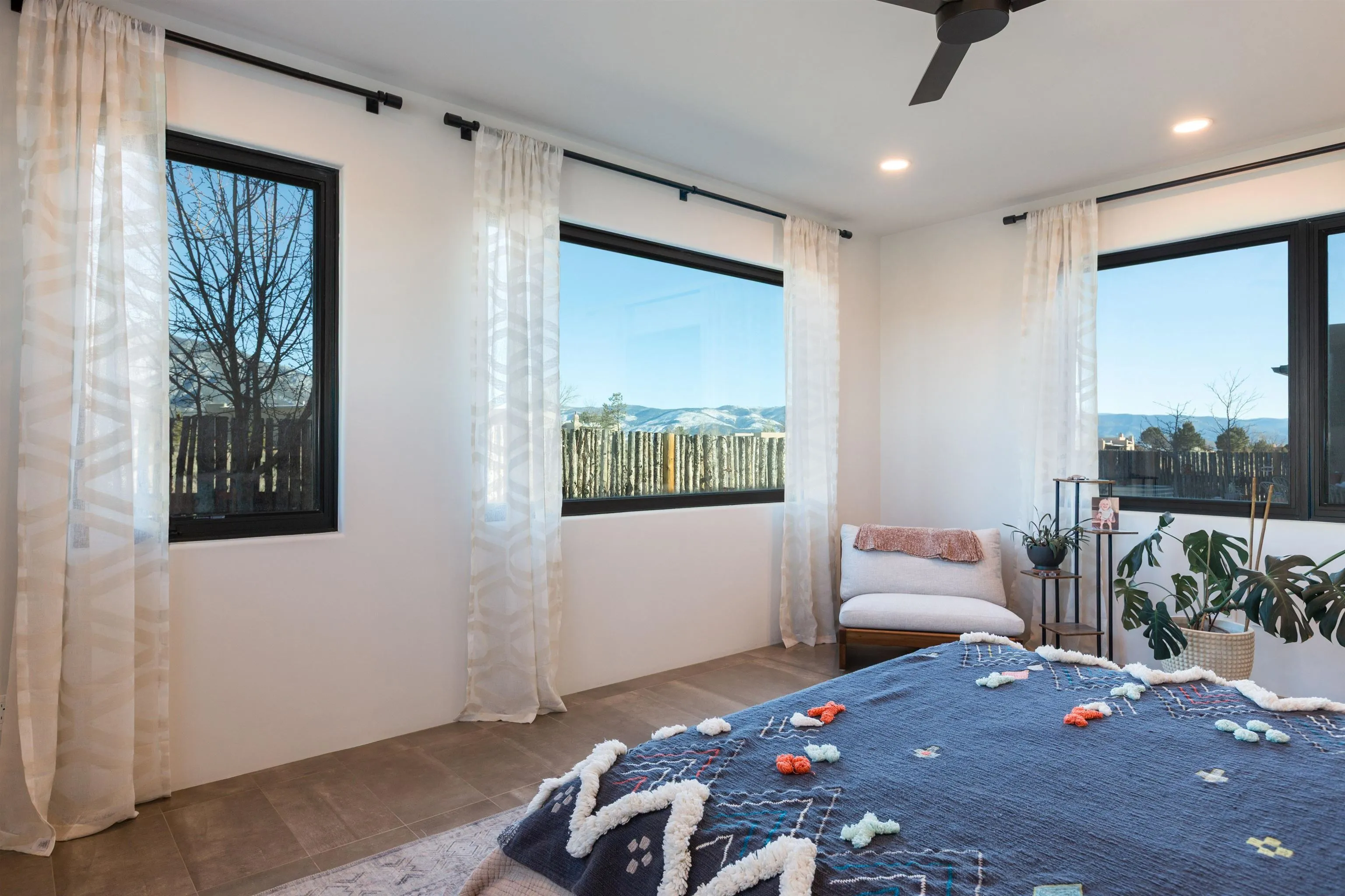 Set in a coveted northside location with expansive views of Taos Mountain, this beautifully crafted contemporary Southwestern home by Edelman Enterprises offers an effortless blend of comfort, quality, and style. Thoughtfully designed with wonderful natural light throughout, the home features three bedrooms and three baths with a spacious, flowing layout ideal for both everyday living and entertaining. The open great room and kitchen serve as the heart of the home, seamlessly connecting to a covered portal that opens onto a lush grassy lawn—perfect for morning coffee, evening gatherings, or simply taking in the mountain air. Clean architectural lines and warm Southwestern finishes create an inviting yet refined atmosphere. A gigantic oversized heated, attached two-car garage (equipped with EV Charging) provides abundant space for vehicles, storage, or gear for all your Taos adventures. With its sought-after northside setting, quality construction, and easy indoor-outdoor living, this property offers a rare opportunity to enjoy the very best of Taos living.