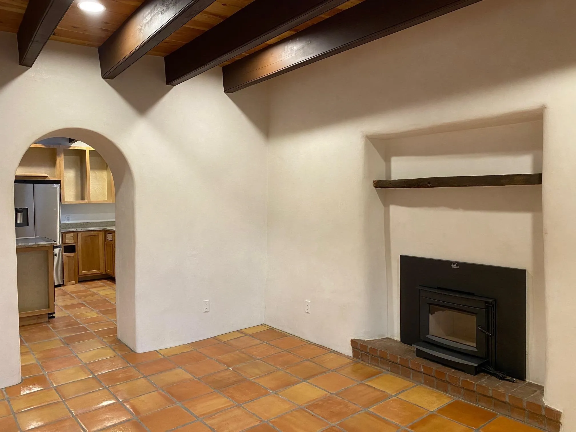 It’s not often that you can find an old adobe within the Town of Taos that is newly renovated to this level! Two-foot thick adobe walls from the last century have been preserved in a cocoon of new interior plaster, exterior stucco and rebuilt new roof. Radiant floor heat has been installed under the saltillo tile floors for the optimal in modern comfort and warmth. Original beams are throughout the home, especially adding a sense of grandeur to the living room. Cozy up in front of the mantel and efficient woodstove insert in the winter. Graceful arches lead to the kitchen and dining room. The redesigned kitchen features cashmere cream granite counter tops and high quality appliances including induction cook top and stove in a large island open to the dining room. Locally handcrafted cabinets compliment the true adobe feel; views from the kitchen sink are pastoral, with the Rio Pueblo and mountain beyond. The primary bedroom with private bath is oversized and flooded with natural light. Nichos and locally hand crafted closets transport you to Old Taos. Two guest bedrooms, full laundry room and guest bathroom complete the main residence. The bedroom off of the living room would be a great home office. Outside, a flagstone patio leads to a detached 279 sq ft studio/workshop and separate 90 sq ft garden shed. Landscaping and final touches are being completed next couple of weeks, so keep an eye out for updated photos to come!