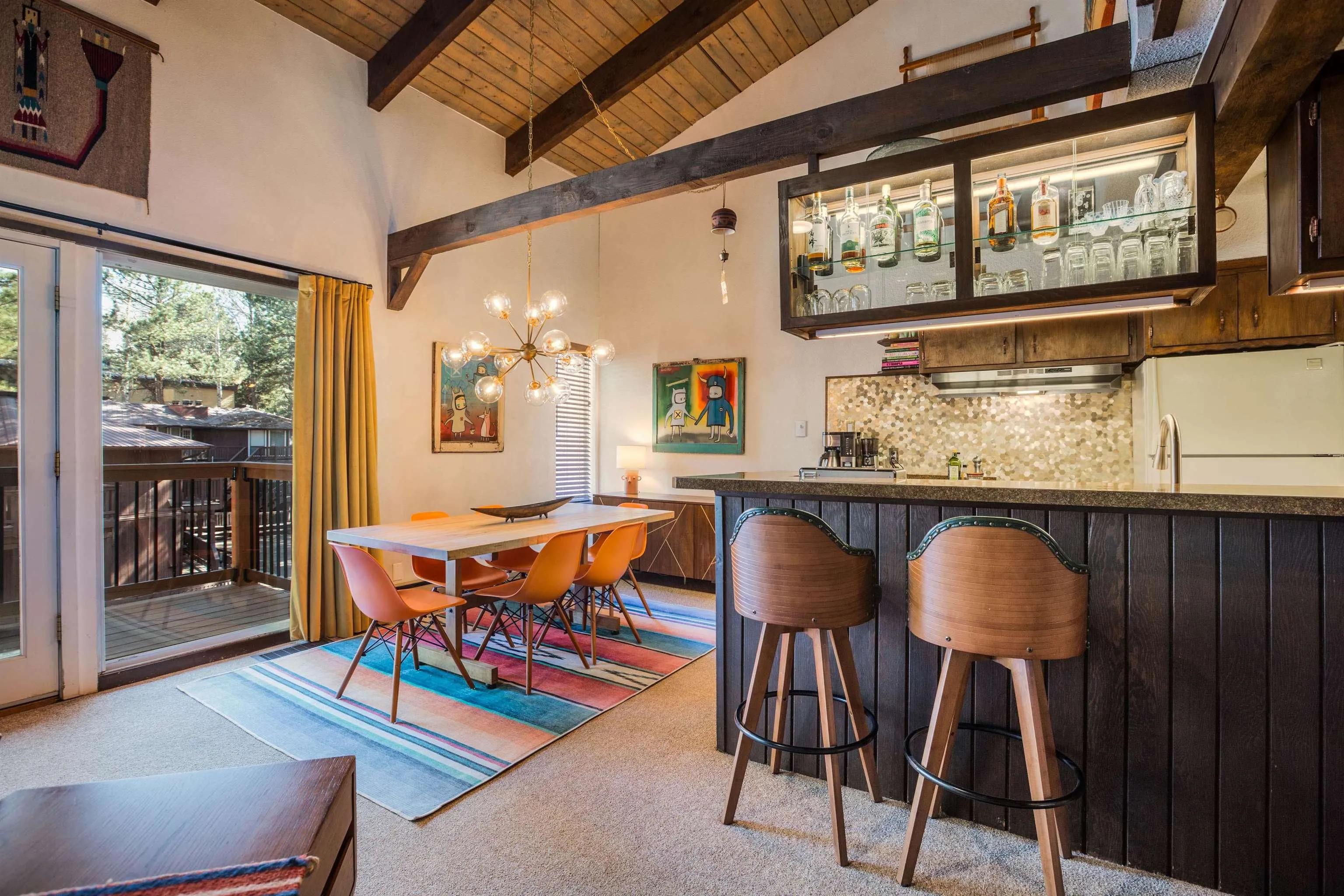 Located just moments from the slopes and trails of Angel Fire Resort, this spacious 3-bedroom, 3-bath condo offers the perfect mountain retreat with plenty of room for family and guests. The inviting main living area features vaulted ceilings, warm wood accents, and large windows that bring in cheerful natural light. The updated kitchen and dining area flow easily into the living room, creating a comfortable space for gathering after a day on the mountain. The primary suite, guest bedroom, and guest bath are located on the main level, while the loft-style third bedroom and bathroom upstairs provide additional sleeping space and privacy. Step outside to enjoy the mountain air from the private deck. The property also includes a full-size garage and a private storage room—perfect for keeping skis, bikes, and other mountain gear organized and out of the way. With its flexible layout, generous sleeping capacity, and convenient location near the base area, this condo makes an excellent vacation getaway, rental investment, or year-round mountain home.