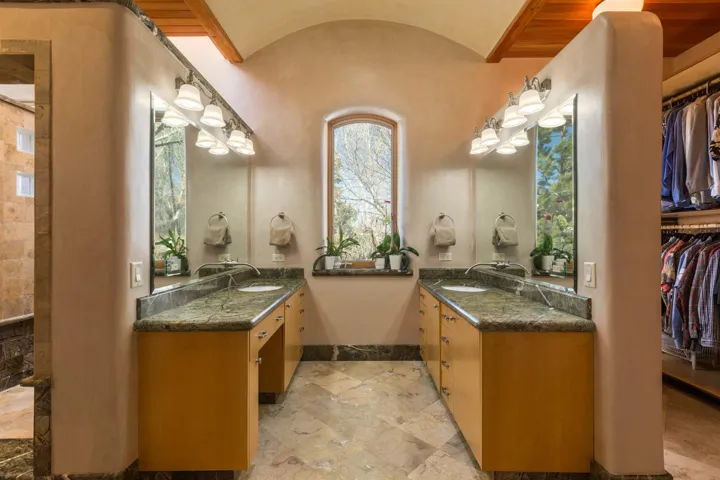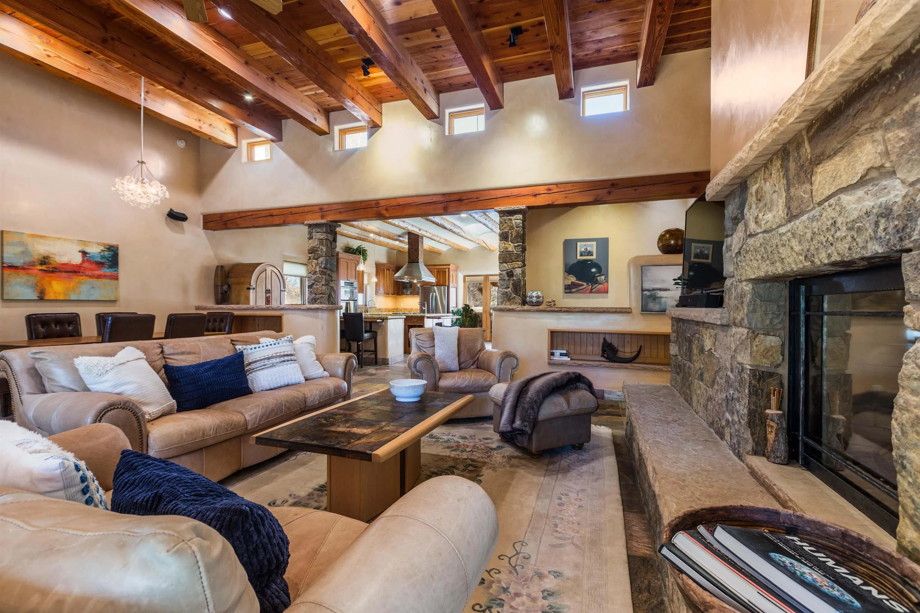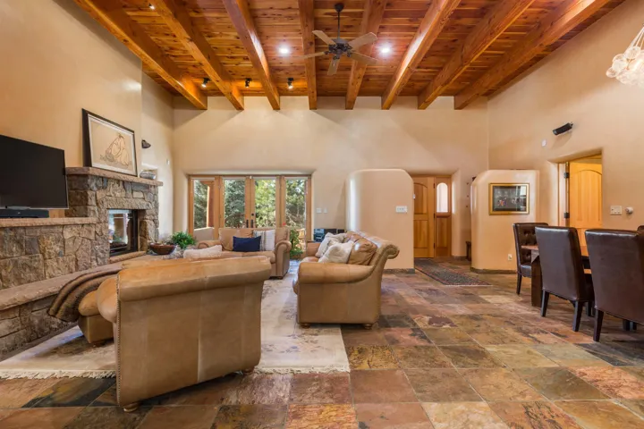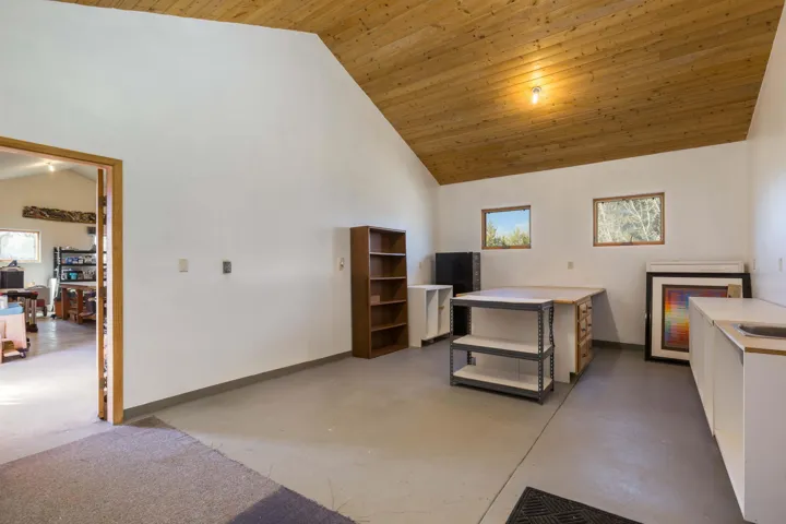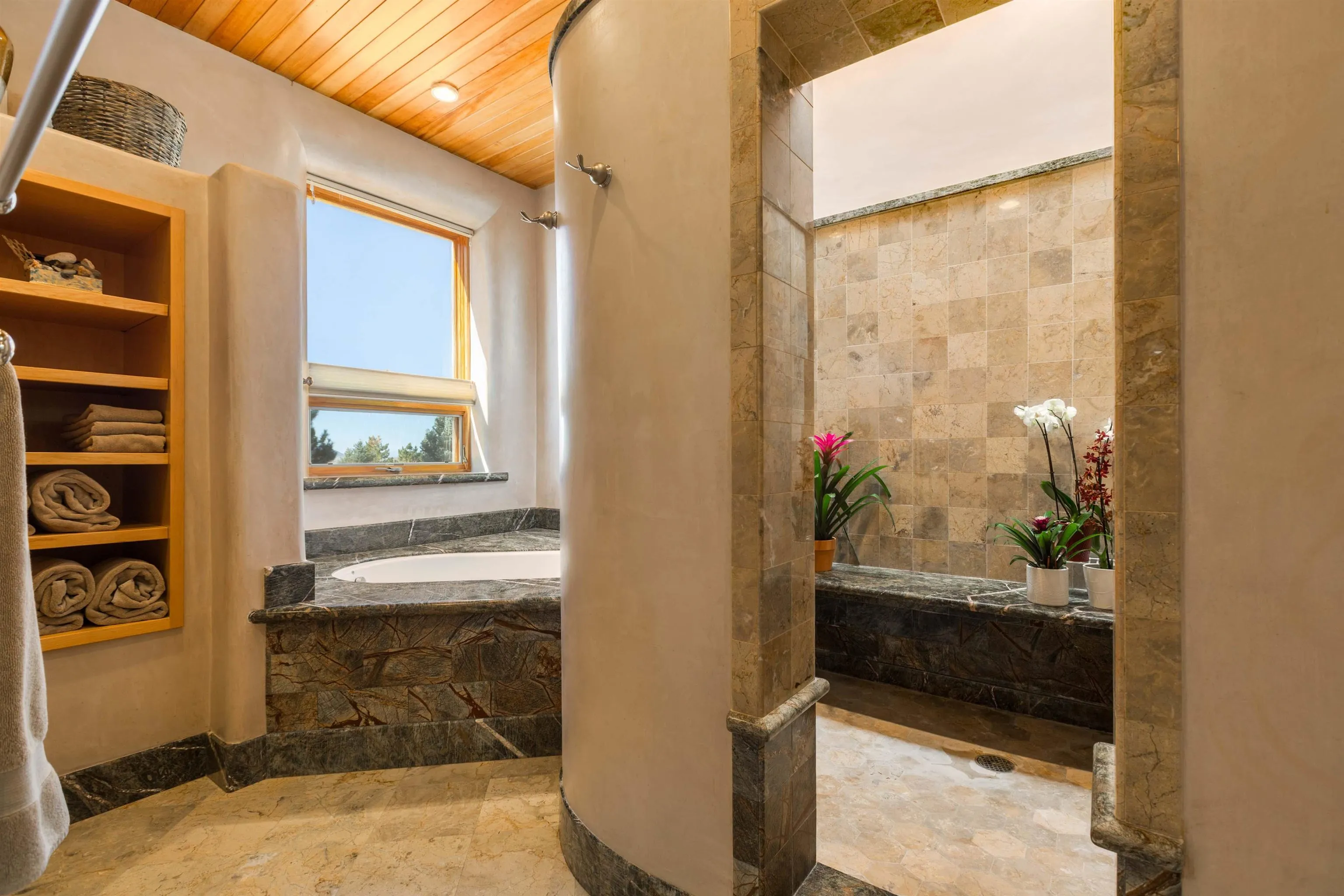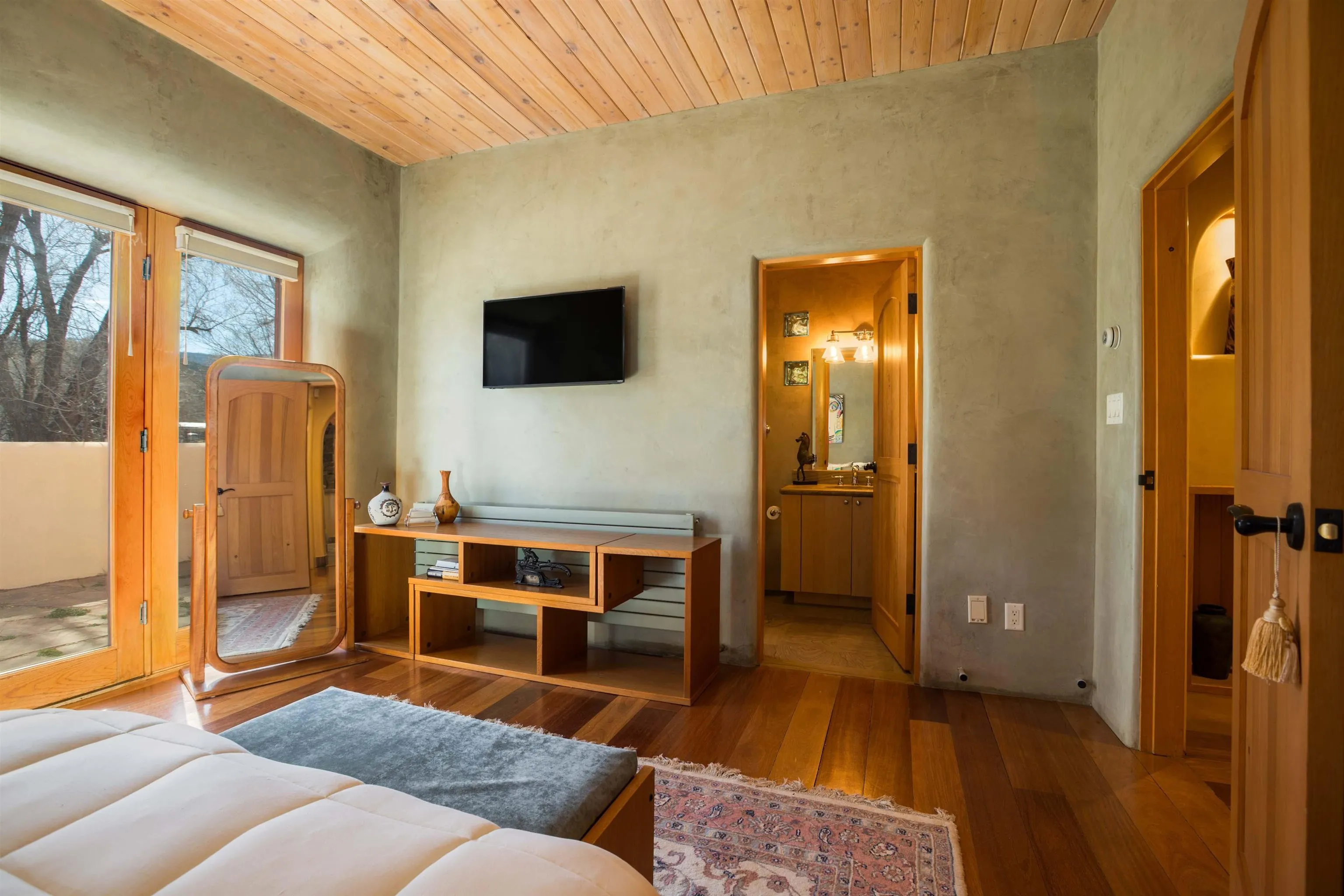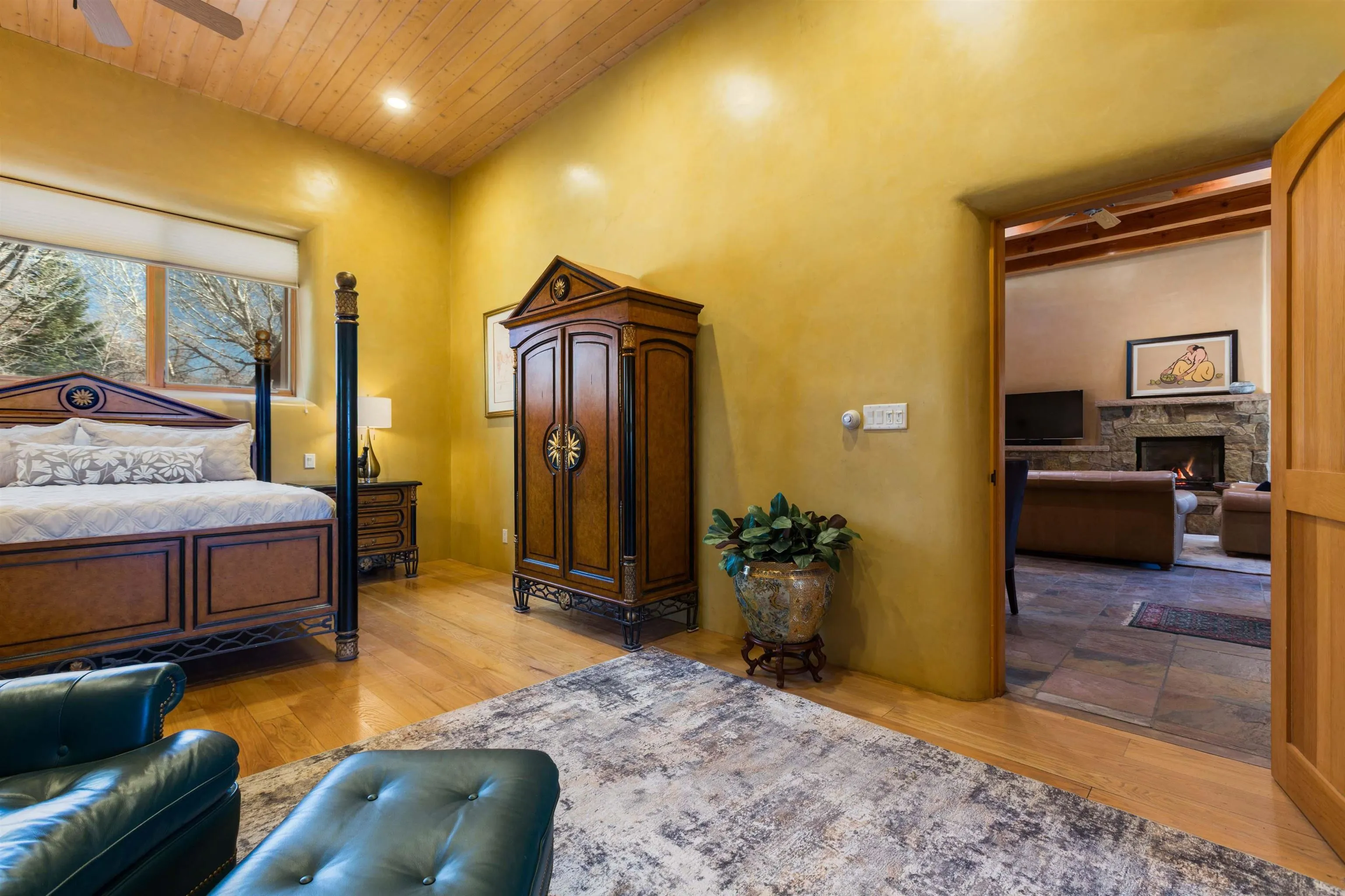Welcome to Simple Elegance in Taos!! Set within the breathtaking high desert landscape of Taos and minutes from the Plaza. This extraordinary first time on the market, private estate offers a rare blend of timeless Northern New Mexico architecture, artisanal craftsmanship, and self-sustaining luxury. Built by Paul Rotman with substantial 18-inch thick Rastra Block walls, the residence embodies the enduring character of traditional adobe-style design while incorporating refined modern comfort. From the moment you enter through the handcrafted adobe entryway constructed with approximately 100-year-old bricks, the home reveals a level of artistry rarely found in traditional builds. Fourteen-foot ceilings, graceful coved ceilings in the kitchen, and diamond-finish plaster walls tinted with natural mineral pigments create a warm, sculptural interior that reflects the region’s rich architectural heritage. The chef’s kitchen is both bold and elegant, featuring granite countertops with full bullnose edges, custom cherry cabinetry, double ovens, Wolf range cook top and an intimate breakfast nook. Living spaces are anchored by gas fireplaces and custom stonework by renowned artisan Bob Loveless, complemented by natural stone tile flooring and expansive light-filled gathering areas including a tranquil sunroom. The primary suite offers a luxurious retreat with two primary closets and distinctive green marble accents in the bath, while upstairs cherry wood flooring adds warmth and refinement. Comfort throughout the home is provided by radiant floor heating, supplemental wall heaters, and a Navien high-efficiency boiler installed in February 2026. A charming 1 bath, 1 bedroom casita with tongue-and-groove ceilings crafted from 400-year-old reclaimed wood provides exceptional guest accommodations or private retreat space. Beyond the residence, the property unfolds into an extraordinary multi-use compound. A heated three-car garage, artist studio, woodworking shop with professional dust collection system, and fitness room with full bath and laundry hookups create unmatched flexibility for creative pursuits, wellness, or home-based enterprises. The grounds themselves form a true Taos sanctuary. With 7+ acres with irrigation rights and mature gardens and landscaping surround a productive orchard of apple, pear, apricot, cherry, peach, and plum trees, alongside flowering perennials and majestic Austrian pine, Colorado blue spruce, and bristlecone pines. Additional agricultural features include a tree nursery, chicken coop, bee house, and hoop house. Designed for both sustainability and independence, the estate includes two wells (one solar powered), three cisterns, a five-zone in-ground irrigation system, RV hookups with water and 30-amp service, and a back porch pre-wired for a hot tub—perfect for enjoying the quiet beauty and star-filled skies of northern New Mexico. This exceptional offering represents a rare opportunity to own a private high-desert compound where craftsmanship, land stewardship, and luxury living come together in one remarkable Taos property.