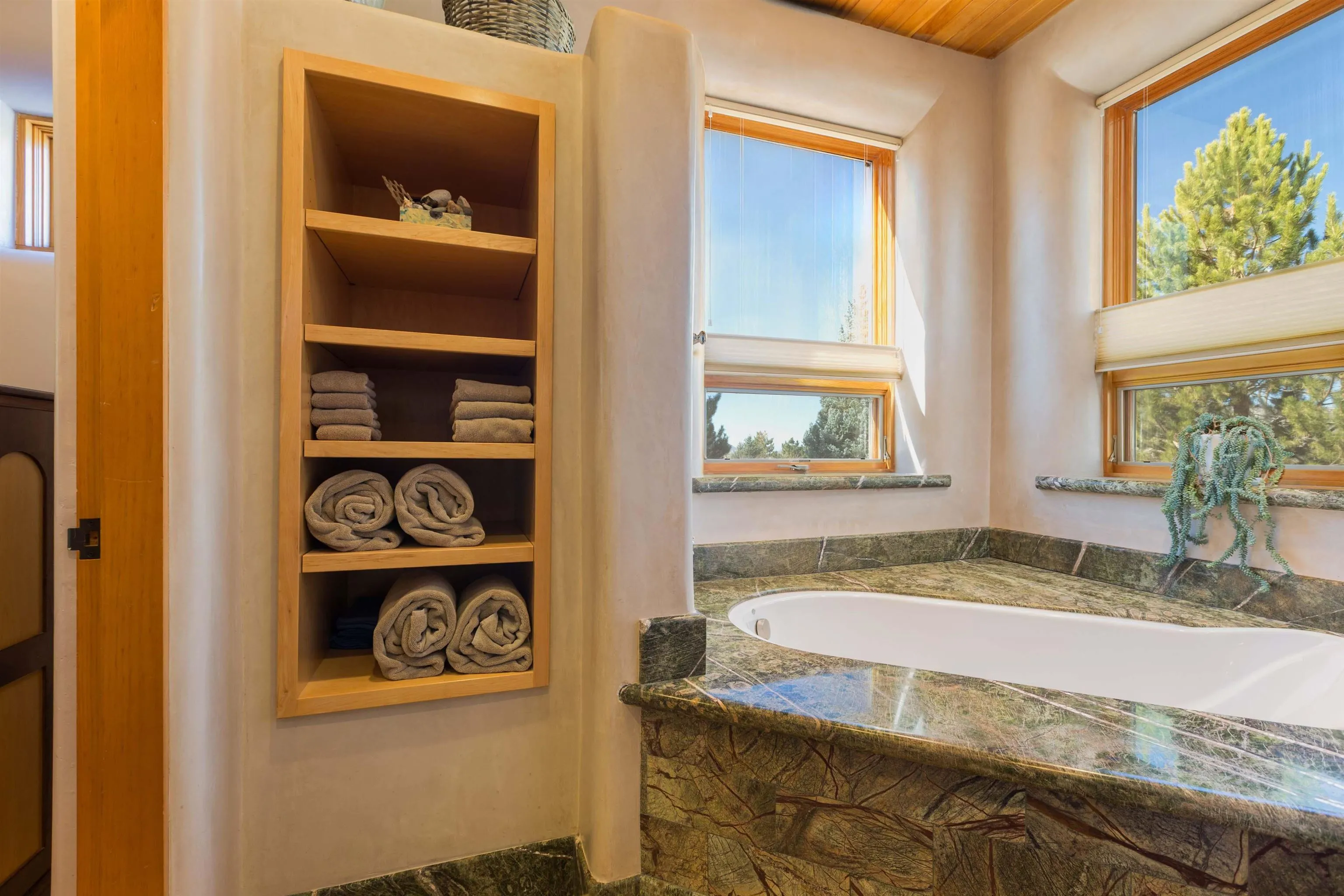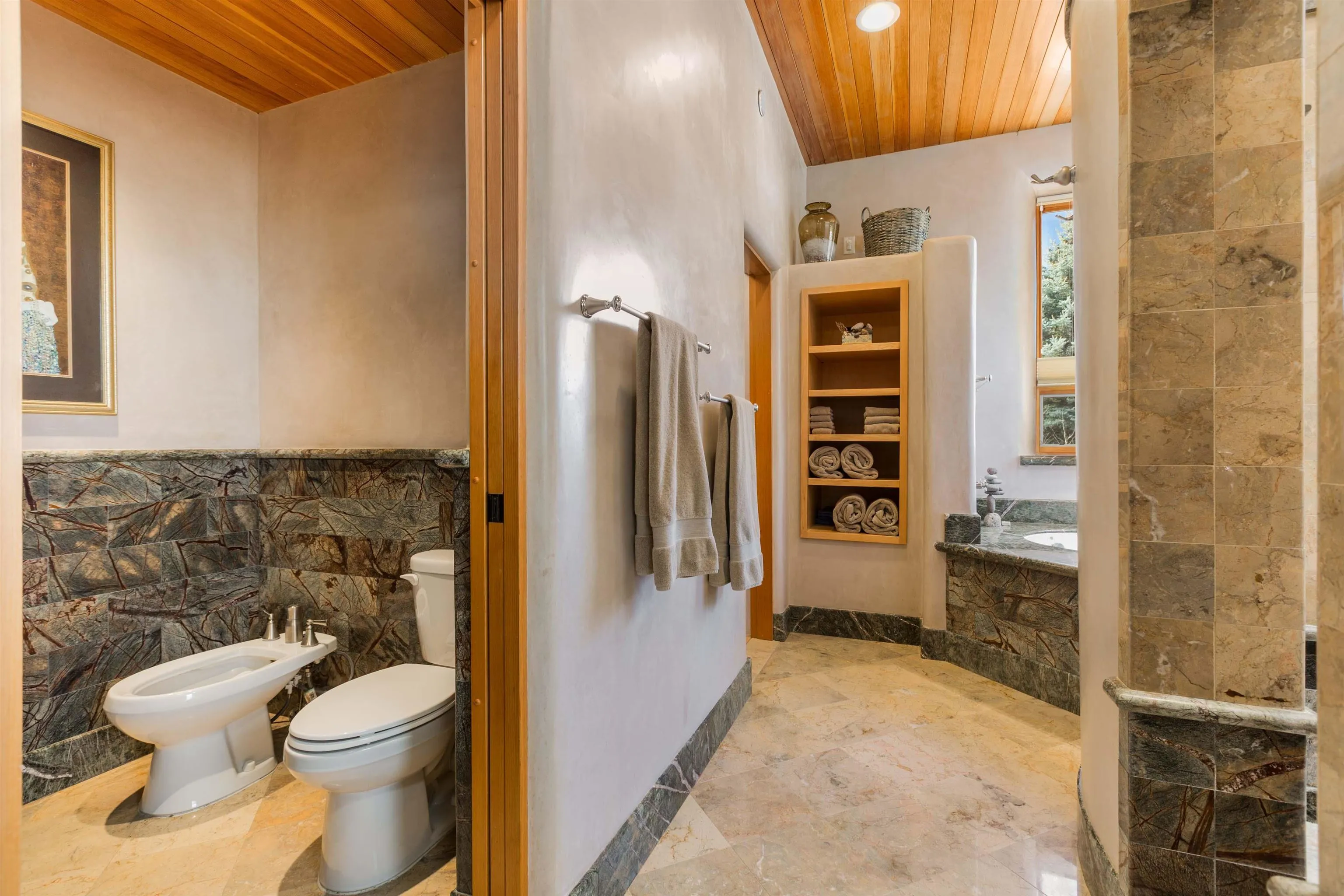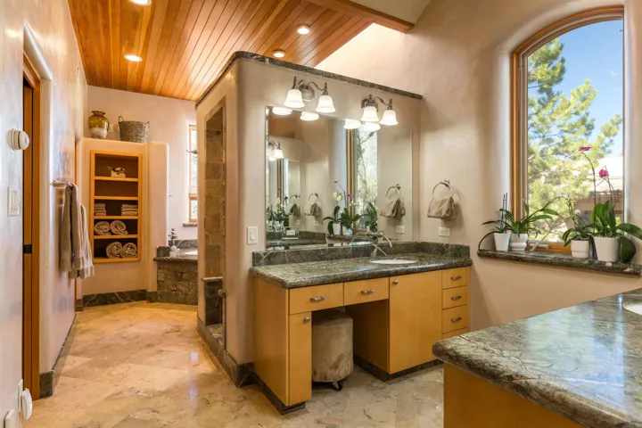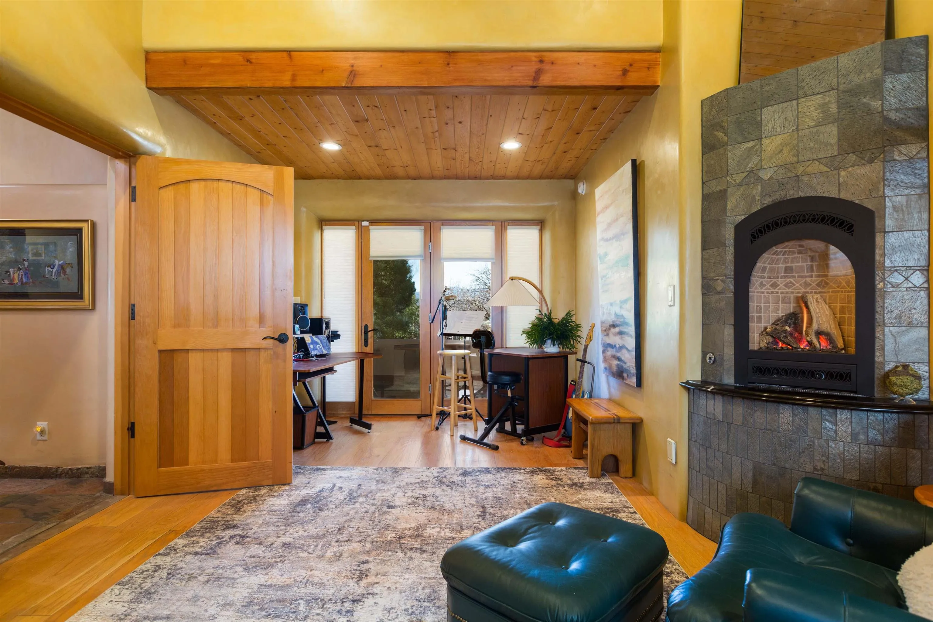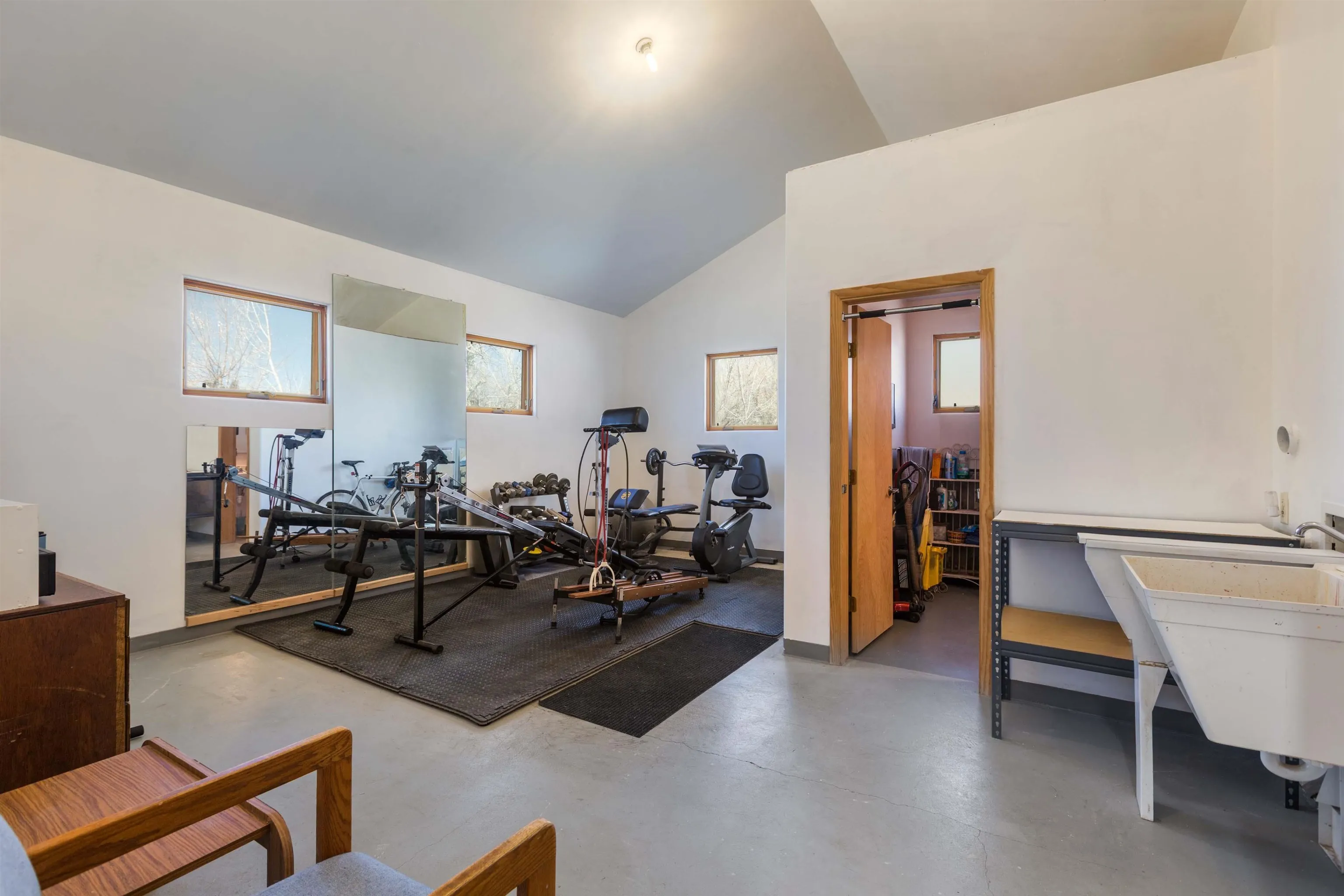 Welcome to Simple Elegance in Taos!! Set within the breathtaking high desert landscape of Taos and minutes from the Plaza. This extraordinary first time on the market, private estate offers a rare blend of timeless Northern New Mexico architecture, artisanal craftsmanship, and self-sustaining luxury. Built by Paul Rotman with substantial 18-inch thick Rastra Block walls, the residence embodies the enduring character of traditional adobe-style design while incorporating refined modern comfort. From the moment you enter through the handcrafted adobe entryway constructed with approximately 100-year-old bricks, the home reveals a level of artistry rarely found in traditional builds. Fourteen-foot ceilings, graceful coved ceilings in the kitchen, and diamond-finish plaster walls tinted with natural mineral pigments create a warm, sculptural interior that reflects the region’s rich architectural heritage. The chef’s kitchen is both bold and elegant, featuring granite countertops with full bullnose edges, custom cherry cabinetry, double ovens, Wolf range cook top and an intimate breakfast nook. Living spaces are anchored by gas fireplaces and custom stonework by renowned artisan Bob Loveless, complemented by natural stone tile flooring and expansive light-filled gathering areas including a tranquil sunroom. The primary suite offers a luxurious retreat with two primary closets and distinctive green marble accents in the bath, while upstairs cherry wood flooring adds warmth and refinement. Comfort throughout the home is provided by radiant floor heating, supplemental wall heaters, and a Navien high-efficiency boiler installed in February 2026. A charming 1 bath, 1 bedroom casita with tongue-and-groove ceilings crafted from 400-year-old reclaimed wood provides exceptional guest accommodations or private retreat space. Beyond the residence, the property unfolds into an extraordinary multi-use compound. A heated three-car garage, artist studio, woodworking shop with professional dust collection system, and fitness room with full bath and laundry hookups create unmatched flexibility for creative pursuits, wellness, or home-based enterprises. The grounds themselves form a true Taos sanctuary. With 7+ acres with irrigation rights and mature gardens and landscaping surround a productive orchard of apple, pear, apricot, cherry, peach, and plum trees, alongside flowering perennials and majestic Austrian pine, Colorado blue spruce, and bristlecone pines. Additional agricultural features include a tree nursery, chicken coop, bee house, and hoop house. Designed for both sustainability and independence, the estate includes two wells (one solar powered), three cisterns, a five-zone in-ground irrigation system, RV hookups with water and 30-amp service, and a back porch pre-wired for a hot tub—perfect for enjoying the quiet beauty and star-filled skies of northern New Mexico. This exceptional offering represents a rare opportunity to own a private high-desert compound where craftsmanship, land stewardship, and luxury living come together in one remarkable Taos property.