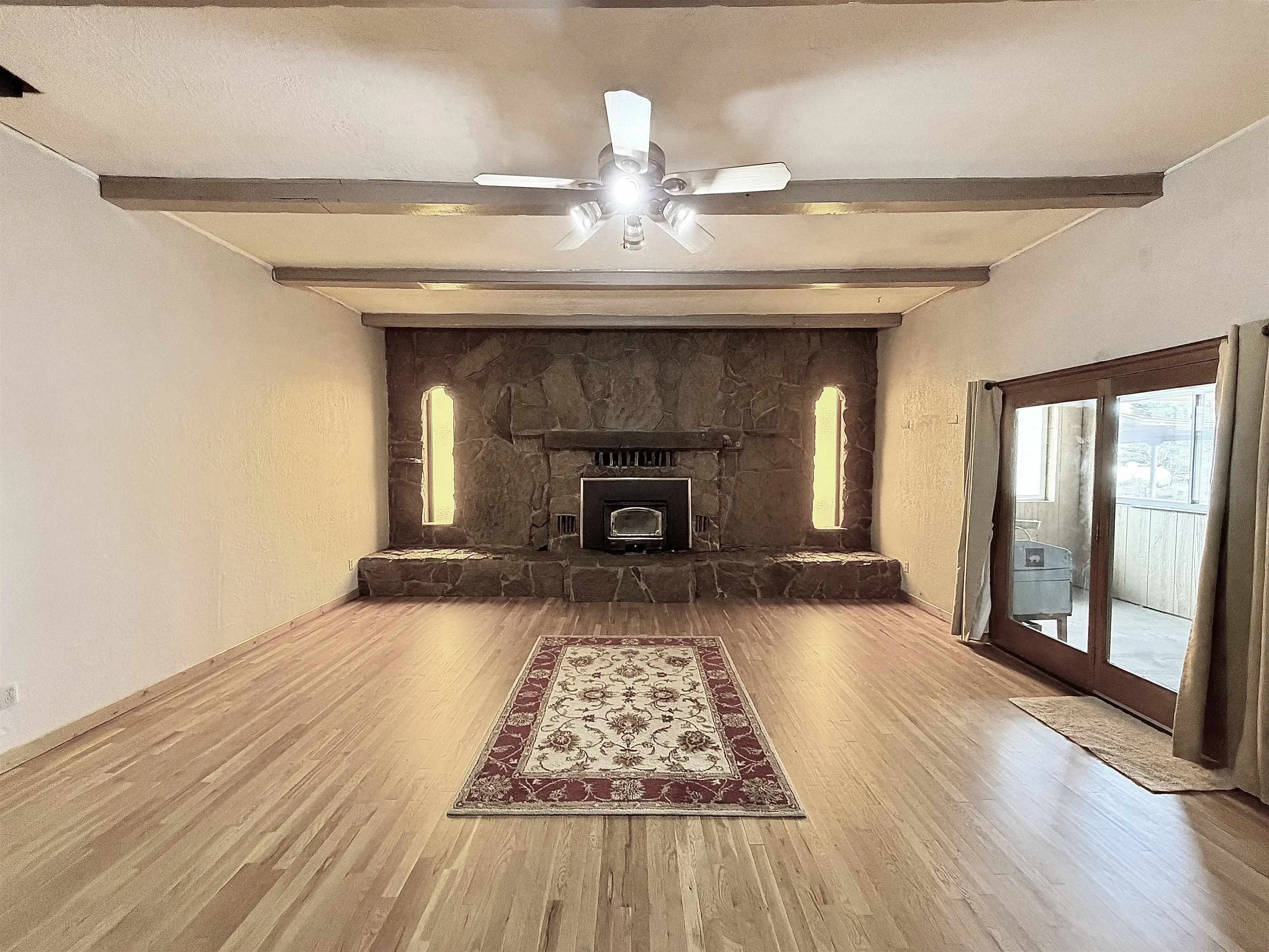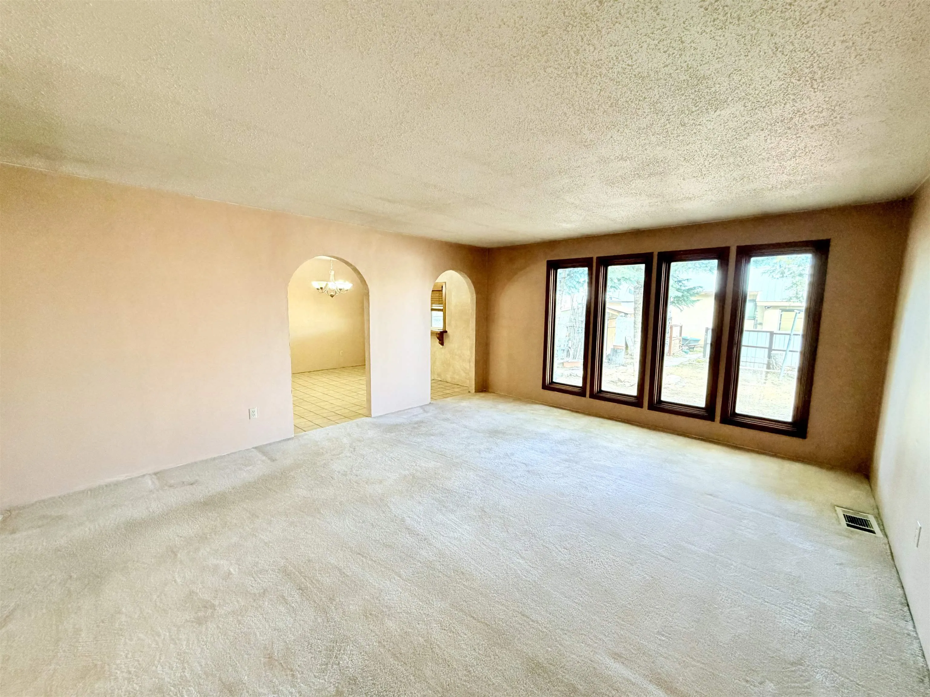 Welcome to your exclusive piece of Taoseño living! This Conventional style, Northern New Mexico, residence, constructed approximately in 1978, will immerse you in the authentic ambiance of Taos living. Situated directly across the street from the Rio Lucero, a natural flowing river originating from the Taos Pueblo and traversing the verdant expanse of the Taos Valley, this home offers a serene retreat amidst the tranquility of the surrounding landscape. The property has lush grass and mature trees that decorate the property with greenery that is easy to maintain. There is a patio/portal located at the rear of the home, perfect for relaxing, entertaining or outdoor cooking. The front of the home consists of a covered porch and walkway that can be used as a sunroom. At approximately 1,700 square feet, this three-bedroom, two-bathroom home boasts a unique layout and spacious living areas. Its interior features a harmonious blend of tile, wood, carpet, and old-style rock flooring, complemented by ceilings adorned with beams and plaster. The walls throughout the house are textured and one wall has a nice wood accent which decorates a bedroom. The sunken living room is elevated by a grand rock fireplace equipped with a wood-burning insert, flanked by yellow stained glass, creating a heart-warming ambiance and sunbeam lighting. The kitchen has plenty of shelving and storage space for your culinary needs, with nice updated appliances to make it all a bit easier. The house has a large dining area and very spacious living room, perfect for entertaining guests or every day living. Conveniently attached to the house is a two-car garage, providing ample parking or storage space keeping vehicles protected from elements or having extra room for projects. The home is situated on 0.51 acres of greenbelt land, with the driveway leading to the home and garage, directly from paved and maintained, Rio Lucero Road. Its proximity to the Town of Taos is mere minutes away, while the Rio Grande Gorge Bridge is approximately 14 minutes from the property. Additionally, the Taos Ski Valley is conveniently accessible within about 27 minutes. Schedule an in-person or virtual viewing today to discover the extraordinary features of this remarkable home and embark on a journey of Taos style and comfortable tranquility.