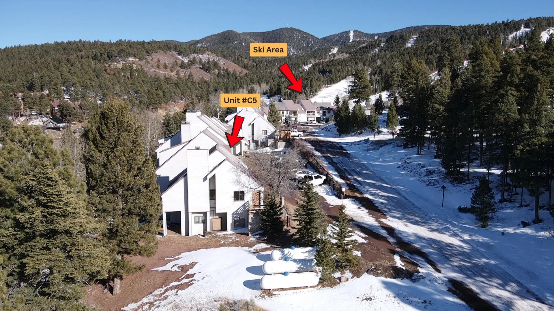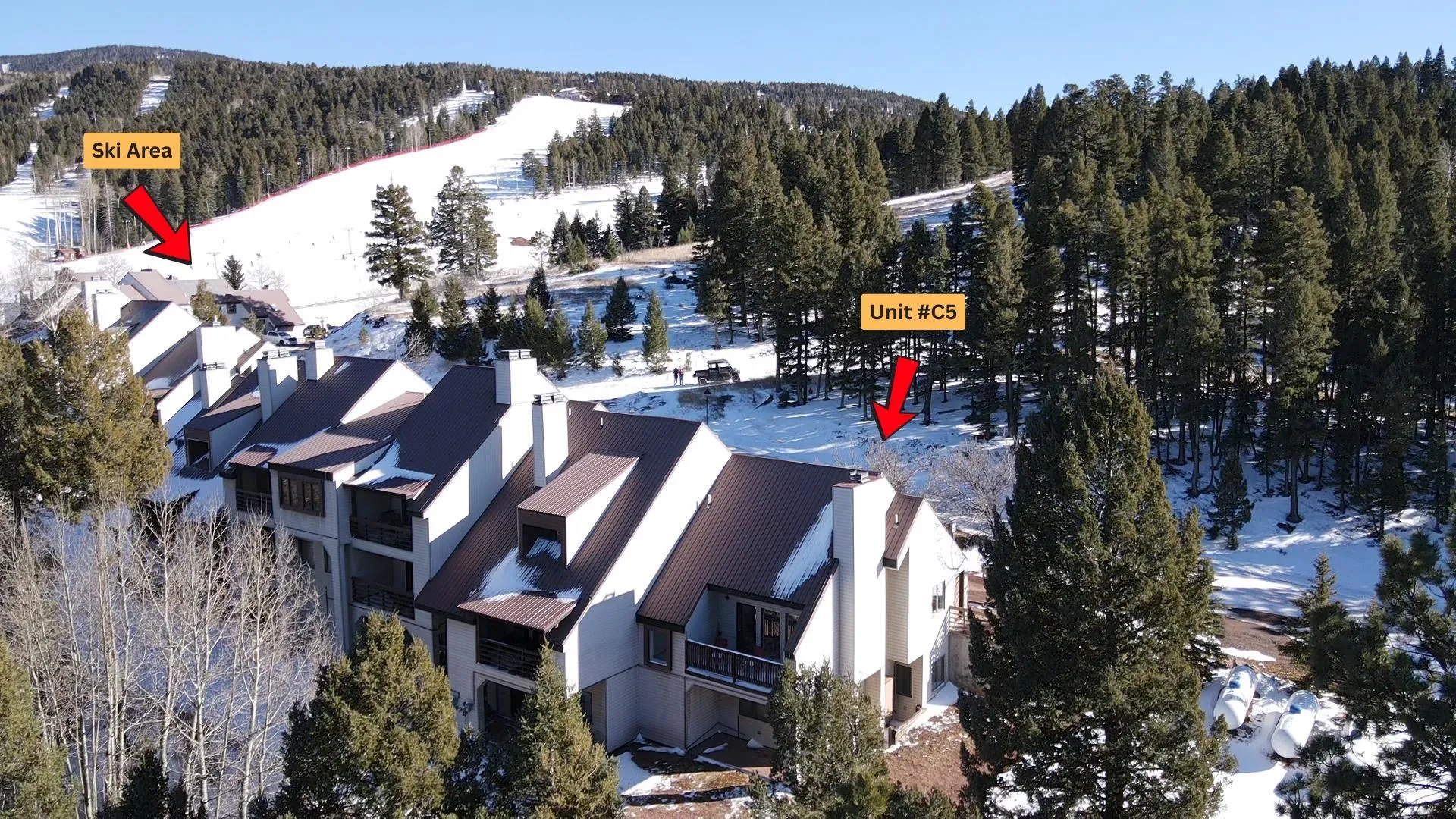 Come and discover this recently updated 2 bedroom, 2.5 bathroom condo at Ski Run in Angel Fire, NM! While many mountain condos may feel like a squeeze, this end unit has a spacious floor plan and offers the perfect balance of privacy and space to entertain. With ski-in/ski-out access, you can transition seamlessly from the slopes or world-class mountain biking trails right back to your front door without having to get in the car. Inside, the home features updated appliances and flooring, giving a clean and modern feel. The 48″ linear gas fireplace serves as the centerpiece of the living area, while the kitchen and bathrooms showcase elegant granite countertops paired with chrome fixtures. Retreat to the bedrooms to find a private two-person infrared sauna for ultimate relaxation after a day on the slopes. The bathrooms are a true spa-like experience, featuring multi-function waterfall shower fixtures that add a touch of luxury to your daily routine. With 2 full bedrooms, 2 full bathrooms, and a half bath, this property can serve as the perfect primary residence, vacation getaway, or investment property. Whether you are carving through fresh powder in the winter or spending your summers fishing, hiking, and golfing on Angel Fire Resort’s PGA-rated 18-hole course just a short drive away, this location puts you exactly where you want to be. Don’t miss out on the opportunity to own this premier condo in Angel Fire. Call us today to schedule a showing!