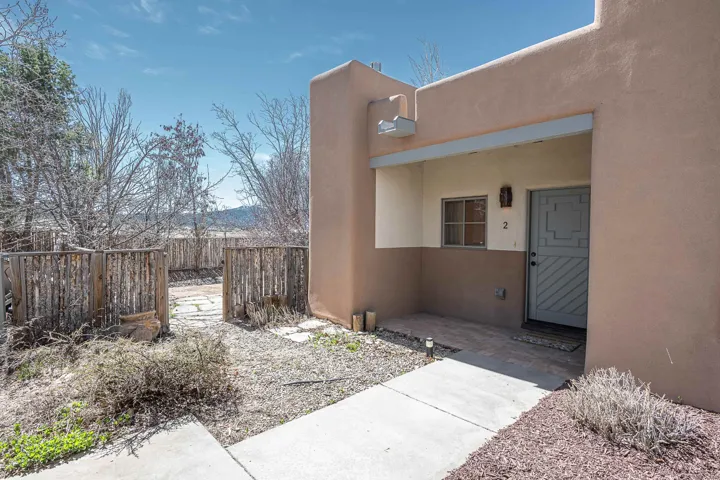 Cute, cute, cute!!!!! Neat as a pin and ready for you to move in! Sweet little 1 bedroom/1 bath condo in town next to the Youth and Family Center with a great fenced-in back/side yard. This adorable Unit has all the Southwestern touches that say This is Taos! Viga beams on the ceiling, diamond finish plaster, tile floors and large windows that bathe the space in natural light. The condominiums have a lovely, large gather space and raised garden beds for all to enjoy. It is in a great location, minutes from the center of town and the Taos medical complex. Great kitchen with an island and a breakfast nook and plenty of storage. This is a corner Unit close to the front of the complex, so an easy stroll to your front door.
