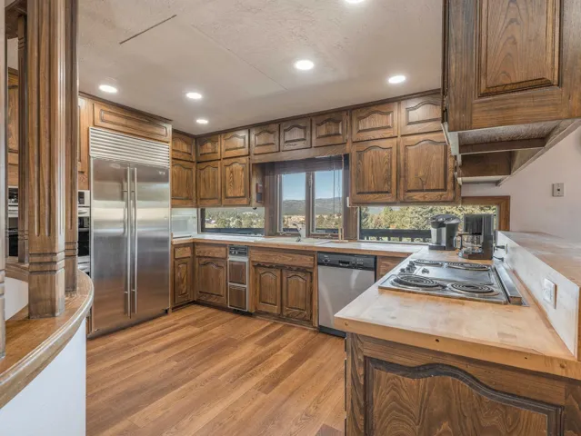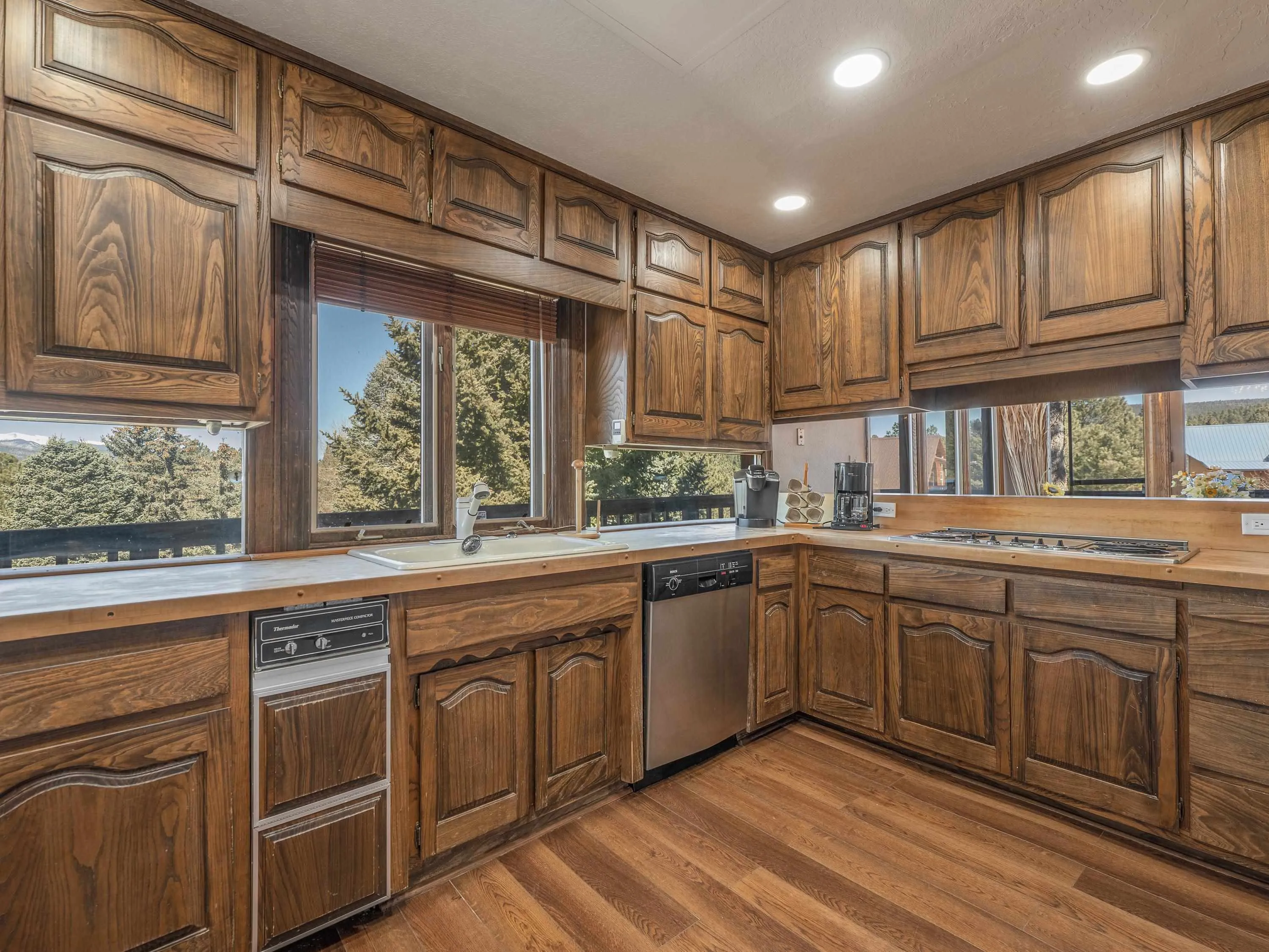 Embrace the ultimate mountain lifestyle in this exceptional home, ideally located for recreation and relaxation in the heart of Angel Fire. Just off North Angel Fire Road and minutes from the family-friendly slopes of Angel Fire Resort, this property offers easy access to year-round adventure. Inside, a spacious and thoughtfully designed two-level layout provides comfort and privacy for family and guests. The open kitchen flows seamlessly into the inviting living area, where large windows and access to a sunny deck showcase picturesque views of the ski area and surrounding mountains. The generously sized primary suite features an ensuite bath with a soaking tub, walk-in shower, and separate water closet with bidet. Downstairs, three guest bedrooms and two additional full bathrooms offer excellent flexibility for sleeping arrangements. An attached two-car garage provides protected parking plus room for storing gear after a day on the slopes or trails. Whether you’re seeking a winter escape, a summer retreat, or a versatile investment property, this well-appointed property offers the best of mountain living in every season.