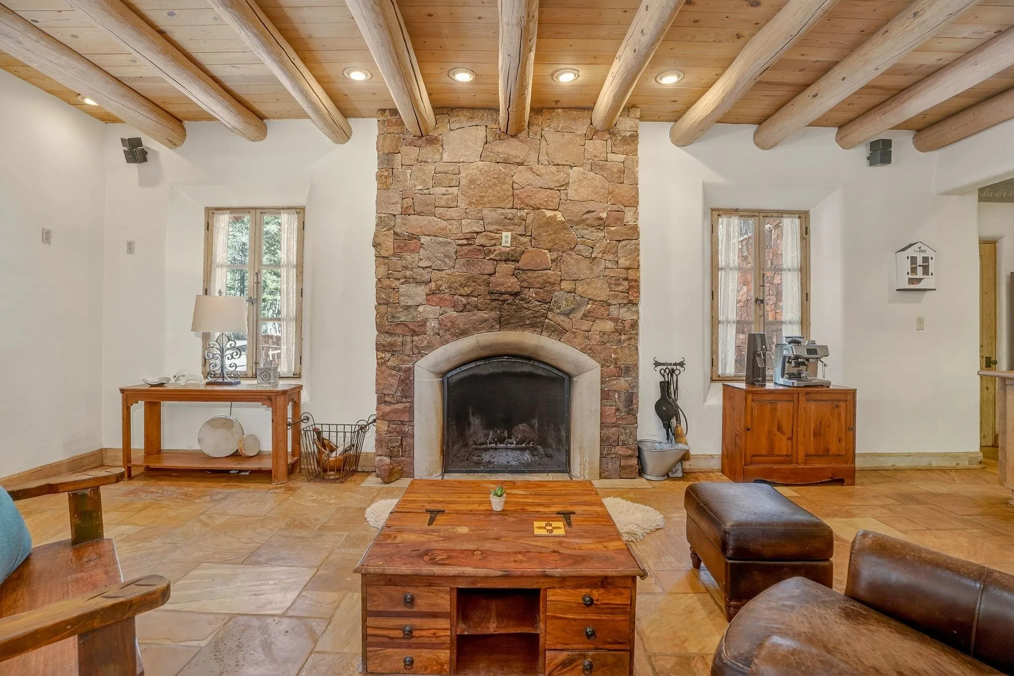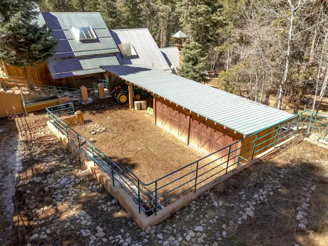Set on 2.9 acres bordering the pristine Carson National Forest, this exceptional Taos property offers a rare opportunity to enjoy natural beauty and refined Southwestern living, with direct access to protected forest land. Ideally located just 8.3 miles from the Taos Plaza, approximately 40 minutes to Taos Ski Valley, and approximately 25 minutes to Angel Fire Resort, the home provides both convenience and a true sense of escape. This thoughtfully designed and custom-built 2 bedroom, 2.5 bath residence blends craftsmanship with comfort. Rich brick, stone tile, and wood flooring flow throughout, while wood ceilings and abundant skylights bathe the interiors in natural light, creating a warm and inviting atmosphere. The grounds are equally impressive, featuring a large barn and extensive paddocks, ideal for the resident llamas. Entertaining is effortless with an inviting fireplace patio and a separate fire pit, perfect for taking in Taos’ star-filled skies. This is a truly special offering where access to nature and timeless Southwestern design come together in one remarkable setting.
