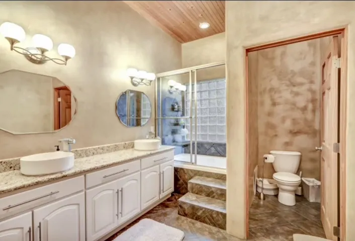 An amazing house with tons of space. The main house features three bedrooms and three and one/half bathrooms nicely spread out over 2,277 square feet. The main house has diamond finish walls along with granite, and stainless-steel appliances. The five-foot jetted tub in the primary bath is being replaced with a five-foot walk-in shower. The main house also has an attached three car garage with radiant heating. The Guest House features two bedrooms and one bathroom spread out over 800 square feet. The Guest House also has an attached two car garage. The property has amazing landscaping with many trees and grass along with automatic sprinklers and a drip system. Two mini-split systems were just installed for instant heat and air conditioning; one in the primary bedroom and one in the living room/kitchen. All the carpet in the main house has been replaced with tile. This property is a super deal at $309 per square foot.