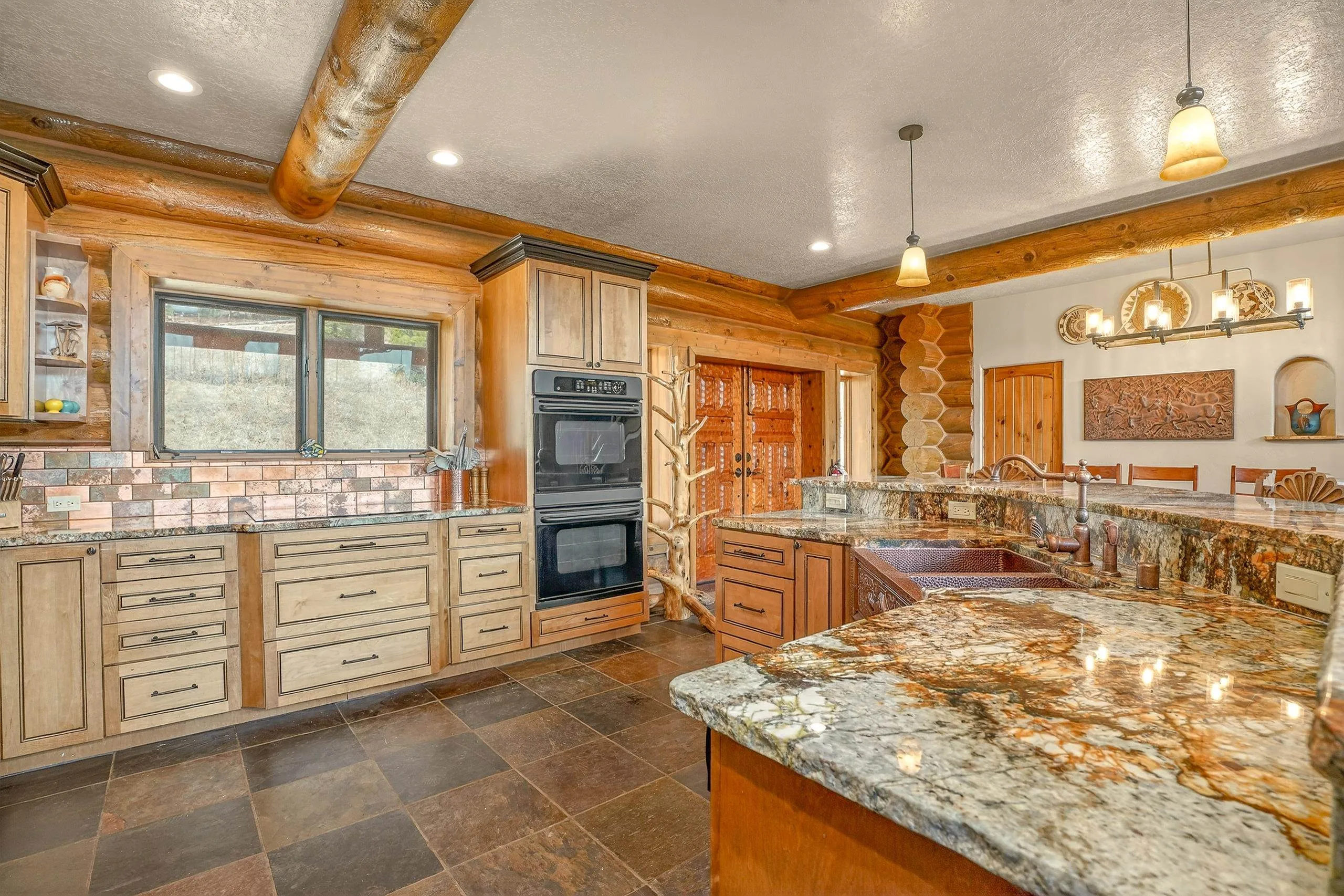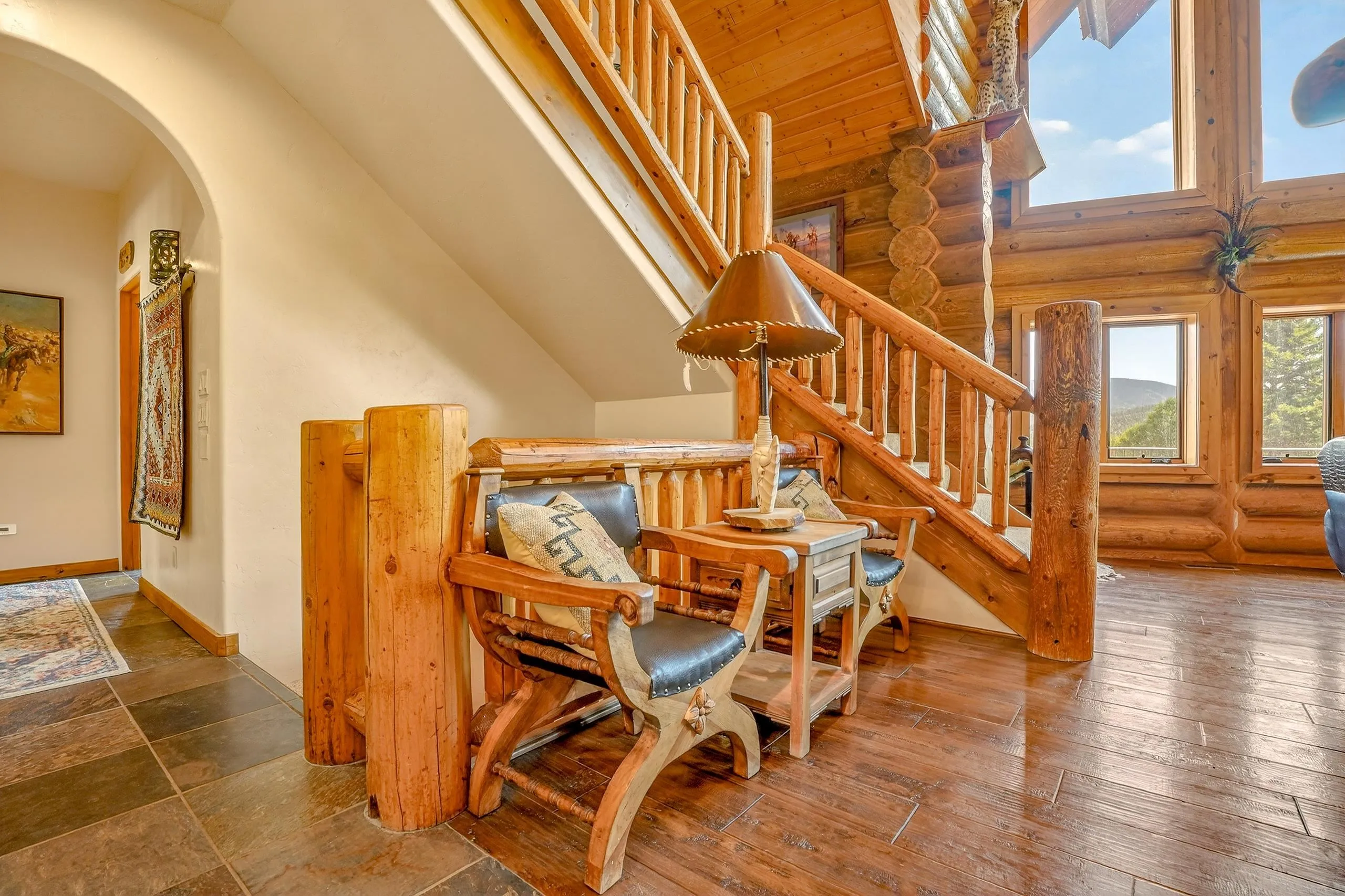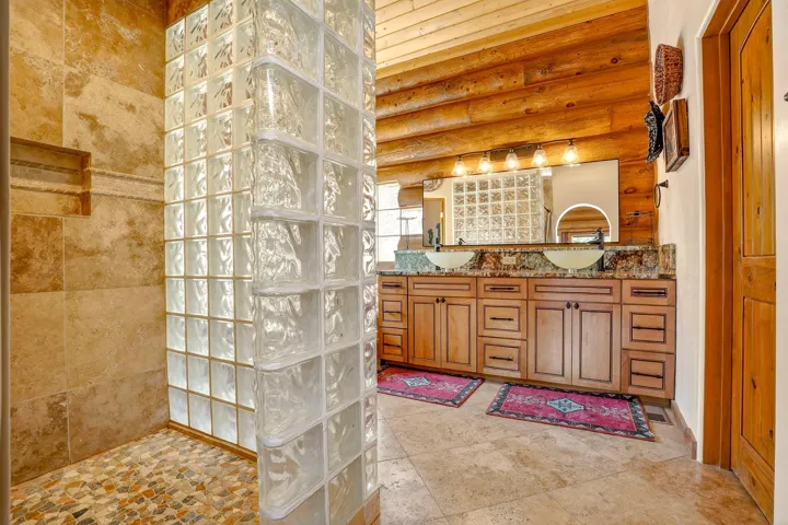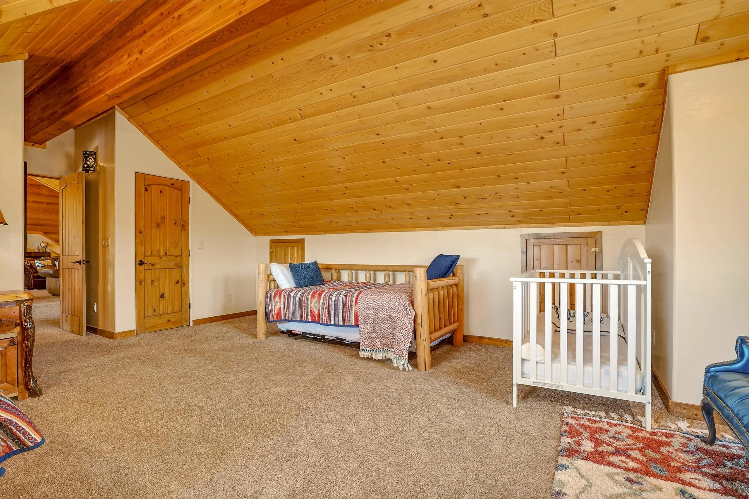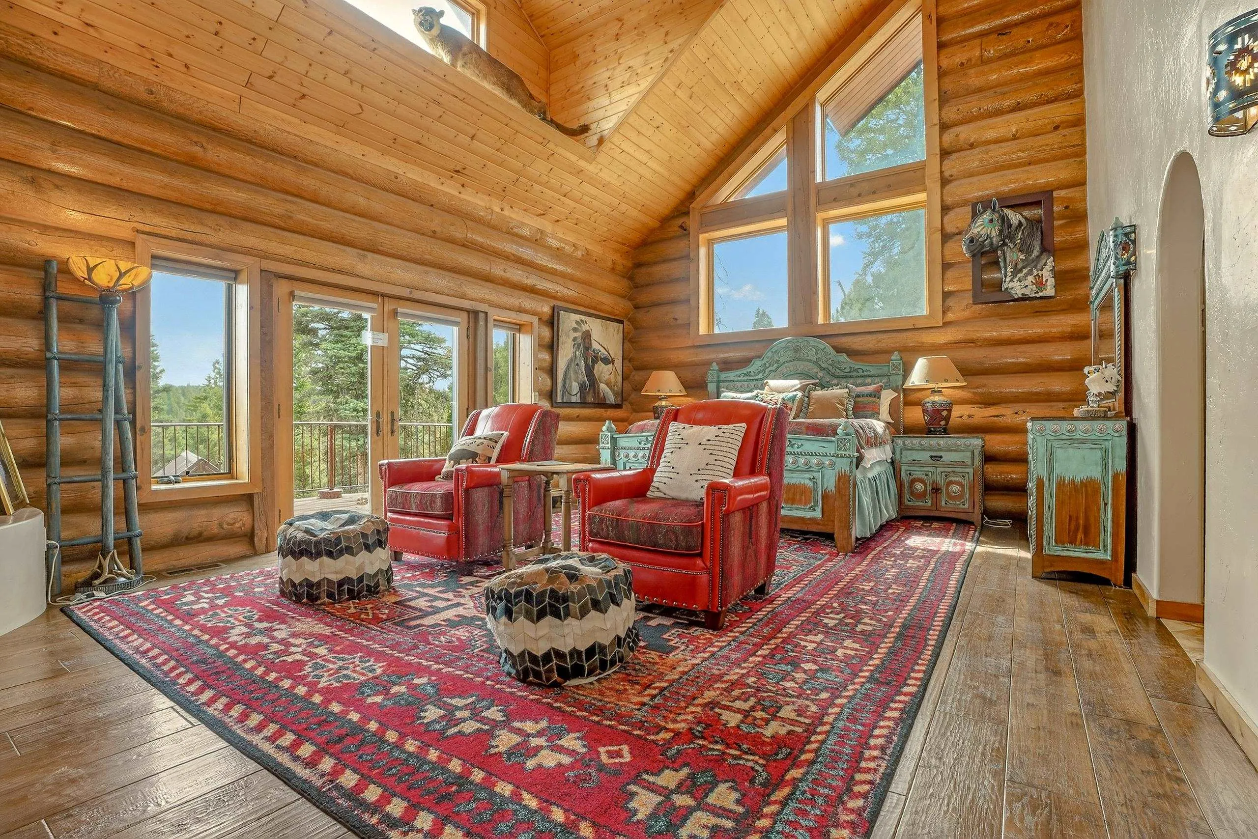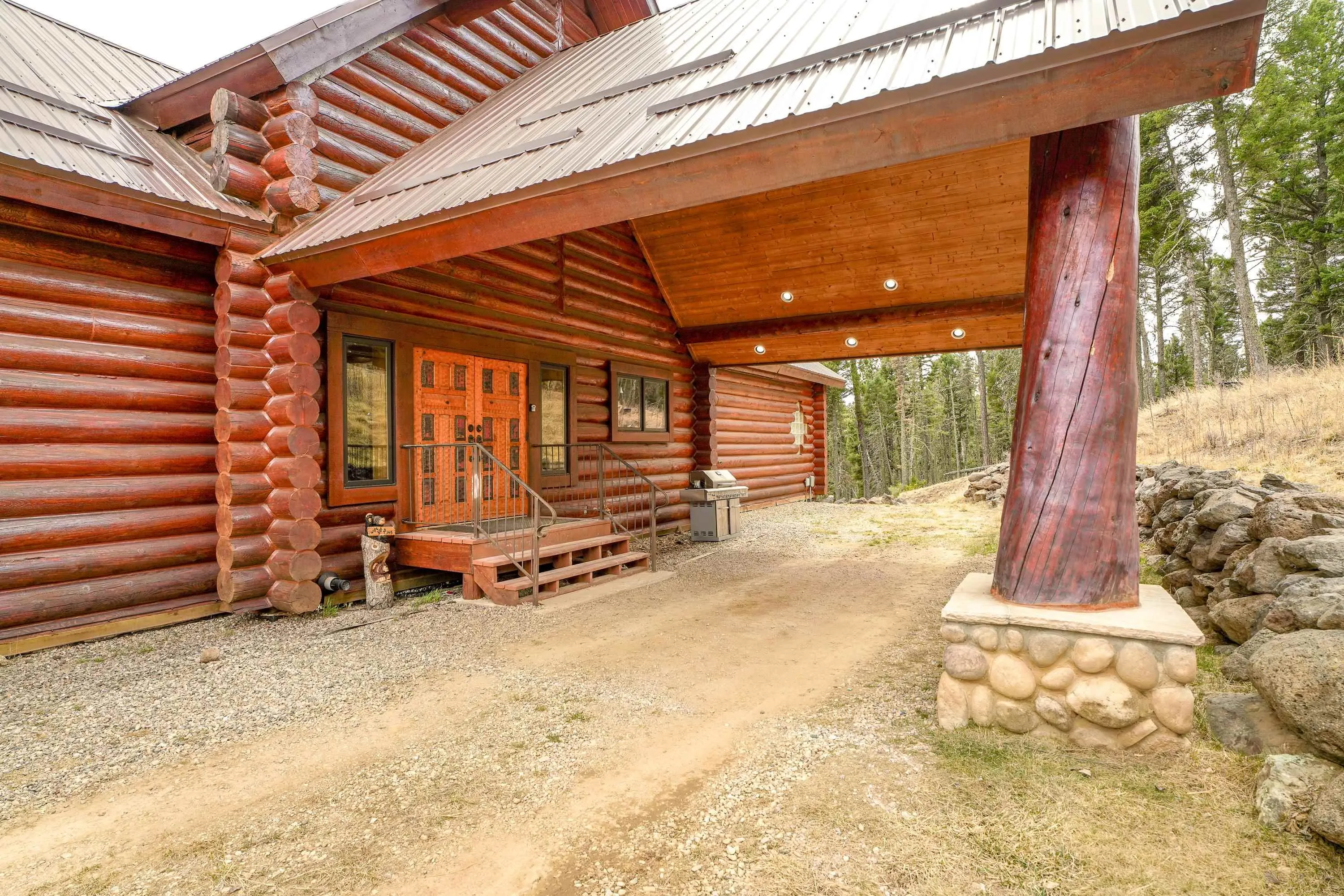 Mountain Luxury Living At Its Finest! This beautiful log and stucco residence boasts 4 spacious bedrooms, 5 bathrooms, a safe room, a children’s game room and multiple living areas. Highlighted with impressive natural log columns, soaring ceilings and a wall of windows with great views. A massive rock fireplace serves as the centerpiece of the expansive living room. The kitchen is thoughtfully designed with custom cabinetry, granite countertops, and high-quality appliances. This home offers two additional living or recreational spaces, making it ideal for large or extended family gatherings. Downstairs the “bear den” has plenty of space for game-night and the other room has unique custom bunkbeds which is perfect for the little ones. Step outside to enjoy multiple outdoor spaces, including a hot tub gazebo, a main-level deck, and a lower deck—perfect for relaxing and taking in the beautiful views toward the Valley of the Utes. Located a couple of blocks from Monte Verde Lake, this stunning home offers easy access to all the amenities Angel Fire has to offer, including skiing and golfing. Additional features include a large two-car garage and a covered drive-up portal at the front of the home, spacious enough for convenient sheltered parking. Generated $100,000+ per year in rental income for the past two years!