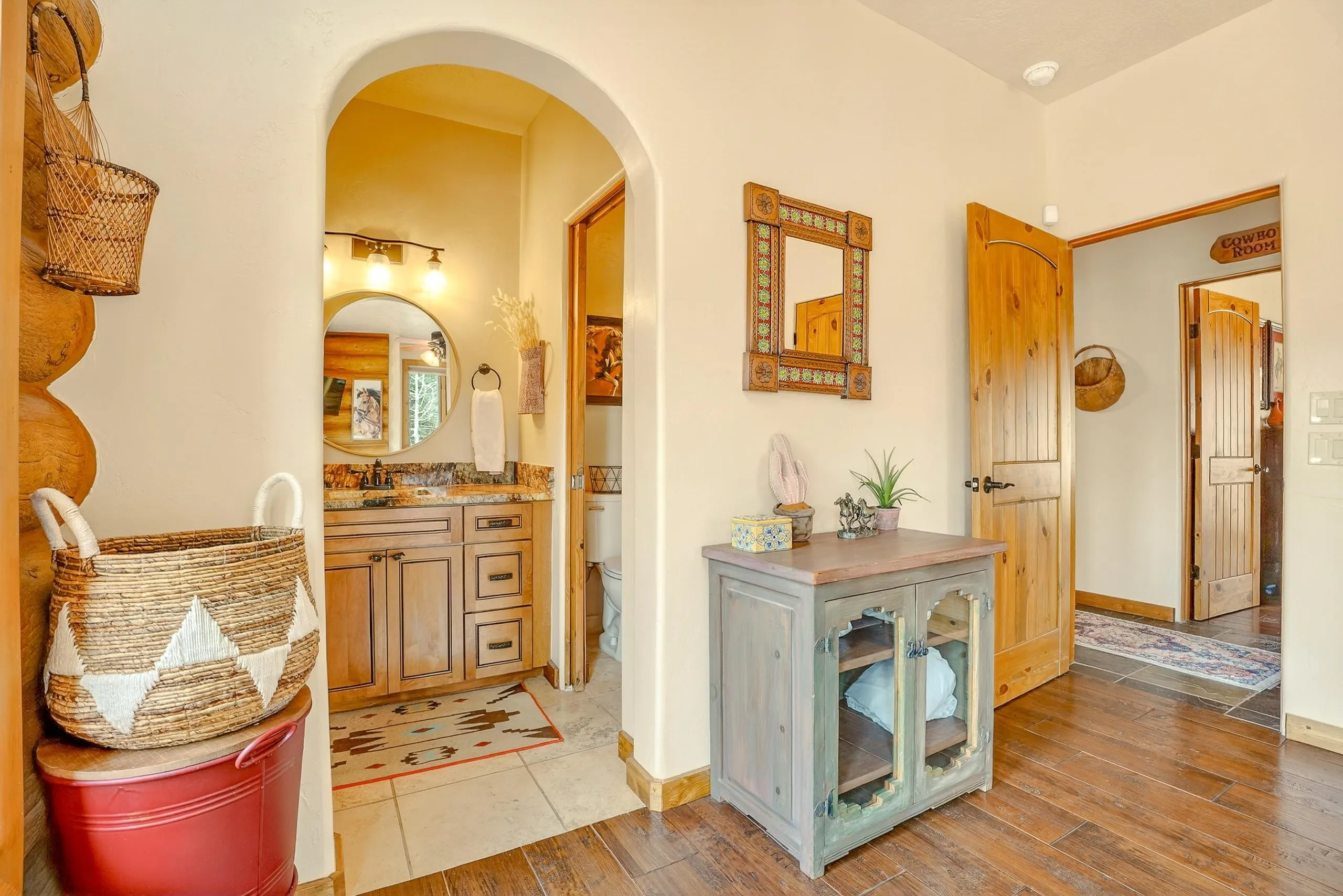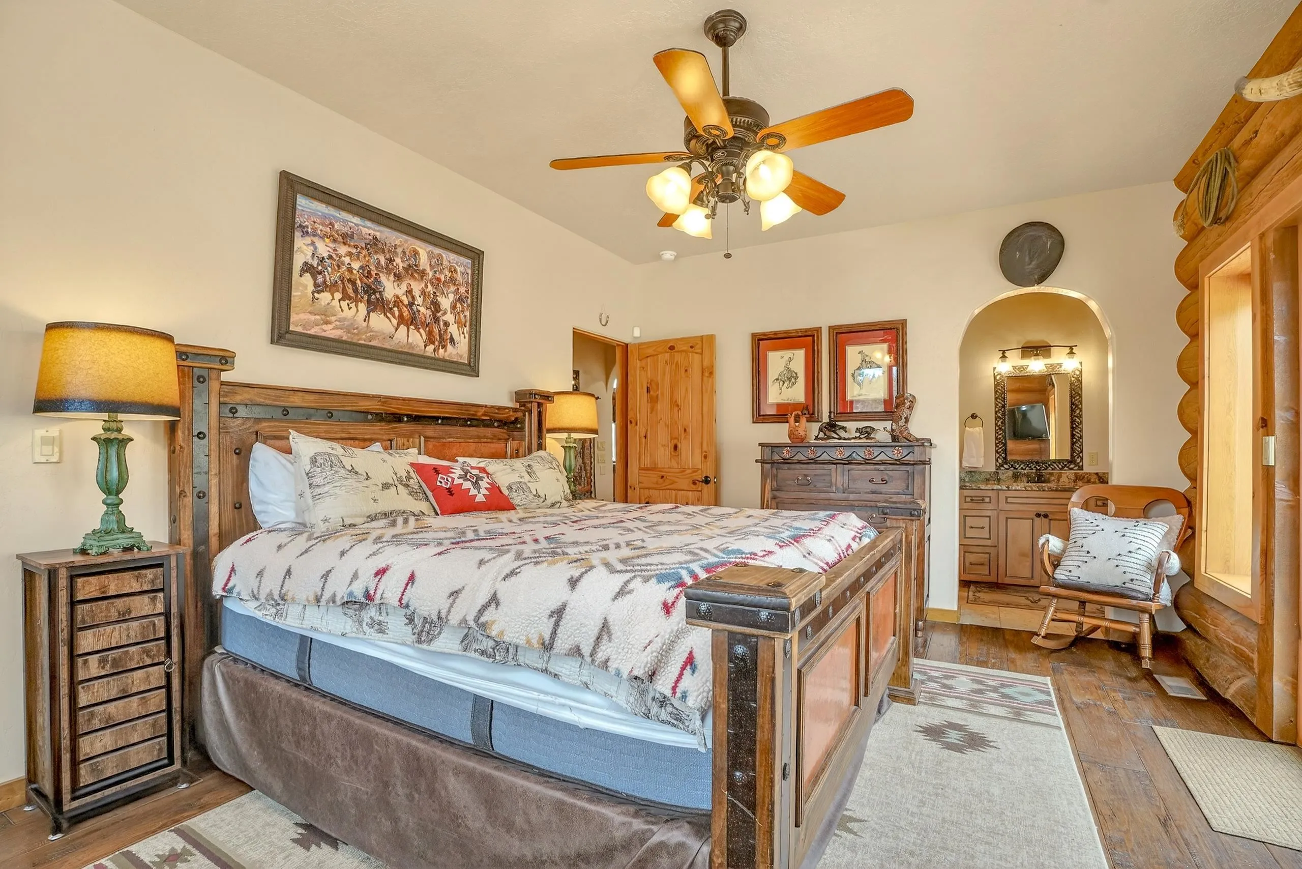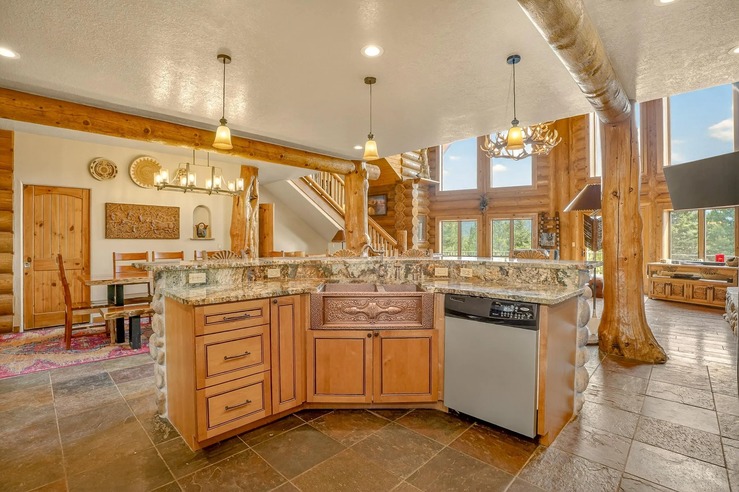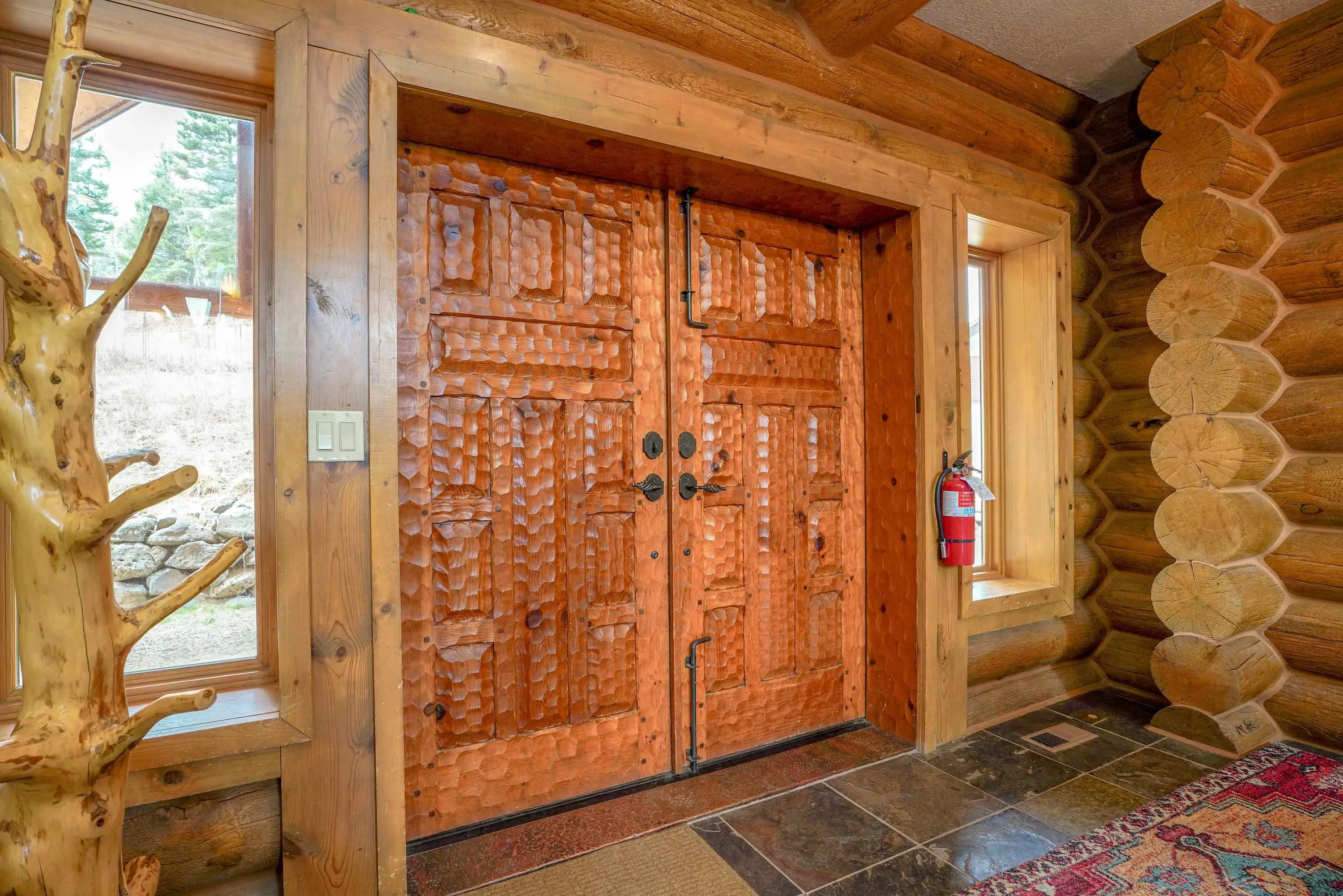 Mountain Luxury Living At Its Finest! This beautiful log and stucco residence boasts 4 spacious bedrooms, 5 bathrooms, a safe room, a children’s game room and multiple living areas. Highlighted with impressive natural log columns, soaring ceilings and a wall of windows with great views. A massive rock fireplace serves as the centerpiece of the expansive living room. The kitchen is thoughtfully designed with custom cabinetry, granite countertops, and high-quality appliances. This home offers two additional living or recreational spaces, making it ideal for large or extended family gatherings. Downstairs the “bear den” has plenty of space for game-night and the other room has unique custom bunkbeds which is perfect for the little ones. Step outside to enjoy multiple outdoor spaces, including a hot tub gazebo, a main-level deck, and a lower deck—perfect for relaxing and taking in the beautiful views toward the Valley of the Utes. Located a couple of blocks from Monte Verde Lake, this stunning home offers easy access to all the amenities Angel Fire has to offer, including skiing and golfing. Additional features include a large two-car garage and a covered drive-up portal at the front of the home, spacious enough for convenient sheltered parking. Generated $100,000+ per year in rental income for the past two years!