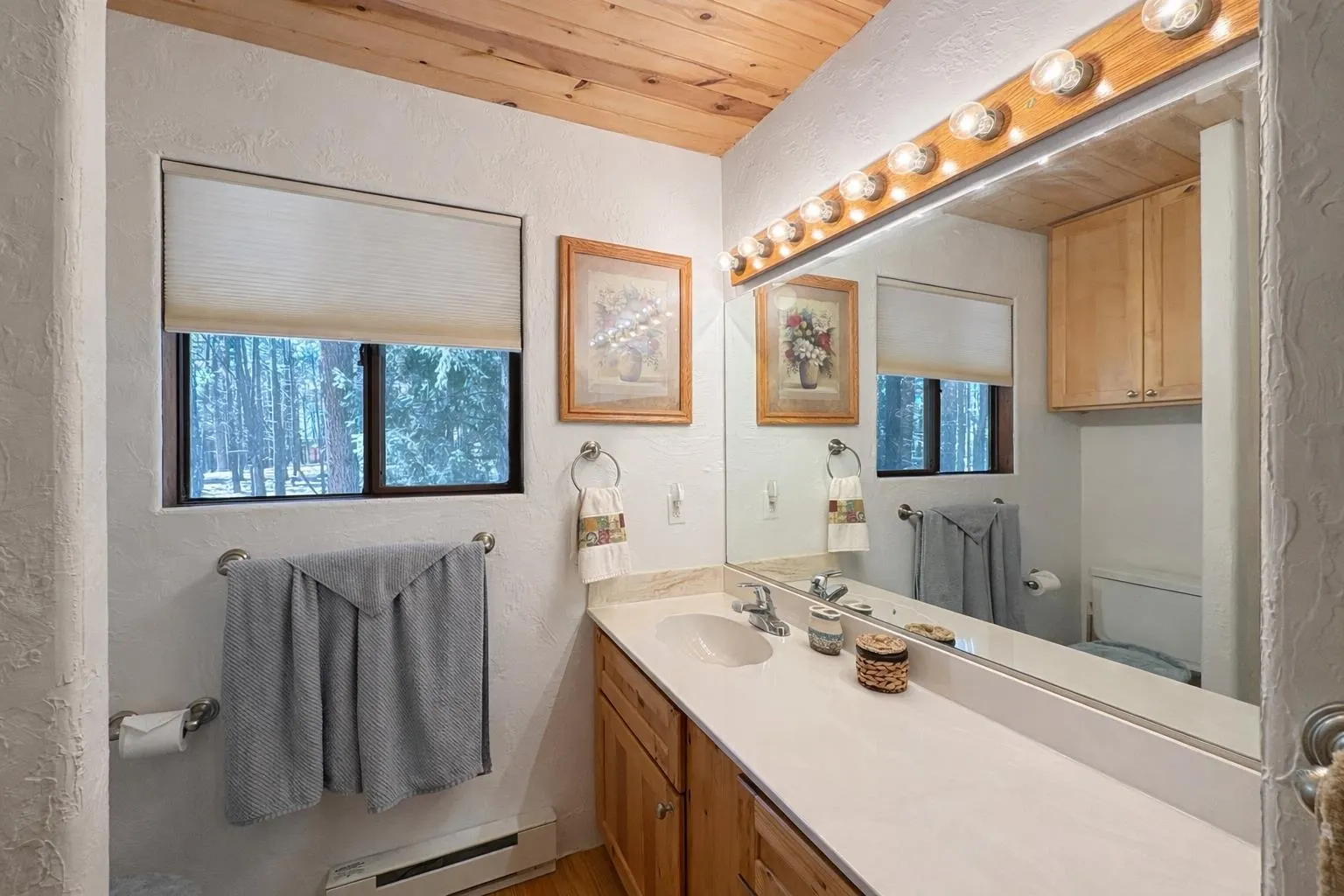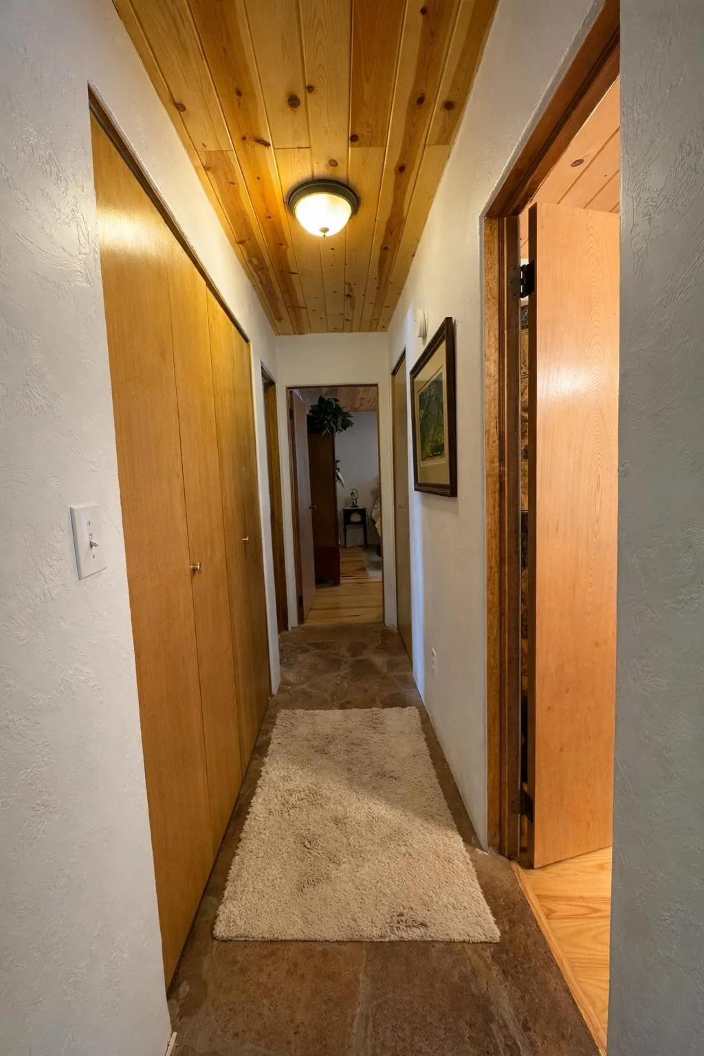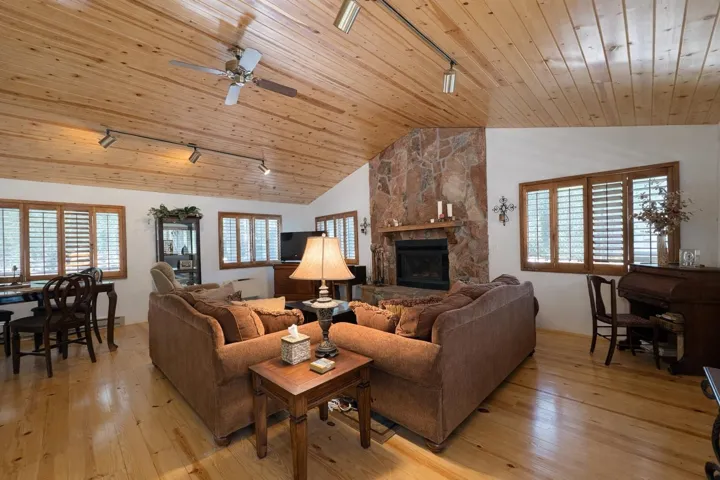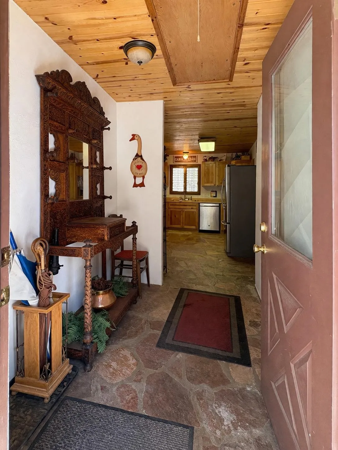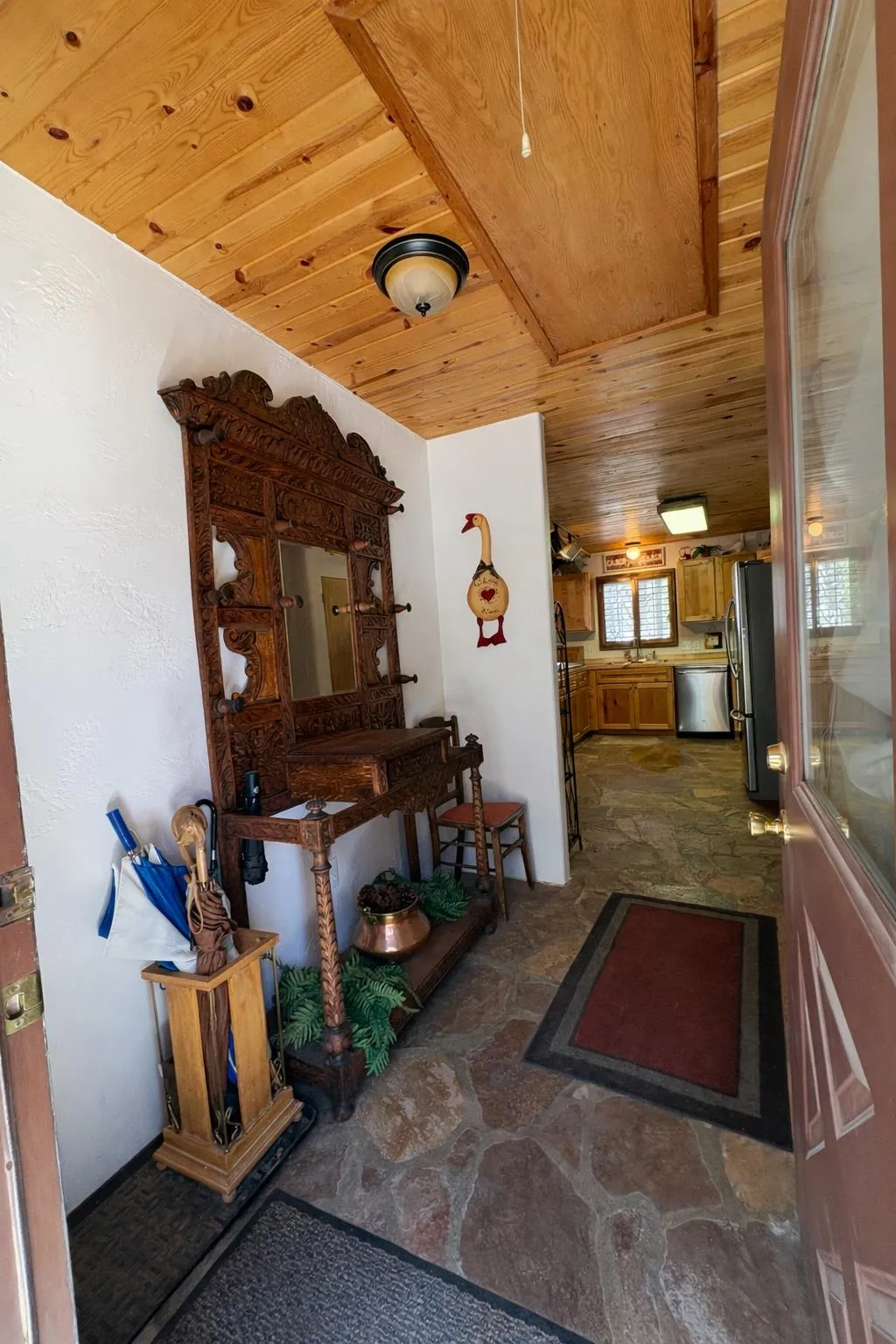 1 block from Monte Verde Lake! This adorable cabin is conveniently located, has 2 fireplaces, stone flooring, tongue & groove celings and great outdoor space! When you first walk in you are greeted by a great mud room area that leads into an open room where you’ll find the kitchen, dining room and living room. The large stone fireplace is the highlight of this space! When you step outside onto the patio is a great covered porch and a sunny BBQ area. Further into the house, you follow the stone floor into a master bedroom with another stone fireplace! The property is a part of the Angel Fire Resort Membership, where you can enjoy a PGA golf course, down hill mountain biking park, ski resort, hiking trails, fishing and so much more!