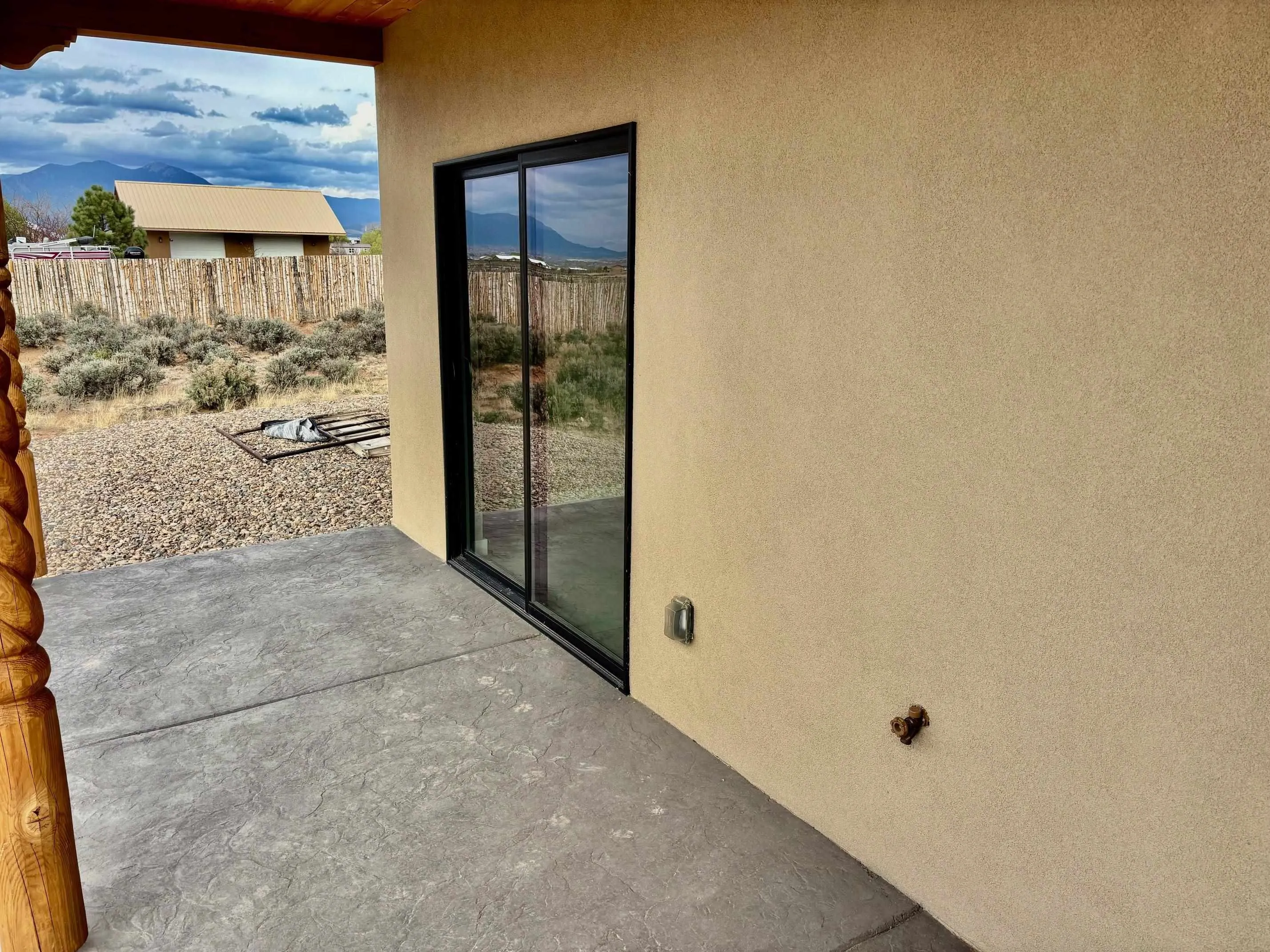 NEW CUSTOM CONSTRUCTION READY FOR OCCUPANCY. Featuring two bedrooms and two bathrooms nicely spread out over 1238 square feet. Has quartz tops, tile, and stainless-steel appliances along with a gas fireplace. The entire house has in slab, radiant heating, including the garage. Has a navien tankless water heater. Has a state-of-the-art TPO roof. The garage is considerably oversized. Prewired for a hot tub in the backyard. Fiber optics is already in the house. Closets have rods, shelves, and drawers. Television is already mounted above gas fireplace. Has amazing views of Taos Mountain along with the most amazing sunsets. This house has many remarkable upgrades.!!!