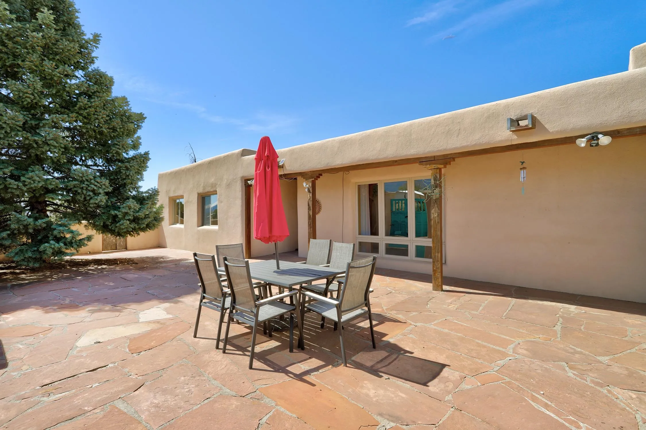 Experience the Essence of Northern New Mexico. Nestled on a lush 0.86-acre lot in the highly coveted Des Montes area, this authentic owner-built 3-bedroom, 2-bathroom adobe sanctuary offers the perfect balance of country living and accessibility. Framed by a private flagstone-walled patio, the home greets you with breathtaking, unobstructed mountain views that set a tone of immediate serenity. Inside, the craftsmanship speaks for itself. Rich wood accents, traditional Viga beam ceilings, and bespoke woodworking create a tactile warmth throughout. Whether you’re gathered around the iconic wood-burning kiva fireplace in the great room or enjoying a quiet dinner by the dining room’s gas hearth, this home is designed for comfort. As the day ends, retreat to the west-facing sunroom or the expansive deck to witness Taos’ legendary sunsets. Key Highlights: – Versatile Spaces: A 2-car, full-adobe garage and a finished basement (complete with a pool table) offer incredible potential for a creative studio or guest addition. -Modern Connectivity: Stay connected with high-speed fiber-optic internet—perfect for remote work. -Turn-Key Luxury: Sold fully furnished and includes precious irrigation water rights. -Prime Location: Situated minutes from the charm of Arroyo Seco and a short 15-minute drive to both Taos Ski Valley and the historic Town Plaza. Sold furnished.