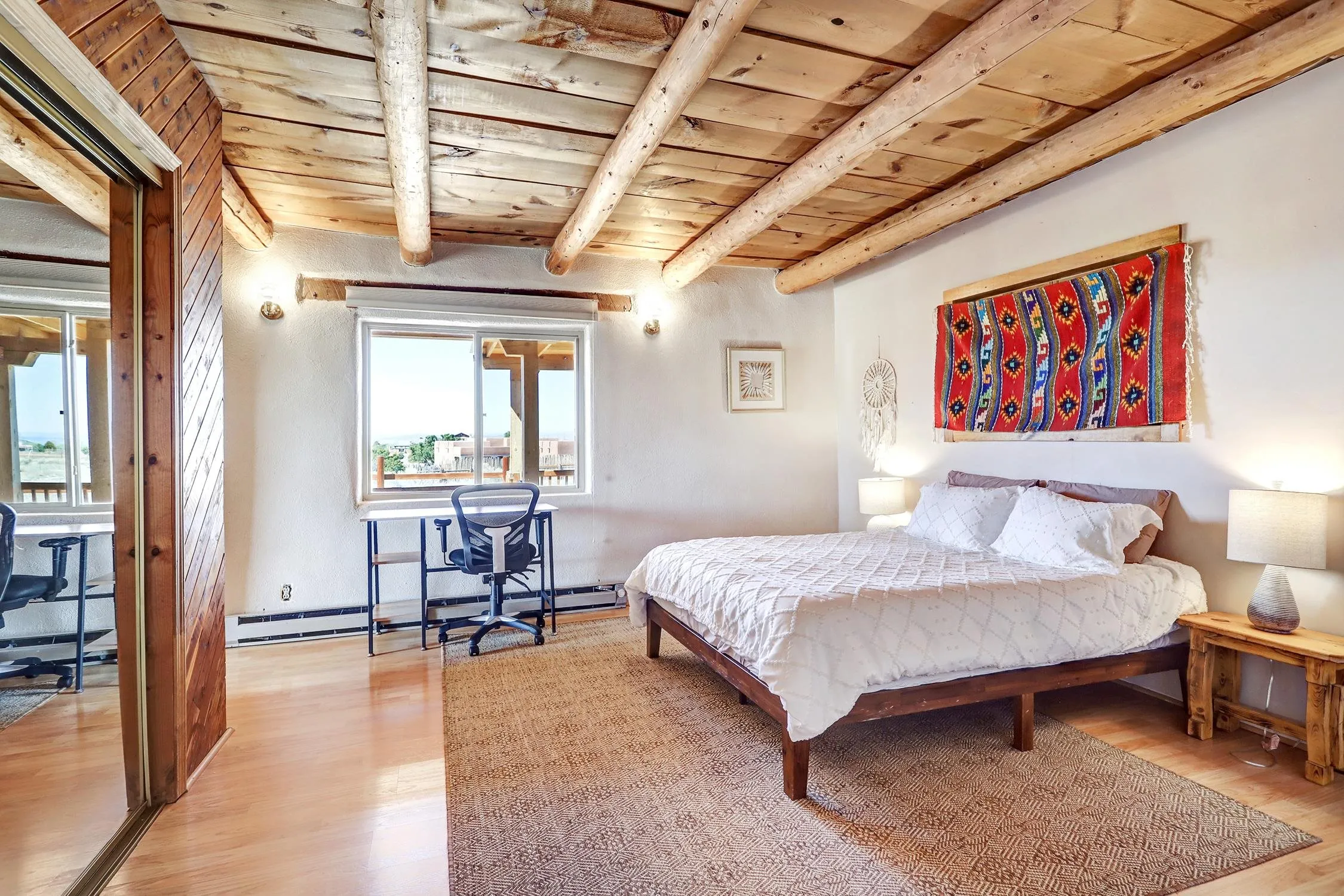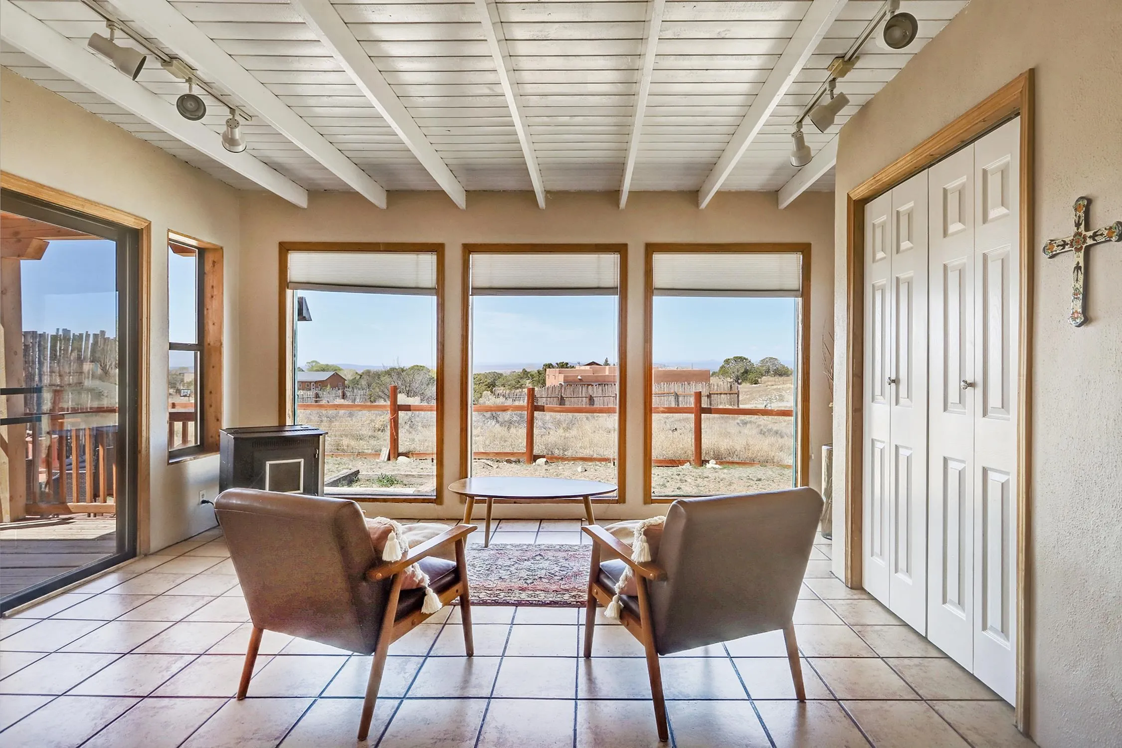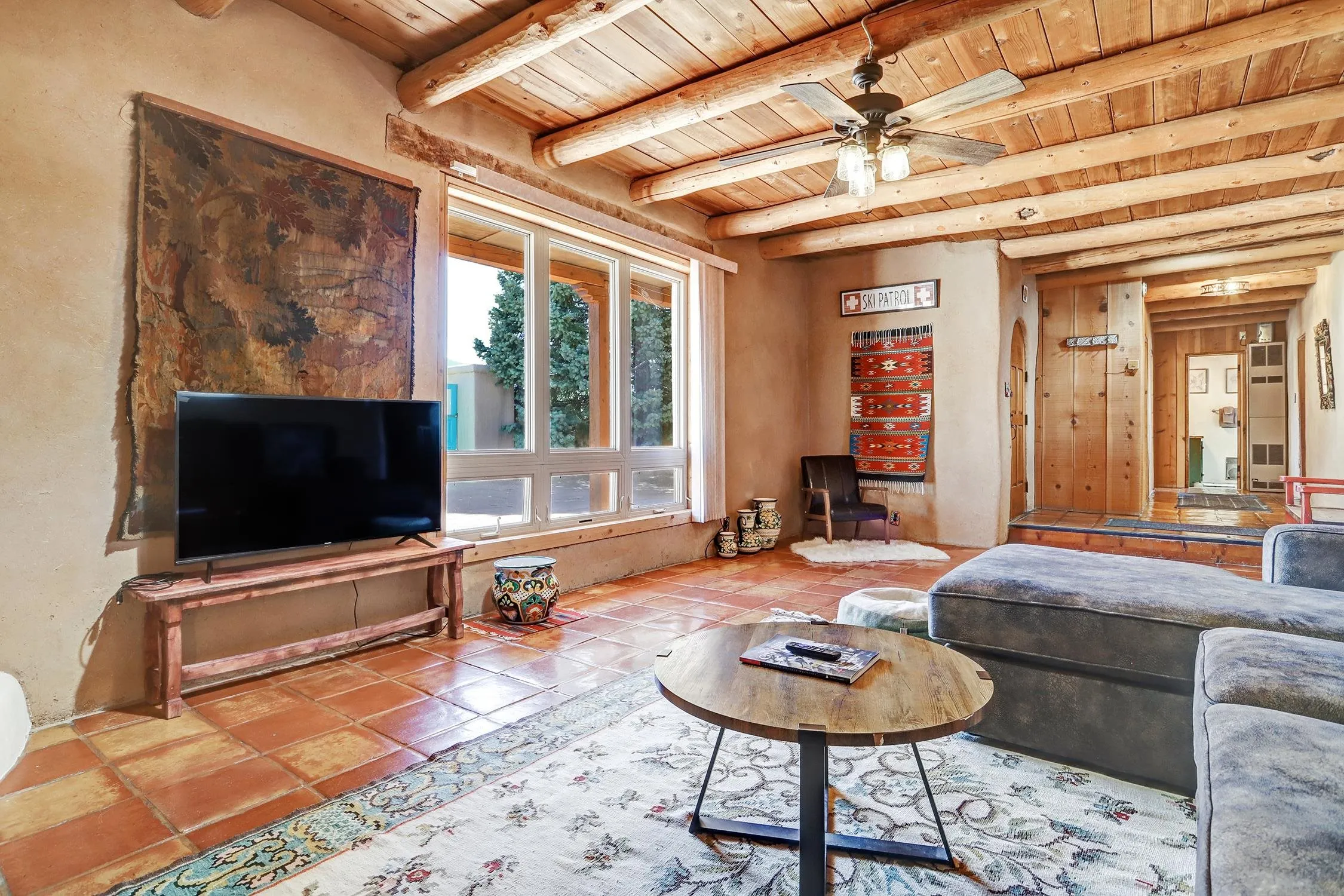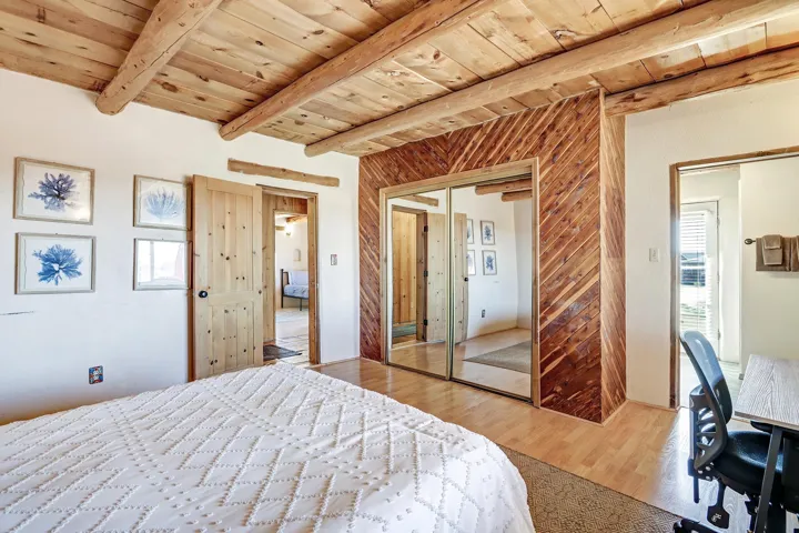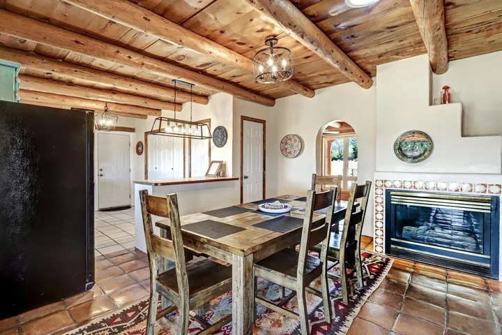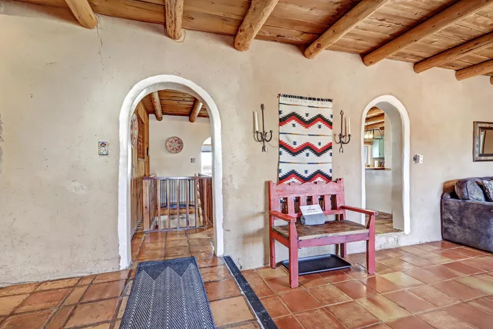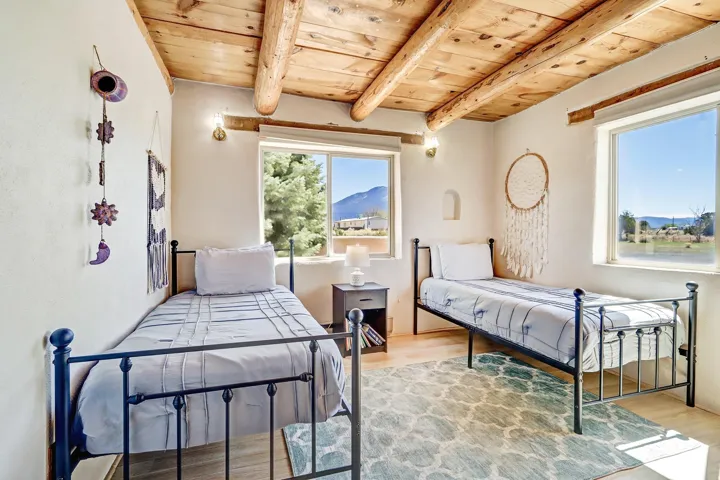 Experience the Essence of Northern New Mexico. Nestled on a lush 0.86-acre lot in the highly coveted Des Montes area, this authentic owner-built 3-bedroom, 2-bathroom adobe sanctuary offers the perfect balance of country living and accessibility. Framed by a private flagstone-walled patio, the home greets you with breathtaking, unobstructed mountain views that set a tone of immediate serenity. Inside, the craftsmanship speaks for itself. Rich wood accents, traditional Viga beam ceilings, and bespoke woodworking create a tactile warmth throughout. Whether you’re gathered around the iconic wood-burning kiva fireplace in the great room or enjoying a quiet dinner by the dining room’s gas hearth, this home is designed for comfort. As the day ends, retreat to the west-facing sunroom or the expansive deck to witness Taos’ legendary sunsets. Key Highlights: – Versatile Spaces: A 2-car, full-adobe garage and a finished basement (complete with a pool table) offer incredible potential for a creative studio or guest addition. -Modern Connectivity: Stay connected with high-speed fiber-optic internet—perfect for remote work. -Turn-Key Luxury: Sold fully furnished and includes precious irrigation water rights. -Prime Location: Situated minutes from the charm of Arroyo Seco and a short 15-minute drive to both Taos Ski Valley and the historic Town Plaza.