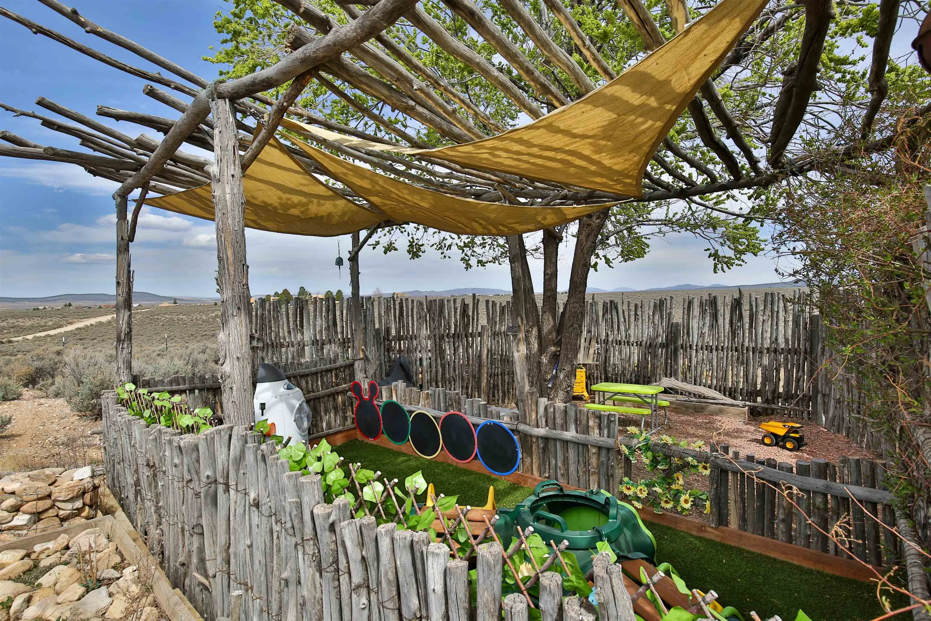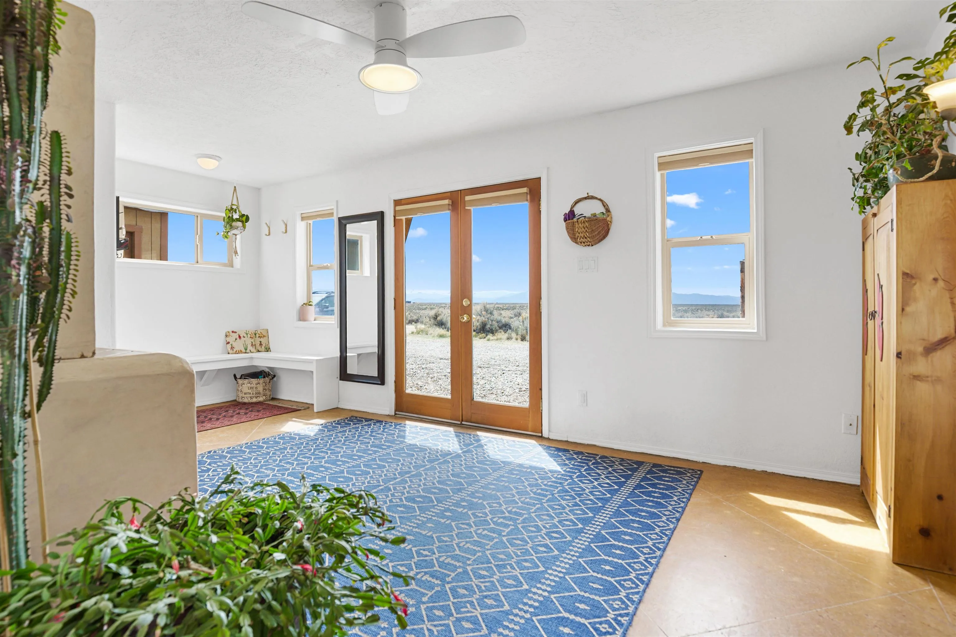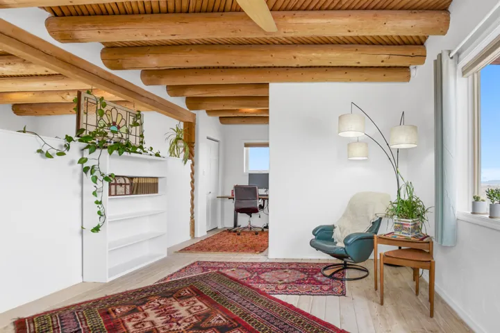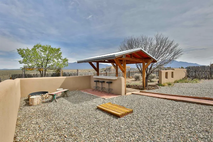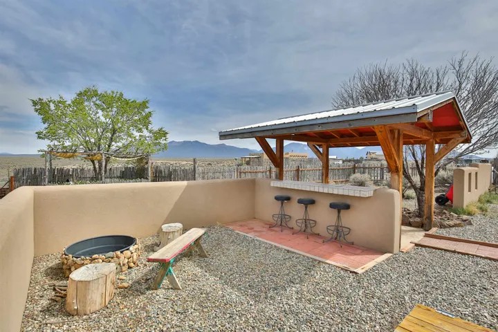If you are looking for views, this home delivers in every direction. Seriously, every window has something to show off. This 3 bedroom, 2 and a half bath home offers space, light, and a layout that keeps things interesting. One of the bedrooms is a loft with its own ensuite bath, perfect for guests, creative space, or your own little retreat above it all. Horse lovers, this one is for you. Riding is encouraged, with designated easements along the roads and wider corridors along the east and west boundaries, so you can saddle up and head out right from home. Inside, radiant floor heat keeps things cozy, while a high efficiency wood stove adds that perfect mountain home touch. Copper countertops bring warmth and character to the kitchen, and there is room to spread out, entertain, and actually enjoy your space. The separate dining room is filled with natural light and feels made for long dinners and good company. Step outside and it only gets better. A large portal faces directly toward Taos Mountain, giving you a front row seat to one of the best views in the area. It is the perfect setting for outdoor entertaining, complete with an exterior bar and barbecue area. There is also a separate area for animals, making this property as practical as it is beautiful. If you love the outdoors, you are in the right place. Hiking, biking, and exploring are all close by, with the Rio Grande del Norte National Monument just minutes away, helping preserve the views and the wide open feel for years to come. Space, views, and a lifestyle that feels a little bigger out here. Come see it for yourself. For more views: https://youtu.be/mpZ2B_1aX8M