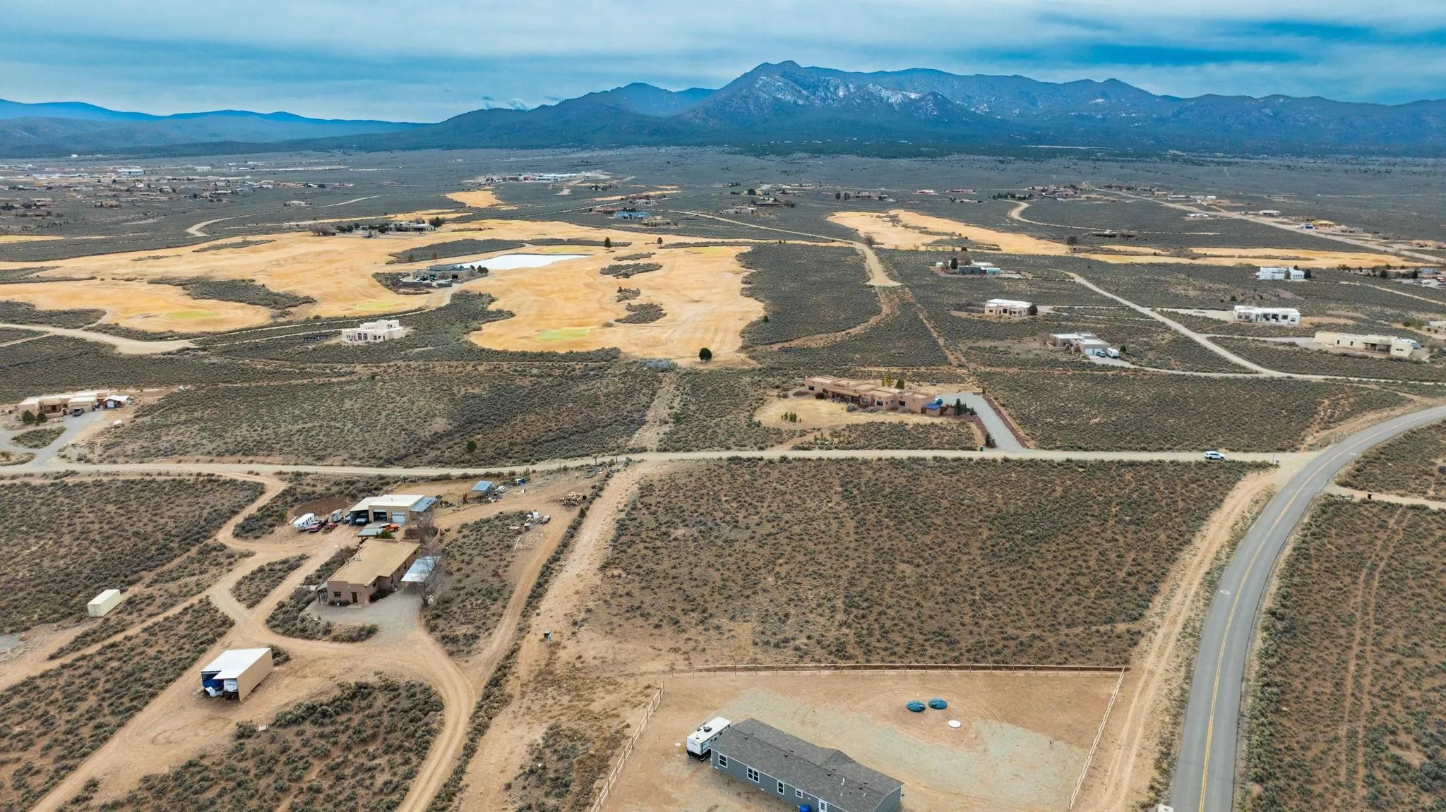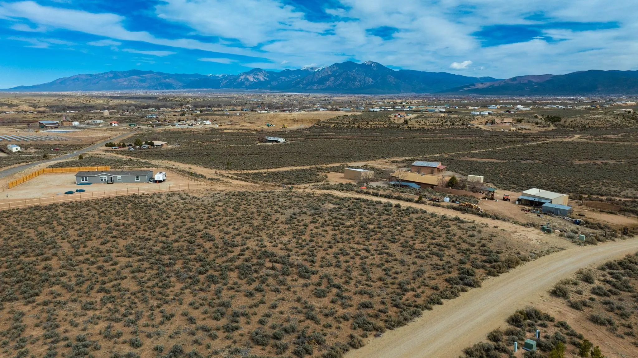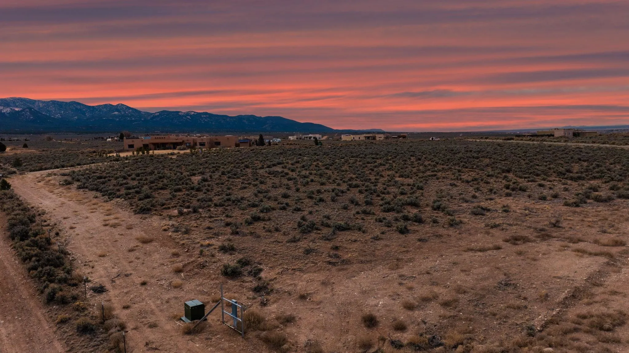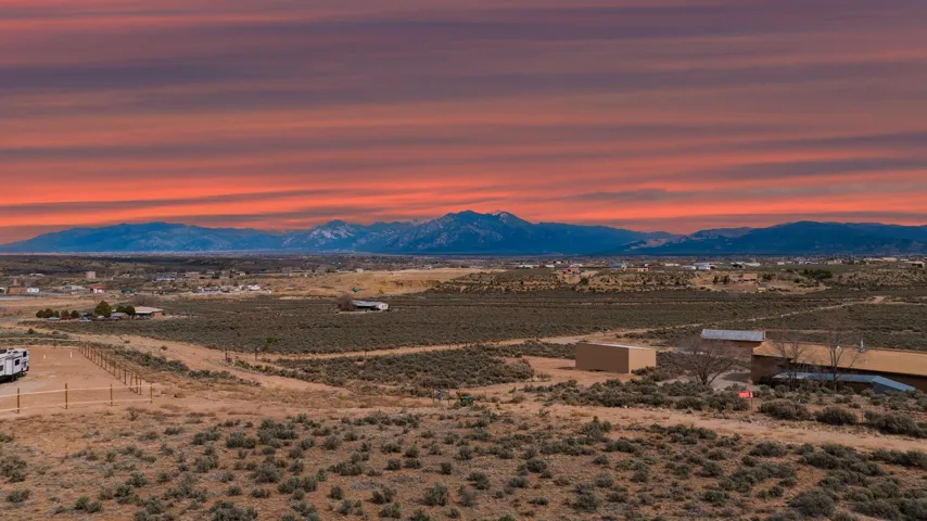 Endless Elevated Views in Taos ~ Prime 1.24-acre lot with flat topography, build-ready in a popular part of town. With electricity already at the lot—and some of the most breathtaking views of the Taos skyline—your dream home will be tucked away in the quiet back corner of the desirable Country Club subdivision. This parcel offers the perfect blend of high-desert privacy and ultimate convenience. You’ll enjoy easy paved access straight into downtown Taos, putting you just minutes away from the vibrant art galleries, historic adobe architecture, and world-class Southwestern dining the town is famous for. With golfing just around the corner, a short drive to the scenic Rio Pueblo trails, and a gateway to the legendary slopes of Taos Ski Valley, this lot is an ideal blank canvas for a picturesque custom build, a tranquil desert retreat, or a smart investment property. Prepare to be captivated by spectacular sunrises and sunsets every single day. Some photos virtually depict a home to spark creativity, but do make it a reality. Drive by Copper Moon and experience this special Taos property for yourself today!