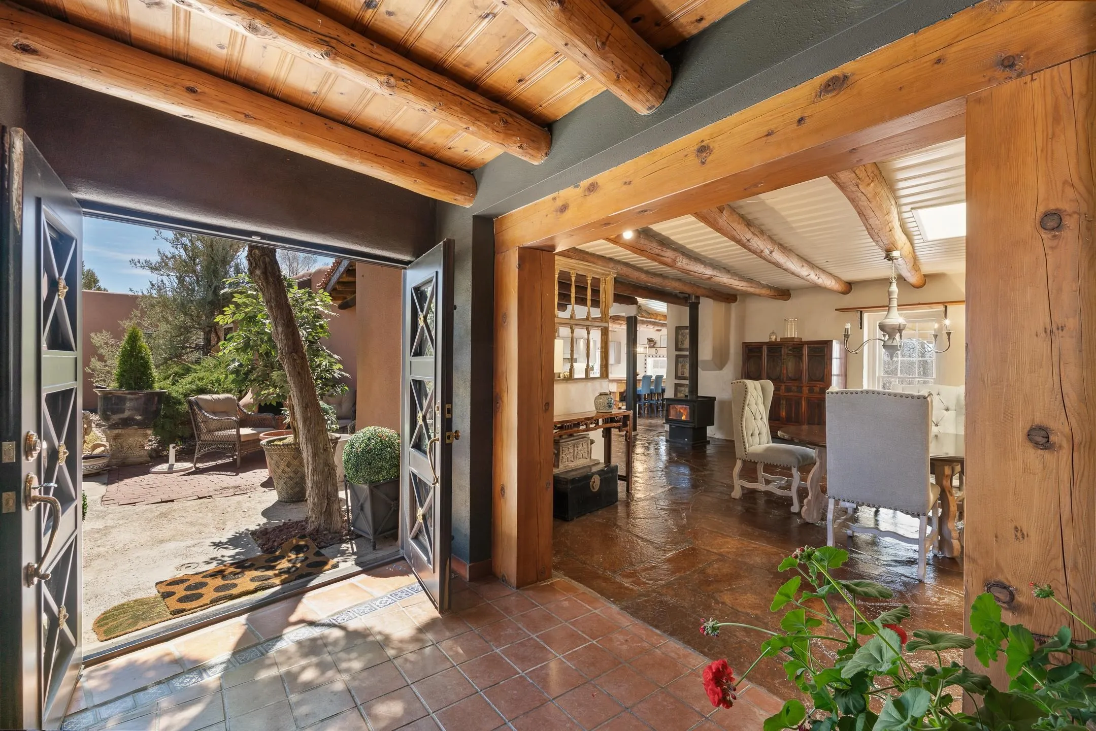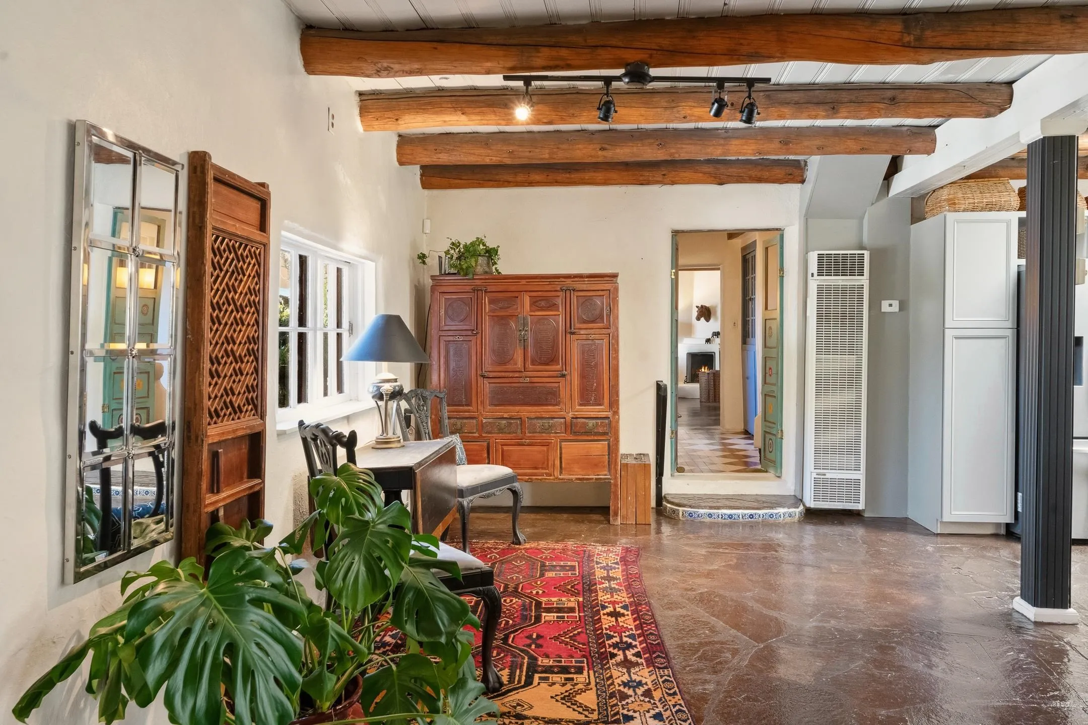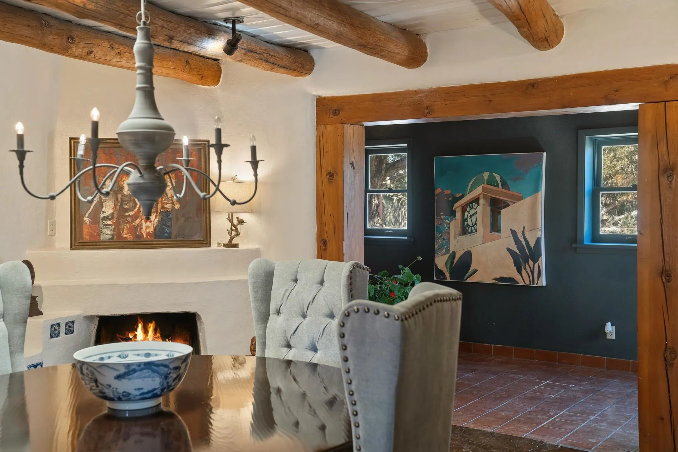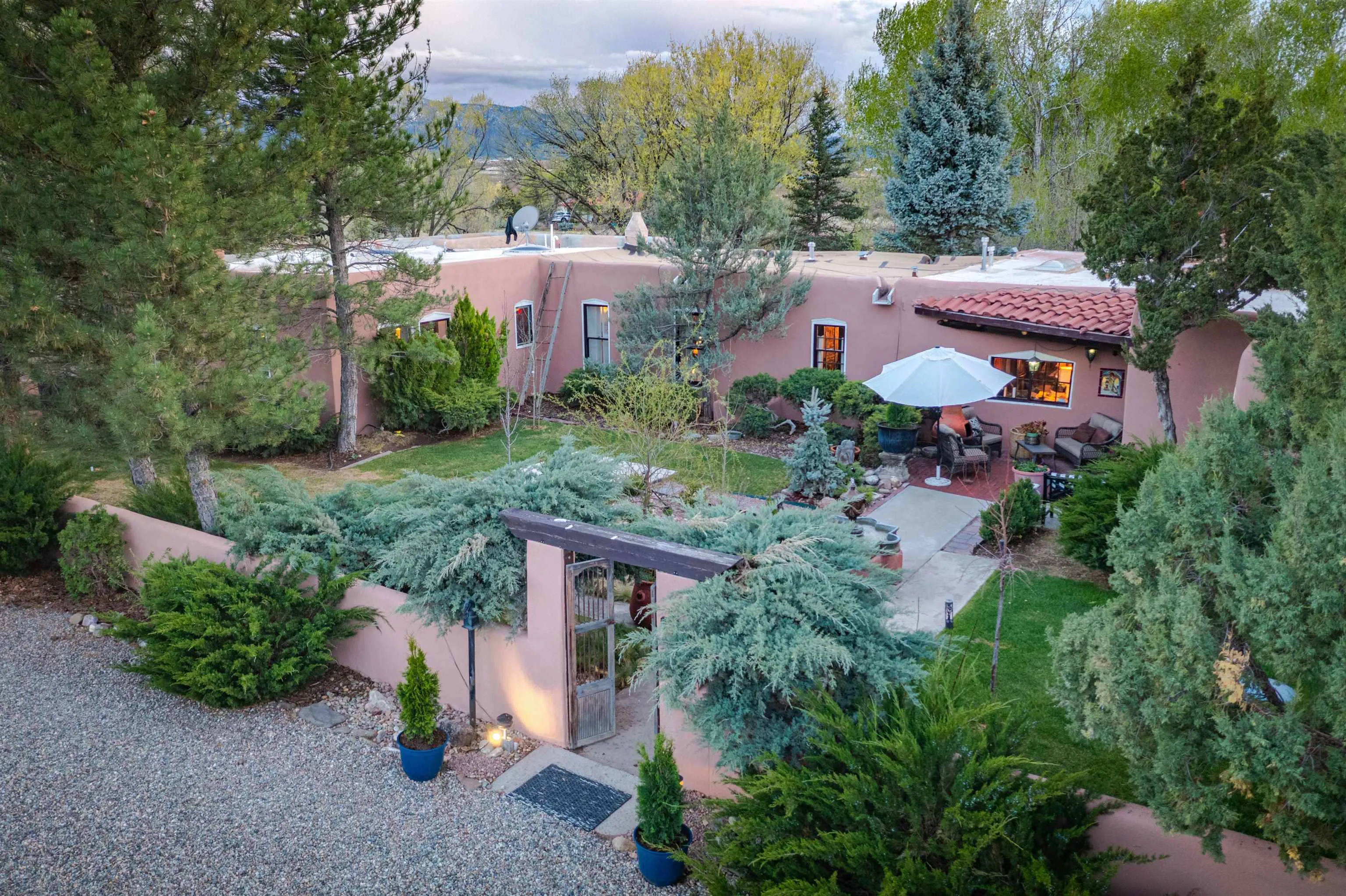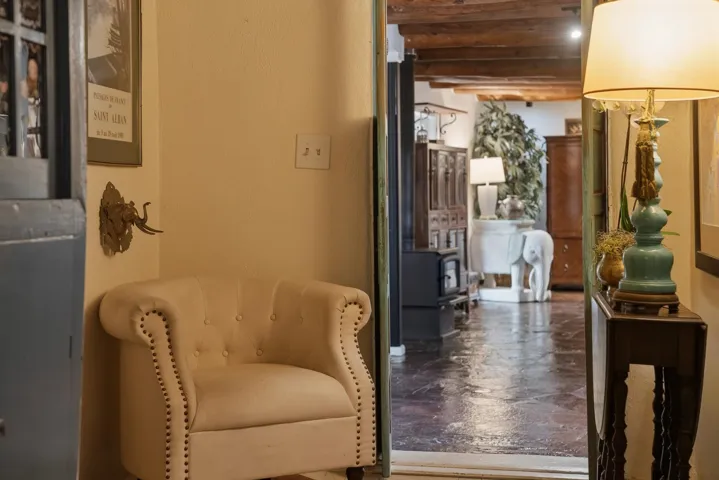222 State Road 240 –Timeless charm and modern luxury in this stunning 4,030 sq. ft. adobe hacienda is a rare find in the highly desirable historic and agricultural Cordillera area of Ranchos de Taos. This serene setting is just 2 miles from Taos Plaza and 16 miles from the world class skiing of Taos ski valley. Spanish architecture has been blended with the influence of Taos Pueblo, (a Unesco world heritage site), and is reflected in the natural building materials , skylights, vigas, nichos, fireplaces and color palette. Original portion of the building is said to have been built in the 1800’s several additions have followed, the largest in 1949 and 1977. This 3-bedroom, 3.5-bathroom hacienda sits on 3.34 serene acres, surrounded by mature trees, a traditional low adobe wall, and the natural beauty of the high desert. The acequia flows just near the back porch allowing for the tranquil sound of water to be enjoyed and used to keep the land lush. The outdoor living spaces have been carefully curated and invite entertaining or simple meditative space. From the moment you step inside, the home’s character is unmistakable. Thick adobe walls, built-in storage, nichos, and five fireplaces infuse warmth and tradition throughout. The primary suite is a true retreat, complete with its own fireplace, an ensuite bathroom with a walk-in shower and separate tub, and an oversized closet with built-in storage. The home has undergone extensive updates while maintaining its historic integrity, making it a perfect property for short term rental. Turn key option is available, as well as a vintage Jaguar. The property has also received significant roof improvements, ensuring its longevity and durability. Beyond the main residence, an original studio with electricity offers endless possibilities as a creative workspace or private office. Additional outbuildings provide storage and functionality, while the sprawling acreage offers ample space for horses or future expansion. This extraordinary home embodies the essence of New Mexico’s history, craftsmanship, and timeless appeal. If you’ve been searching for an authentic adobe estate with character, history, and modern conveniences, look no further—this is the one.