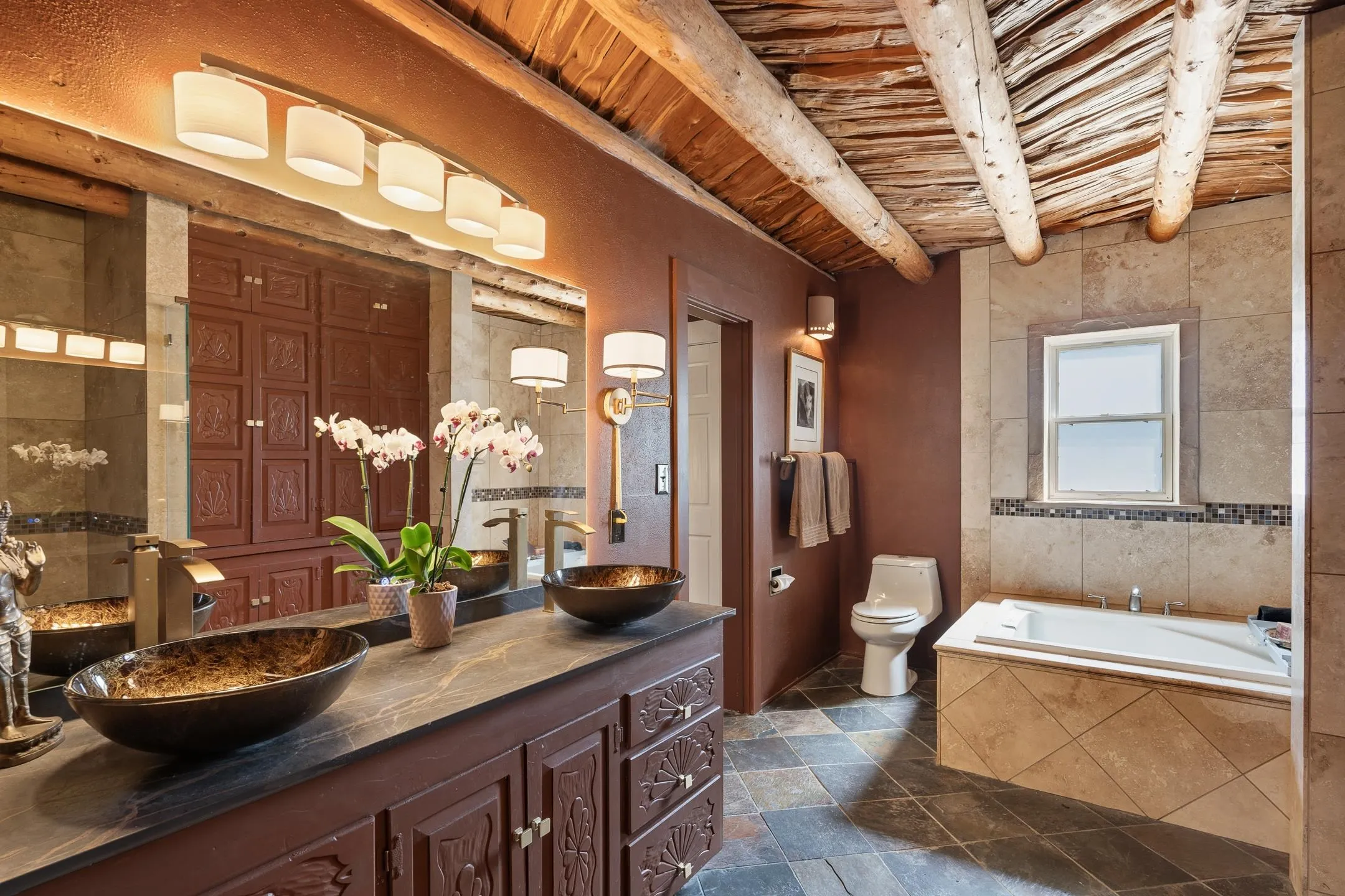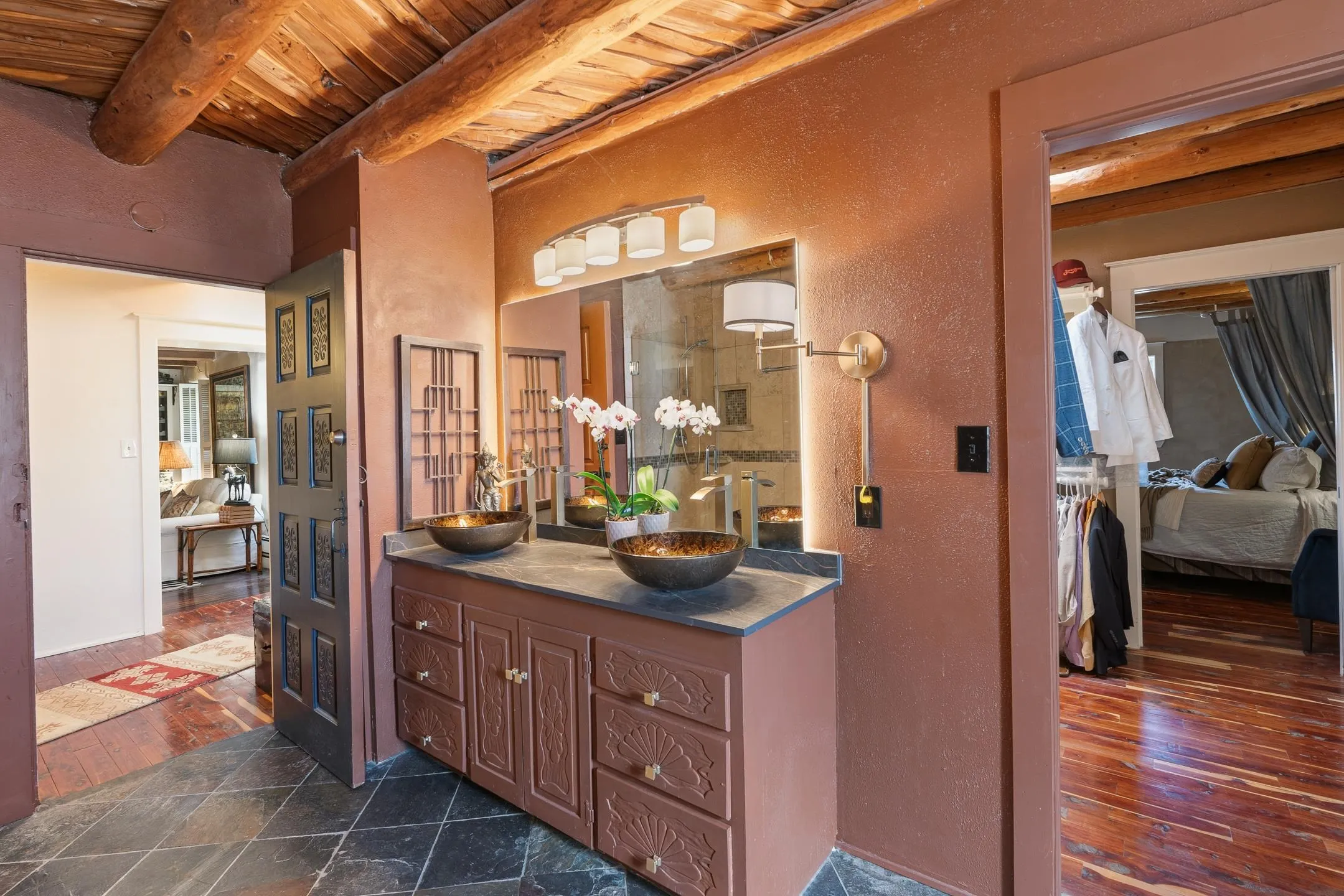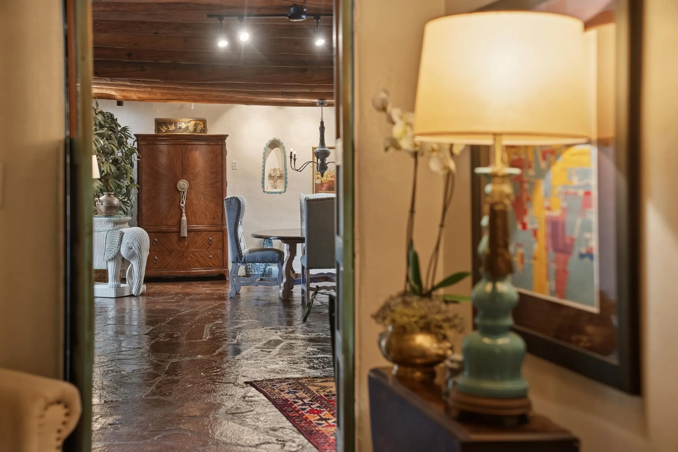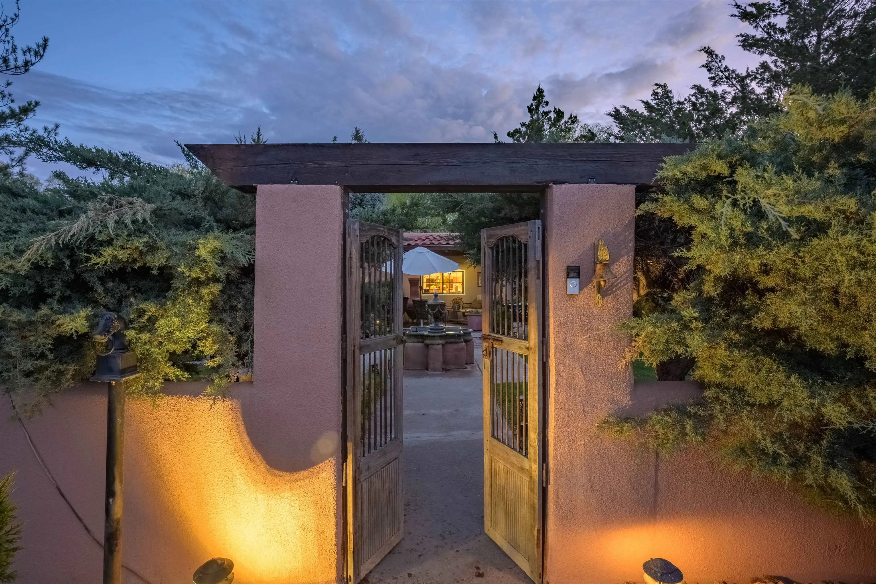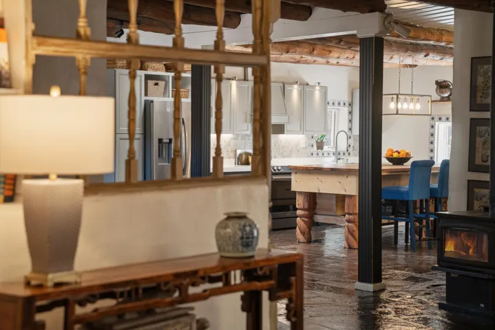 222 State Road 240 –Timeless charm and modern luxury in this stunning 4,030 sq. ft. adobe hacienda is a rare find in the highly desirable historic and agricultural Cordillera area of Ranchos de Taos. This serene setting is just 2 miles from Taos Plaza and 16 miles from the world class skiing of Taos ski valley. Spanish architecture has been blended with the influence of Taos Pueblo, (a Unesco world heritage site), and is reflected in the natural building materials , skylights, vigas, nichos, fireplaces and color palette. Original portion of the building is said to have been built in the 1800’s several additions have followed, the largest in 1949 and 1977. This 3-bedroom, 3.5-bathroom hacienda sits on 3.34 serene acres, surrounded by mature trees, a traditional low adobe wall, and the natural beauty of the high desert. The acequia flows just near the back porch allowing for the tranquil sound of water to be enjoyed and used to keep the land lush. The outdoor living spaces have been carefully curated and invite entertaining or simple meditative space. From the moment you step inside, the home’s character is unmistakable. Thick adobe walls, built-in storage, nichos, and five fireplaces infuse warmth and tradition throughout. The primary suite is a true retreat, complete with its own fireplace, an ensuite bathroom with a walk-in shower and separate tub, and an oversized closet with built-in storage. The home has undergone extensive updates while maintaining its historic integrity, making it a perfect property for short term rental. Turn key option is available, as well as a vintage Jaguar. The property has also received significant roof improvements, ensuring its longevity and durability. Beyond the main residence, an original studio with electricity offers endless possibilities as a creative workspace or private office. Additional outbuildings provide storage and functionality, while the sprawling acreage offers ample space for horses or future expansion. This extraordinary home embodies the essence of New Mexico’s history, craftsmanship, and timeless appeal. If you’ve been searching for an authentic adobe estate with character, history, and modern conveniences, look no further—this is the one.