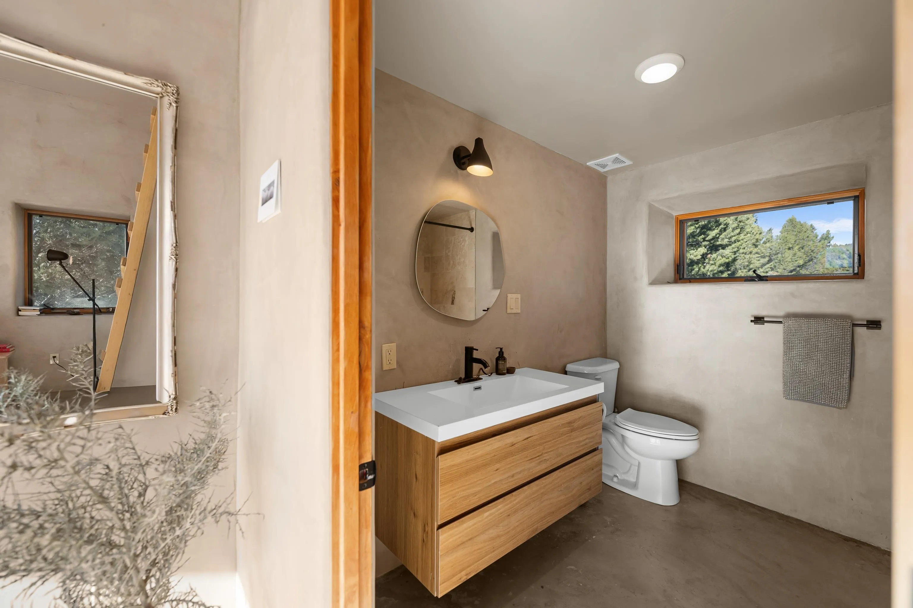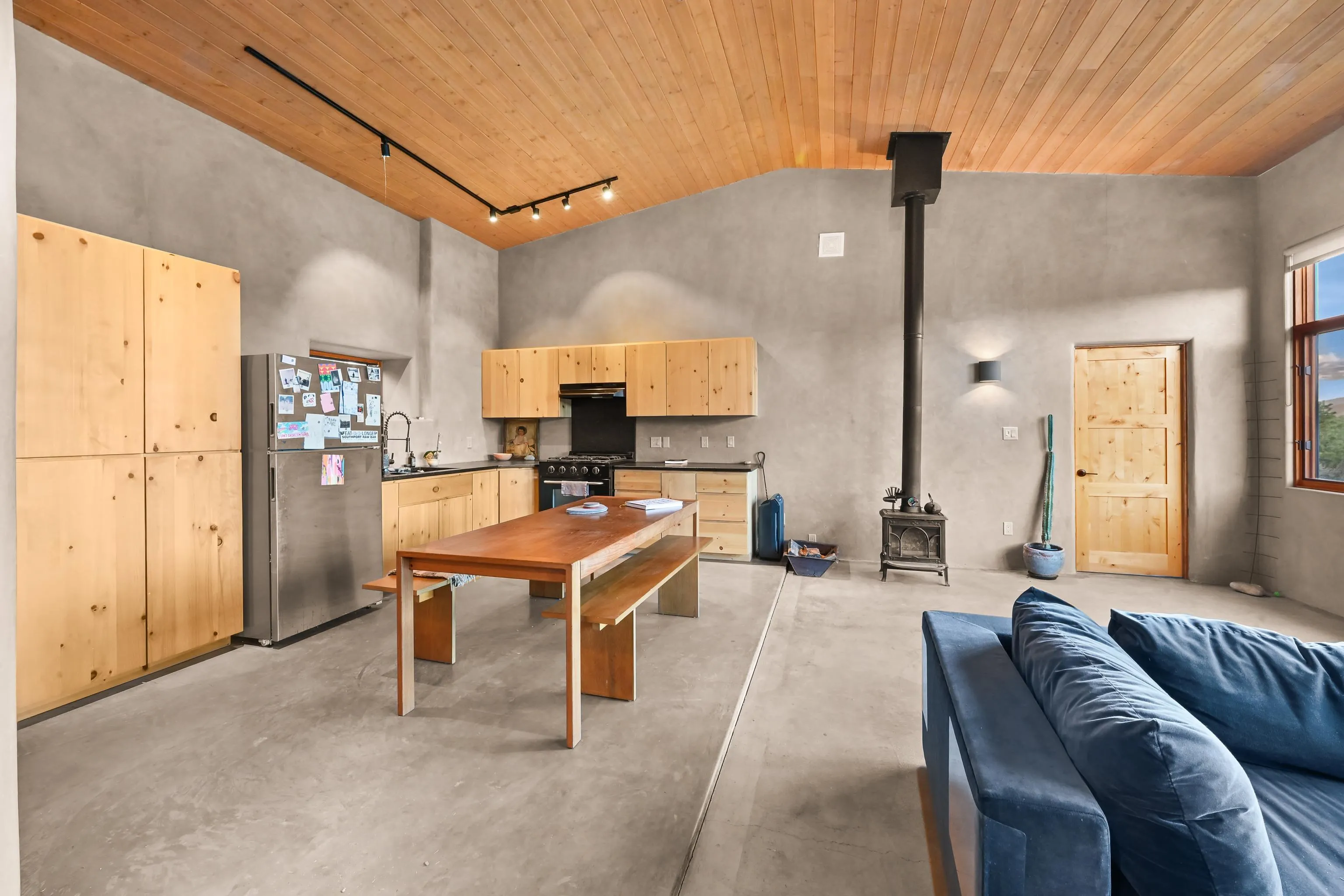 Set on 9 private acres just outside Carson, this thoughtfully crafted 2-bedroom, 2-bath home offers a rare balance of independence, comfort, and enduring quality—just 35 minutes from Taos. Built in 2013 with an emphasis on efficiency and longevity, the home pairs rammed earth and straw bale construction along the north wall with expansive south-facing windows that invite in natural light and passive solar warmth. The result is a space that feels grounded, quiet, and consistently comfortable year-round. The 1,500-square-foot interior is open and sun-filled, with a seamless flow between living, dining, and kitchen. Scandinavian-inspired solid wood cabinetry brings a clean, understated warmth, while French doors open to a beautifully crafted flagstone patio—an easy extension of daily living. Fully off-grid, the property is powered by a well-designed photovoltaic solar system with battery storage housed in a dedicated insulated room, offering reliable, modern functionality without compromise. A short walk along a gravel path leads to a separate sauna pavilion, where a wood-burning barrel sauna frames mountain views through a round picture window—an experience as much as an amenity. Gated access, wide-open skies, and a true sense of quiet define the setting. This is a home built with intention—where craftsmanship, efficiency, and a connection to the landscape come together in a way that’s increasingly hard to find.