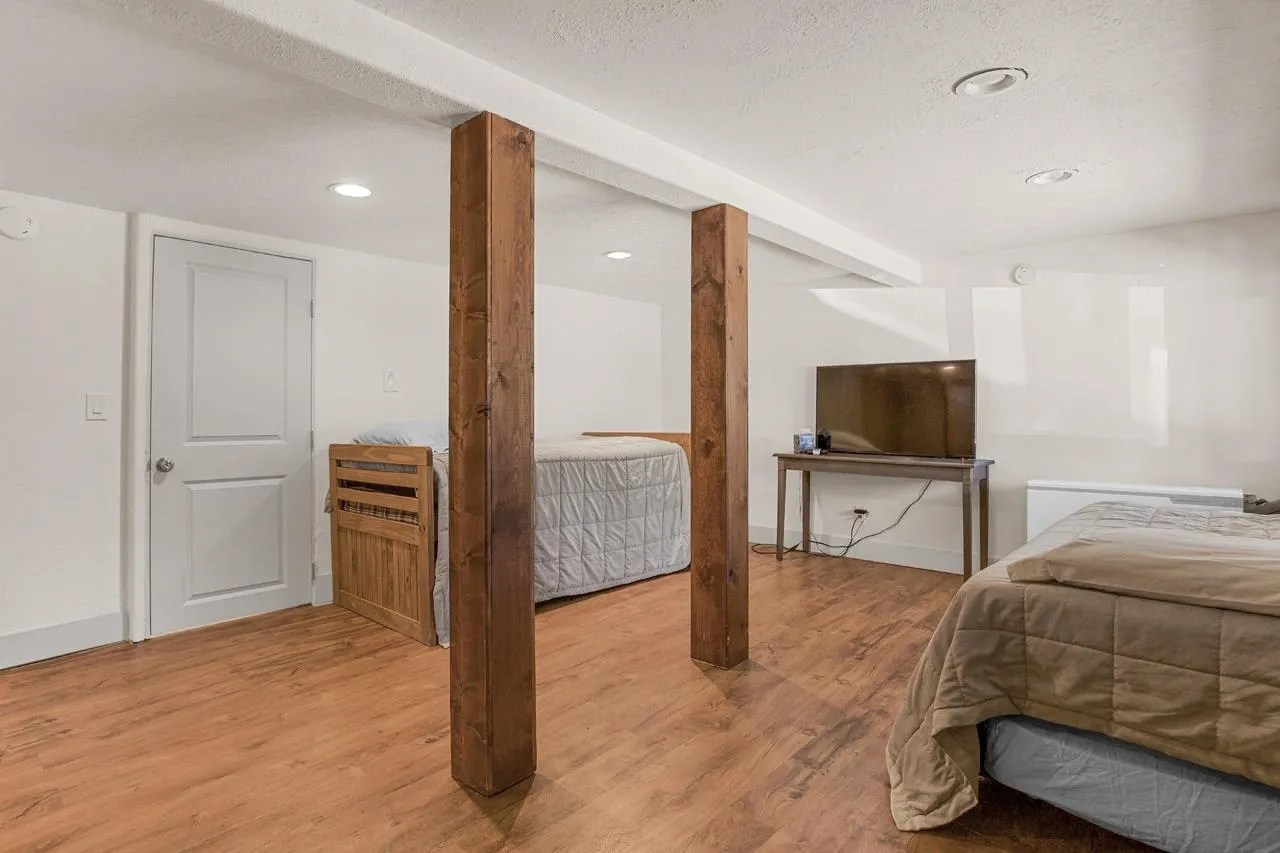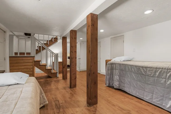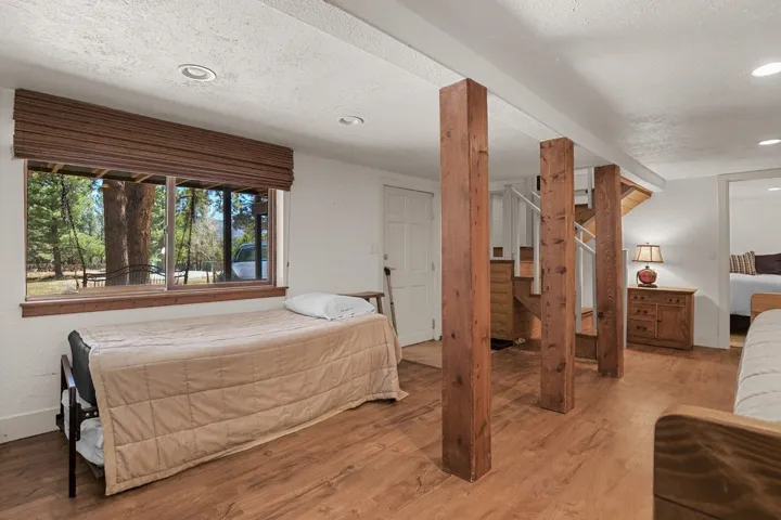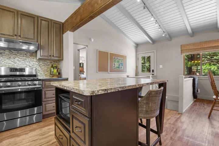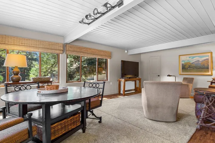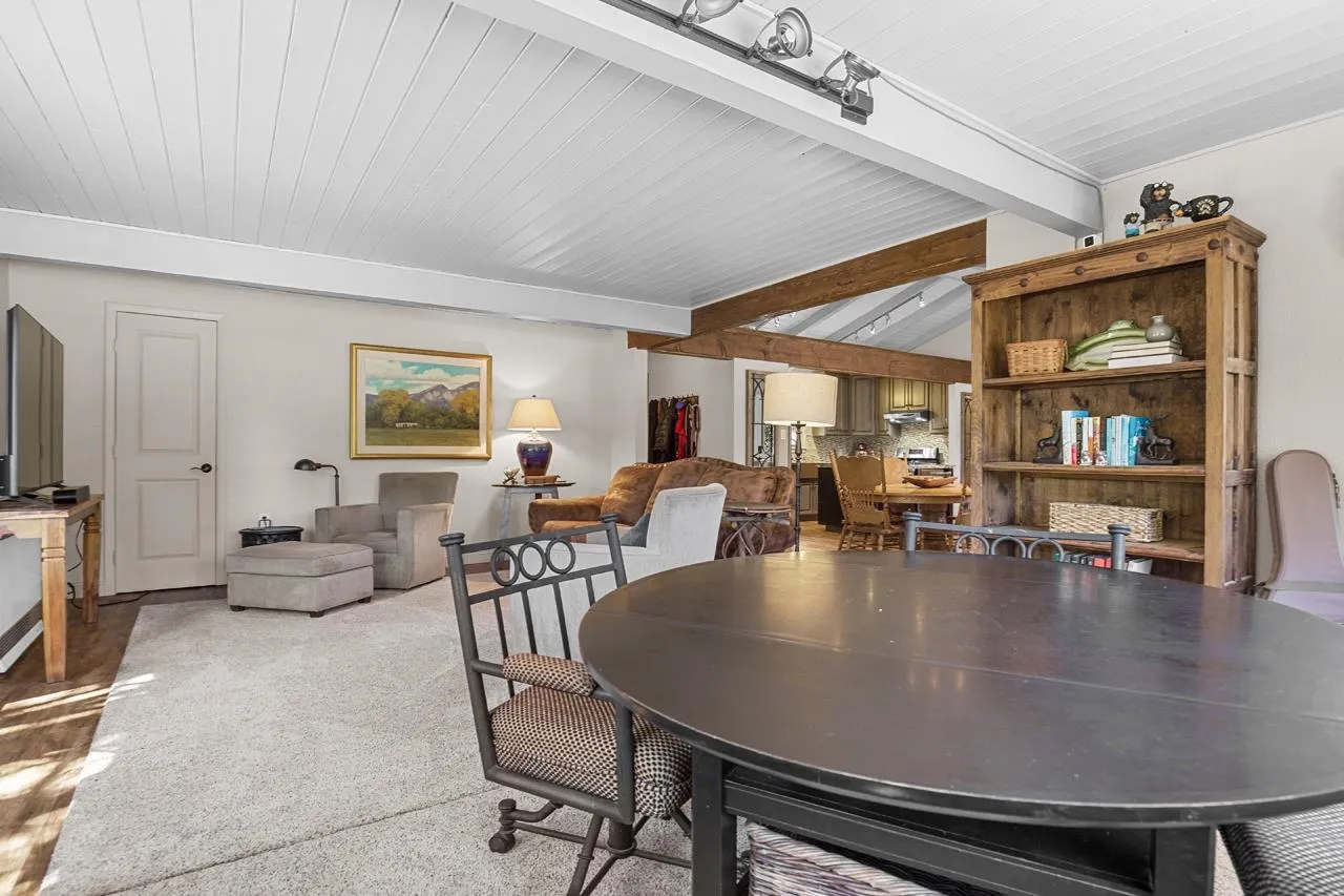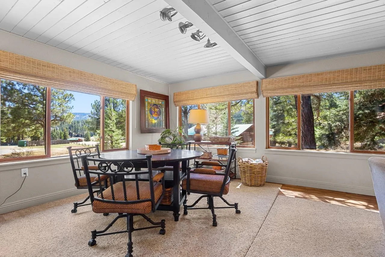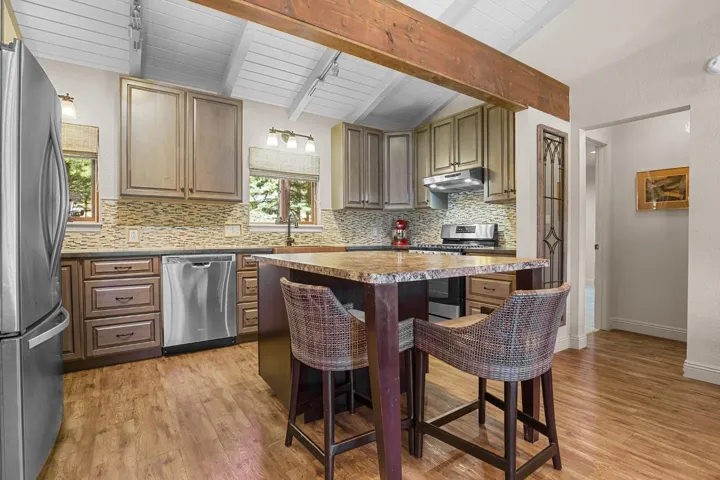 Mountain living meets modern comfort in this beautifully remodeled El Valle Escondido retreat set among towering pines. Nestled among mature trees, this 1,950 sq. ft. home offers the perfect blend of comfort, style, and year-round recreation. Featuring 2 bedrooms, 2 bathrooms, and a spacious bonus living area, the home is thoughtfully designed with the main living spaces upstairs to capture abundant natural light and scenic views overlooking the valley and clubhouse. Vaulted tongue-and-groove ceilings with exposed beams, expansive windows, and an open-concept layout create a bright and inviting atmosphere. The updated kitchen features quality cabinetry, stainless appliances, a large center island, and pantry ideal for entertaining and everyday living. A 2015 remodel brought updated kitchens, baths, flooring, and finishes throughout, while the exterior was enhanced with rich stained cedar siding for a true alpine feel. Multiple living areas including a generous lower-level bonus space provide flexibility for guests, recreation, or work-from-home use. Enjoy outdoor living on two trex decks expand living areas to offer privacy and a peaceful mountain setting. The rare double lot (0.56 acres) adds additional space and usability. Fully fenced latilla area perfect for pets. The attached 1-car double-deep garage offers ample room for storage, a vehicle, and/or workshop. The homeowners association provides community water, trash service, road maintenance, and access to outstanding amenities including a clubhouse, 9-hole golf course, stocked fishing ponds, and a seasonal swimming pool. Conveniently located between Taos and Angel Fire, this turnkey property is an ideal full-time residence or mountain getaway.