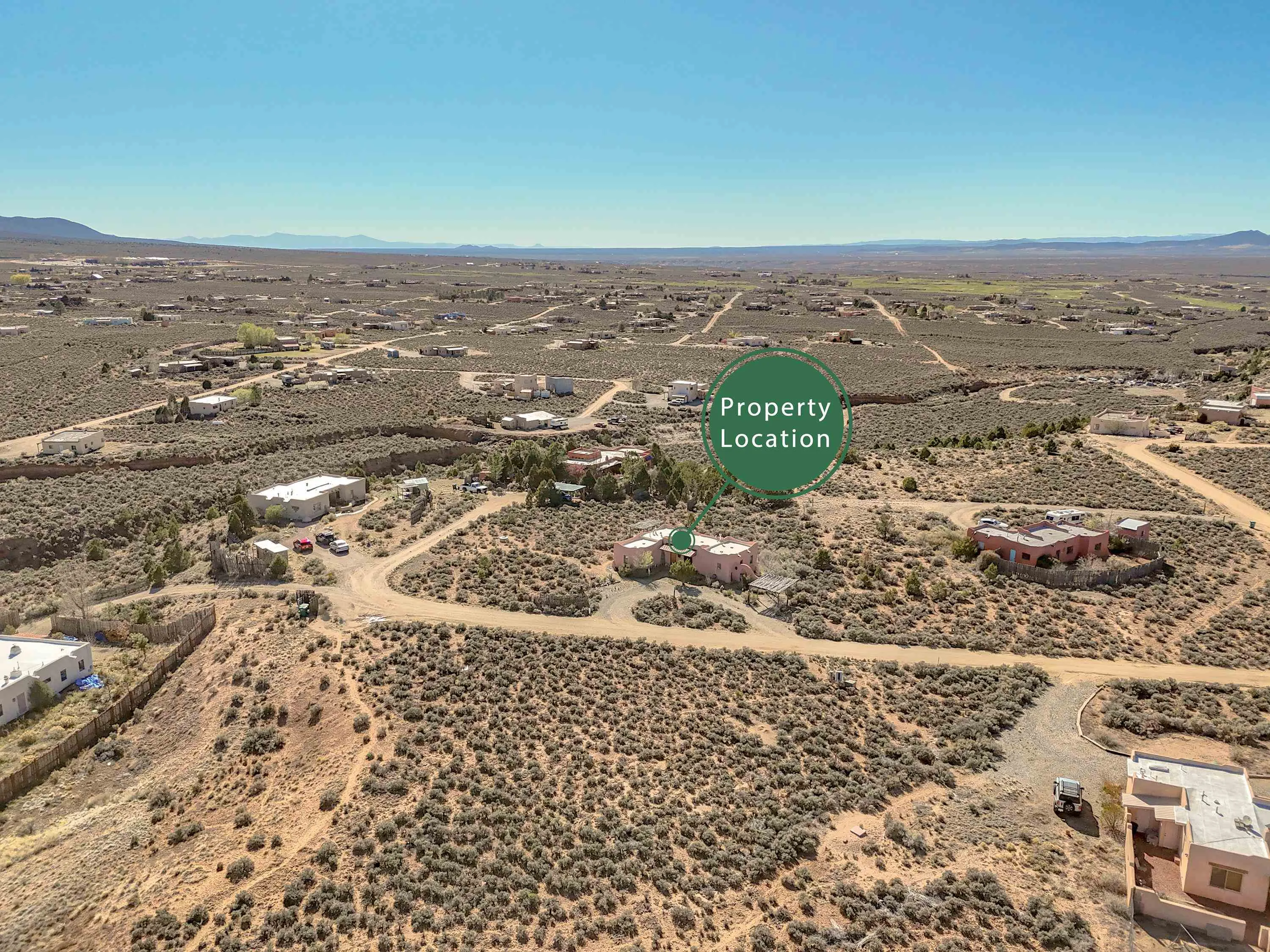 - Drive south on Paseo del Pueblo Sur, turnright on Cuchilla and go 1.2 miles to West Romero Road, turn left and go 1.1 miles( road curves left) to Calle Del Sol, turn right. Turn left down long drive and home is on the right.