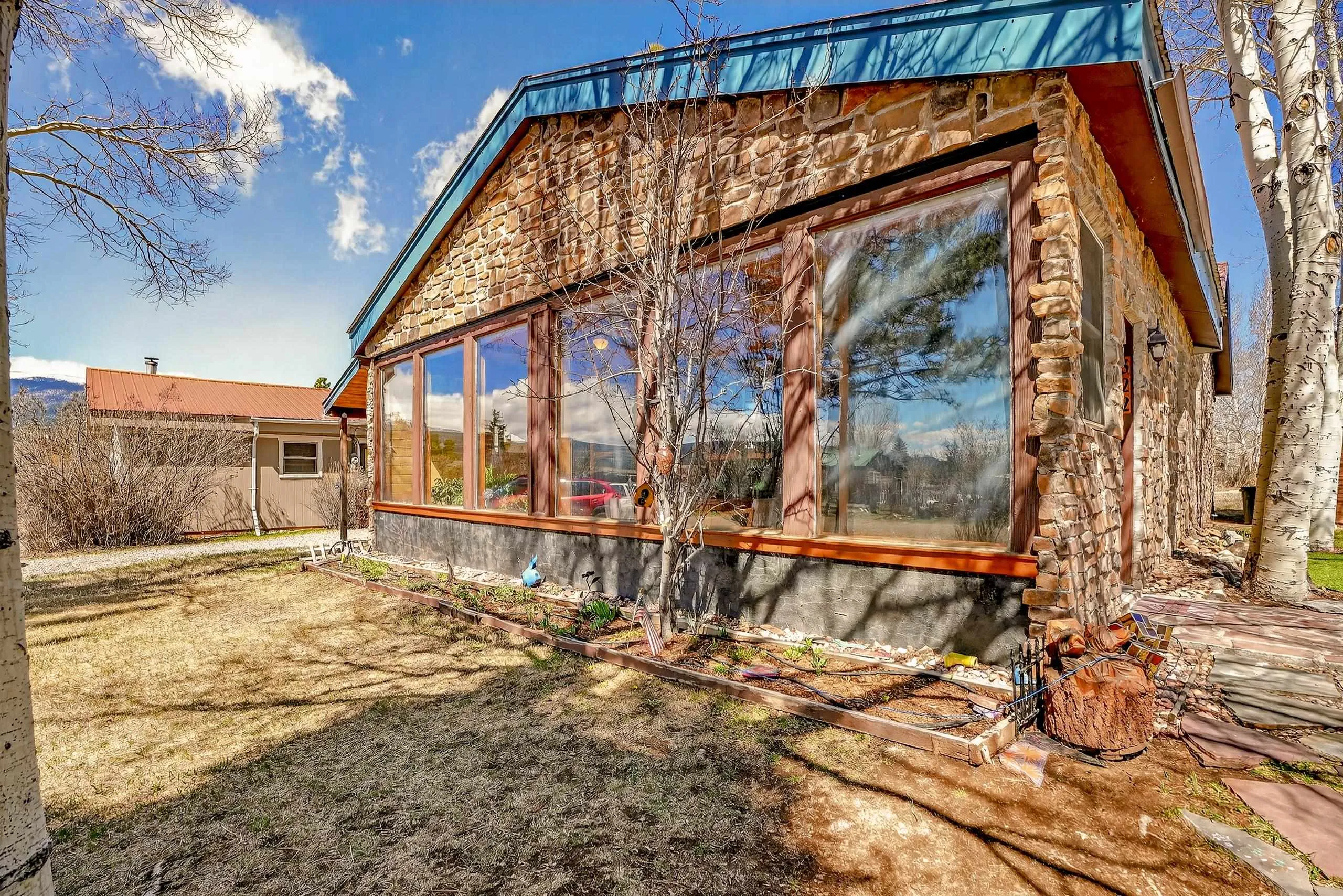 Nestled near the scenic beauty of Eagle Nest Lake, this cozy single-level home offers breathtaking views and peaceful mountain living. The home features three spacious bedrooms. Inside, you’ll find a warm and inviting living room with a convenient gas stove, a kitchen complete with real wood cabinets and countertops. A large sunroom with natural light which provides the ideal spot to relax while enjoying the surrounding landscape. Outside you’ll find a thoughtfully maintained yard including a lawn, garden space, and mature aspen trees that add both shade and charm. The property also includes a covered patio, a designated laundry room, and a storage shed for added functionality. With its distinctive custom rock exterior and serene setting, this home blends rustic character with modern comfort. Just minutes to Eagle Nest Lake and not to far from the historic town of Cimarron, Red River and Angel Fire Ski Resort.