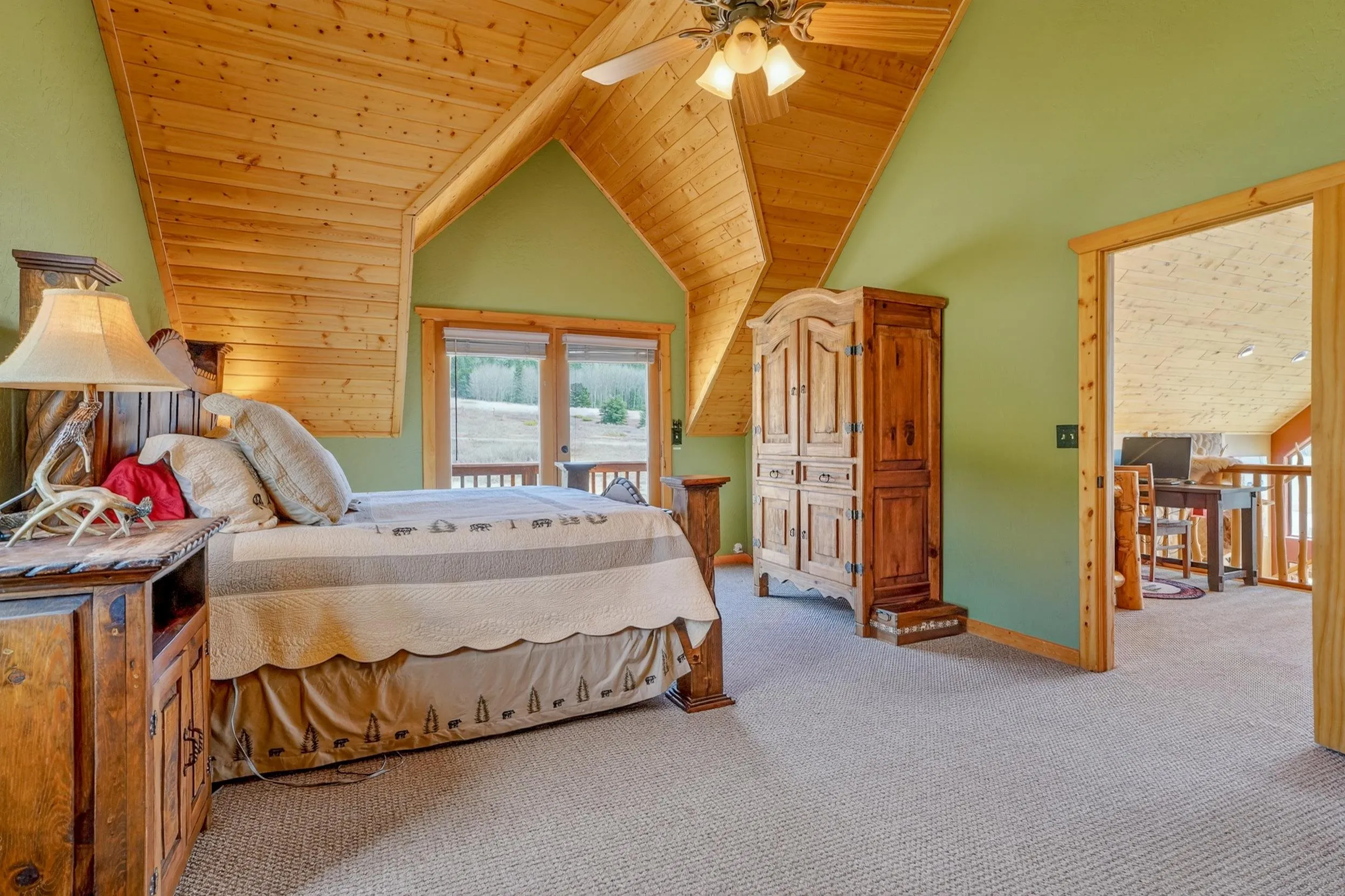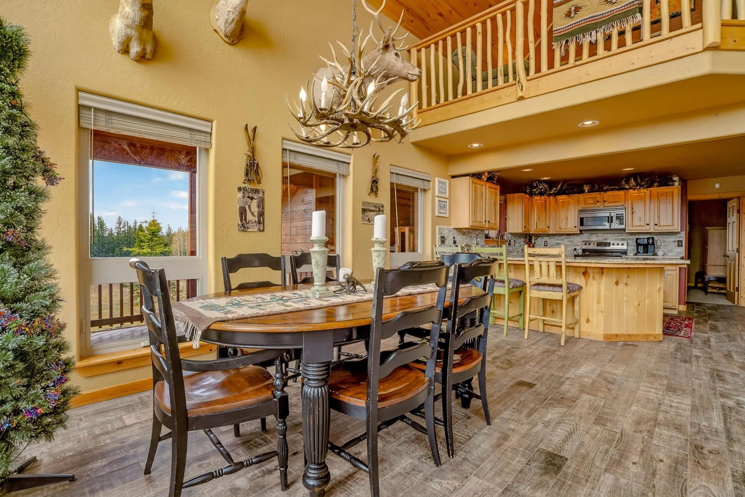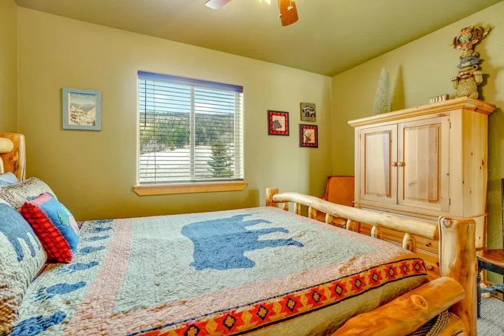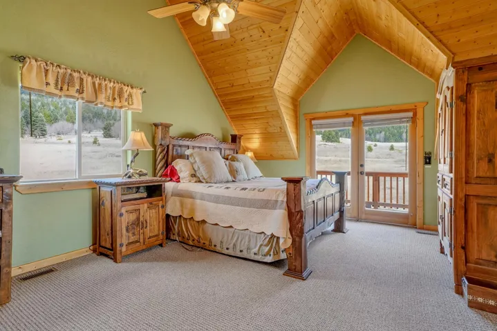 Pour a cuppa, get cozy in a deck chair and breathe in the mountain air and wide-open views as the elk saunter by. This well-maintained chalet sits on more than 2 acres that are flat enough to encourage outdoor play, fort building and snow-shoeing. Plus, there’s a greenbelt along the back of the lot! The outdoors comes inside with a beautiful wall of windows as you cozy up by the wood burning fireplace. The open kitchen with stainless appliances provides a great space for creating fun nights with friends and family. There are two bedrooms, a full bath and laundry on the main floor. The second level offers an office/bunk loft outside of the primary bedroom and bath. The upper bedroom has it’s own staircase to nature so you can sneak out and enjoy the stars.