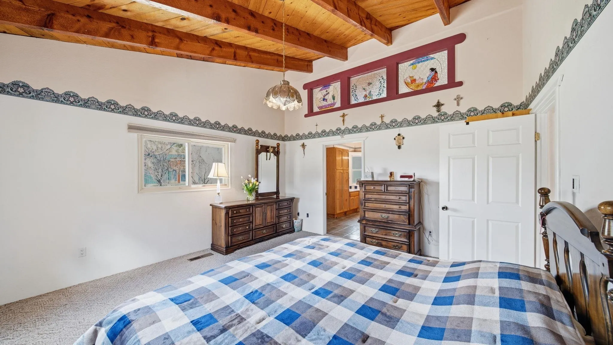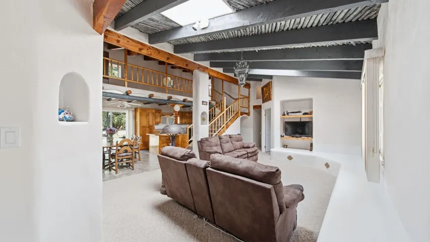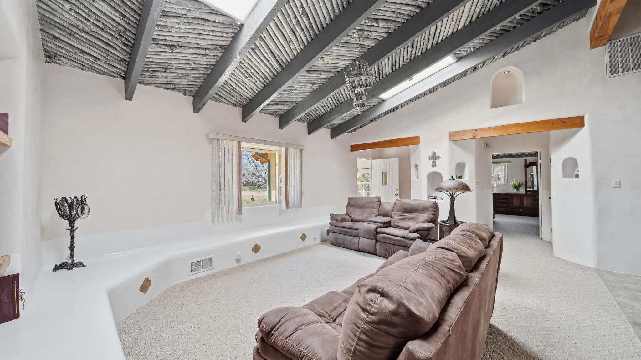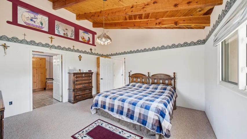 A Welcoming Family Legacy in the Questa Greenbelt. Perfectly positioned on 3.35 lush acres directly behind the Questa Eagle Rock fishing lake, this estate is the ultimate setting for a multi-generational family legacy. Its location near the pristine Cabresto Lake makes it a dream for families who love to fish, hike, and explore the outdoors together. Nestled in the foothills of the Sangre de Cristo Mountains, the property offers a front-row seat to spectacular vistas of Flag Mountain and Sentinel Peak, capturing the very best of our local high-country skyline. The expansive four-bedroom, three-bath two-story main house is designed for gathering, with vaulted ceilings and large windows that invite the beauty of the high desert indoors. The heart of the residence is anchored by beautiful hand-carved cabinetry, adding a touch of authentic Northern New Mexico heritage and warmth to your family dinners. To complement the main residence, a charming two-bedroom, one-bath guest house provides the perfect space for grandparents, adult children, or visiting friends to feel right at home. This property is a gateway to adventure and could serve as a premier base camp for the avid hunter, offering easy access to some of the finest big game hunting in Northern New Mexico. You are also just minutes from world-class skiing at Red River and Taos Ski Valley, and a short, scenic drive from neighboring Taos, where the vibrant artistic life and the dramatic soul of the Rio Grande Gorge offer endless inspiration. Whether you are hosting a summer barbecue after a day at the lake or gathering by the fireplace after a successful trek through the wilderness, this estate offers a rare chance to grow your family’s future surrounded by the natural beauty and deep culture of Questa.