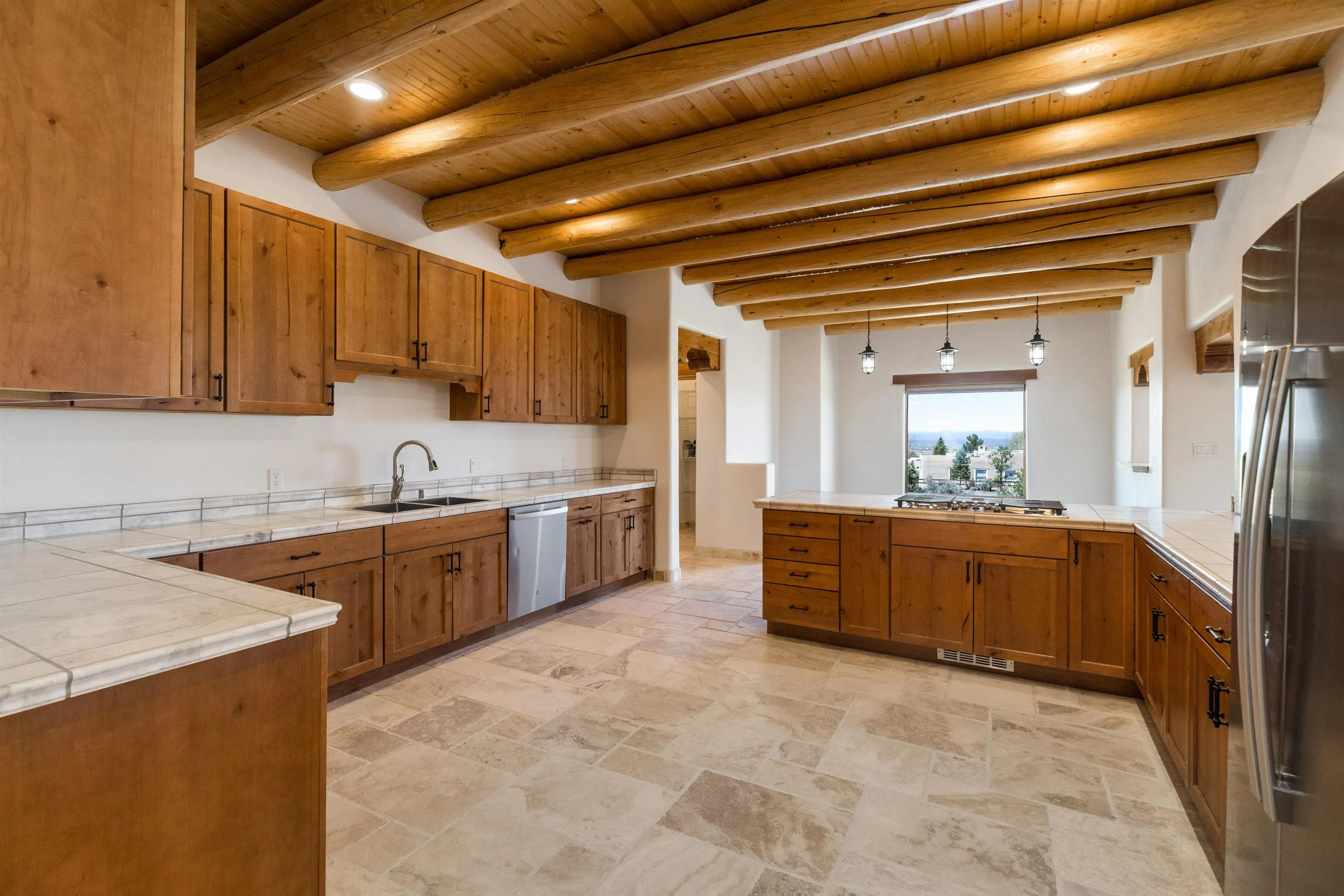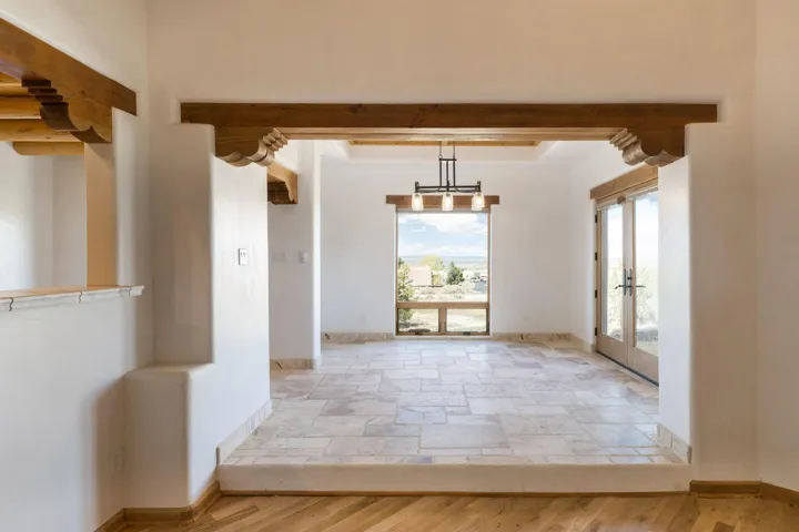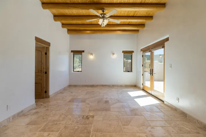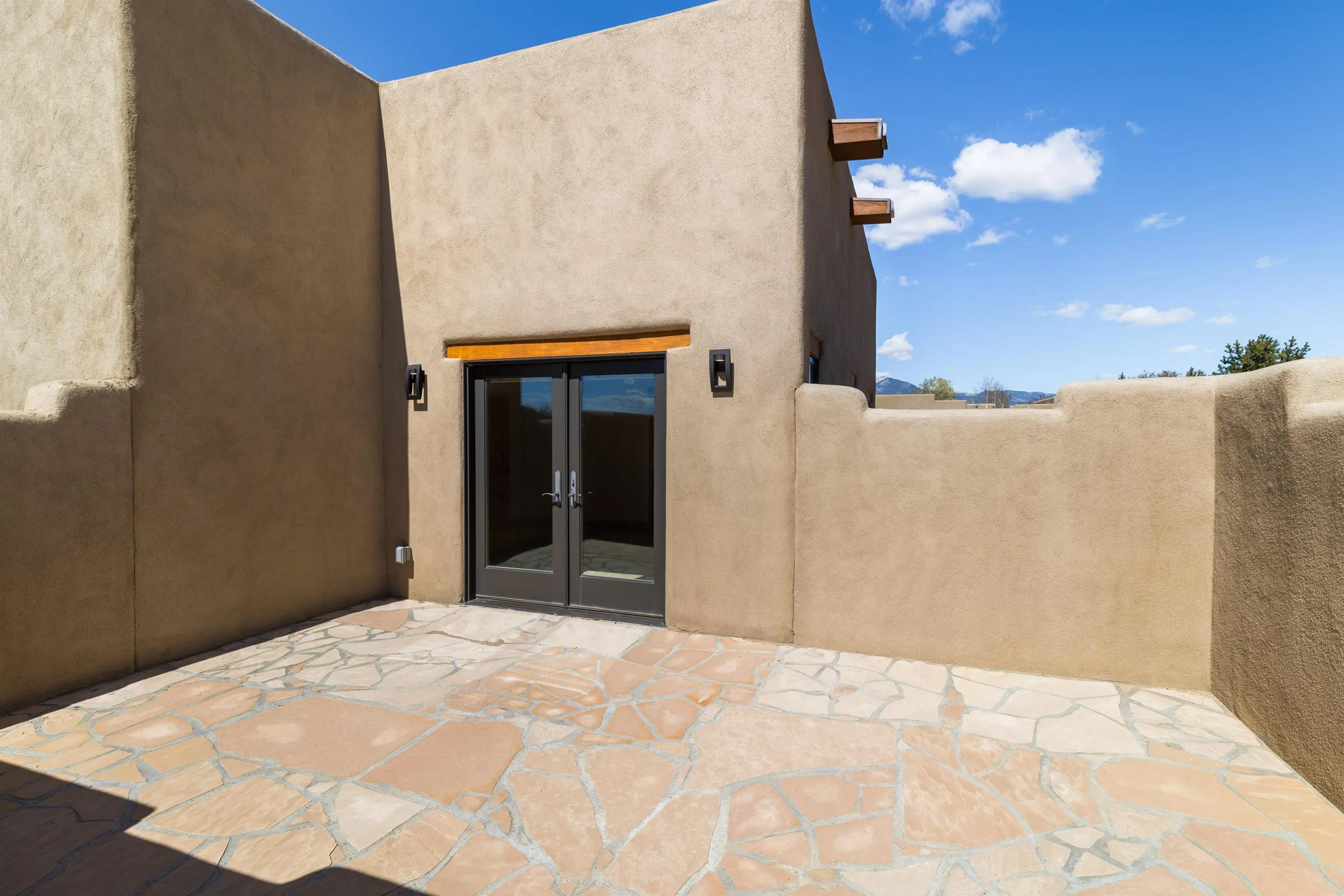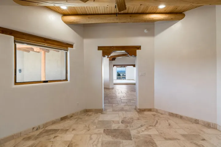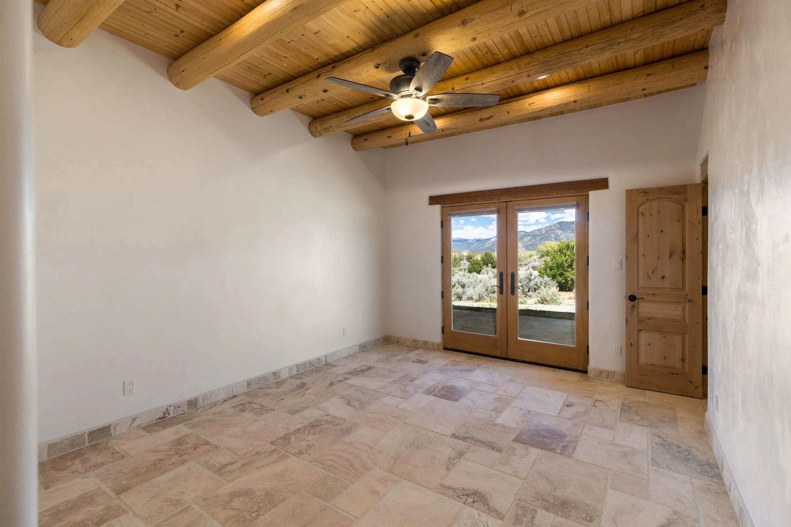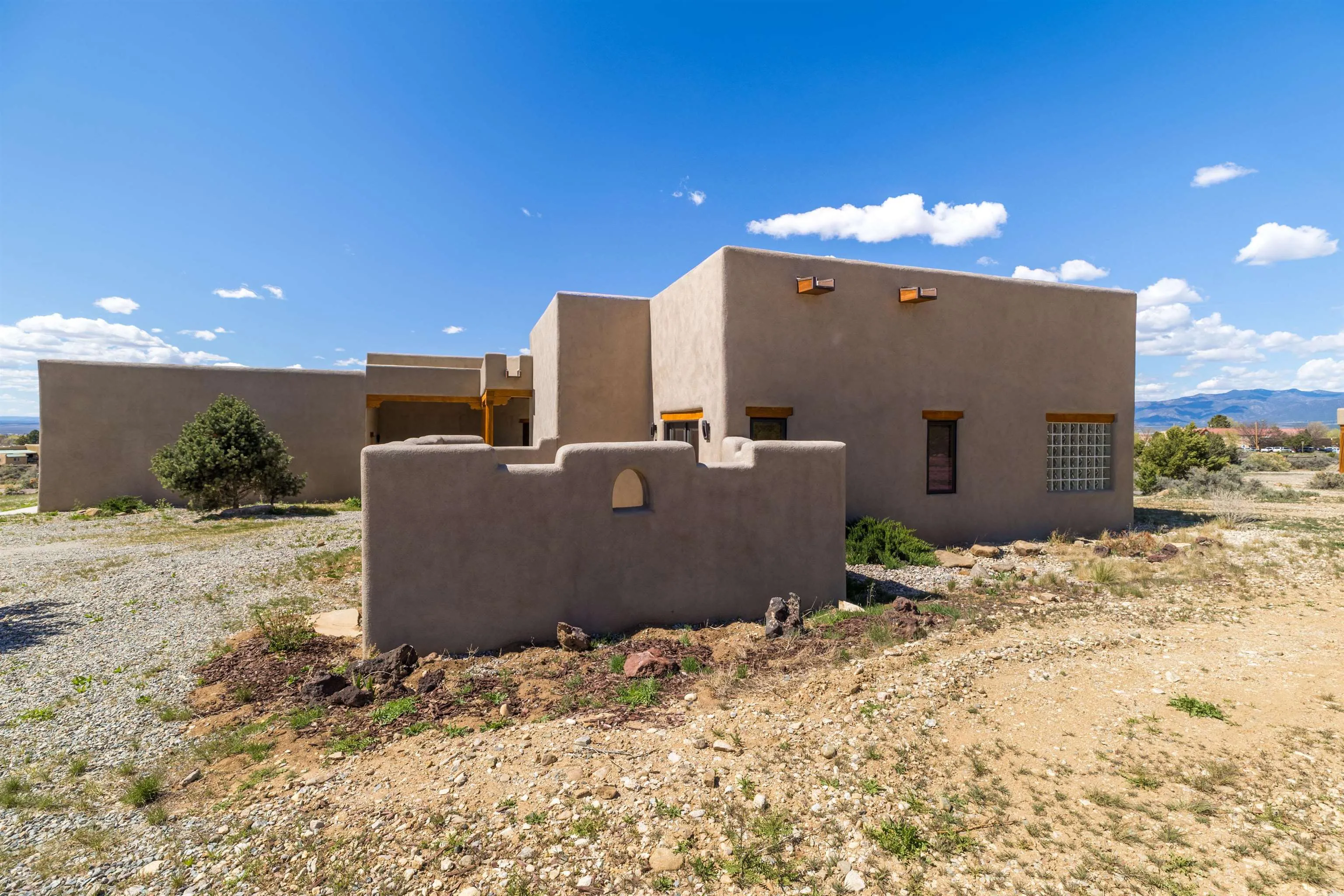 Welcome to your brand-new sanctuary blending authentic Southwestern design with refined modern touches at 1411 Maestas Road, a never-lived-in custom home set on a one-acre lot in the coveted Weimer neighborhood, offering immediate access to healthcare, shopping, and daily essentials while still feeling peacefully private. From the moment you step inside, you’ll feel the quality and care poured into every detail. Travertine natural stone flooring runs throughout the home, paired with rich oak hardwood floors in the great room and stunning viga and tongue-and-groove ceilings, hand-carved corbels, and custom wrought-iron railings that bring timeless Taos character to life. Radiant in-floor heating with three separate zones keeps the home cozy year-round with effortless efficiency. The kitchen invites connection and conversation with its open floor plan design, complete with quality finishes, stainless steel appliances, a gas cooktop, breakfast nook, full dining area, beautiful views, and a generous walk-in pantry for easy everyday living. With blinds already installed, this home is truly move-in ready. Thoughtfully designed with both beauty and flexibility in mind, the home offers two bedrooms, two full baths, and two half baths, along with a versatile flex space that can function as a home office or an additional bedroom depending on your needs. An oversized laundry room with front-load washer and dryer and a finished basement entertainment space with egress and a half bath provide additional comfort and adaptability…ideal for guests, movie nights, or a creative studio. Both bedrooms feature direct outdoor access. The primary suite is a peaceful retreat with a private courtyard, a travertine walk-in shower, an oversized soaking tub, and a spacious walk-in closet. Step outside and take in sweeping Taos Mountain views from the wraparound flagstone patio, offering multiple spaces to relax, dine, or entertain while enjoying the natural surroundings. An attached two-car garage adds everyday convenience. The Dos Arroyos Walking Trail is just down the driveway and offers scenic mountain views perfect for a short walk or hike. Ideally located just minutes from town amenities, approximately 5 miles from Taos Plaza and 30 miles from Taos Ski Valley. A home where timeless Taos design meets modern luxury, ready to welcome its very first owner.