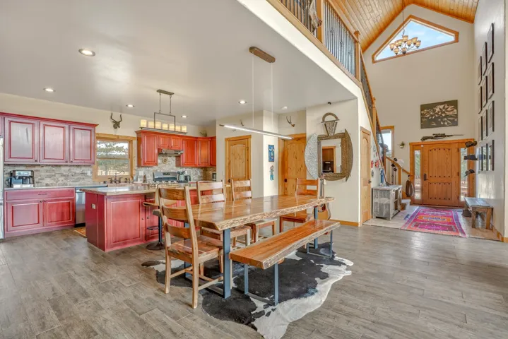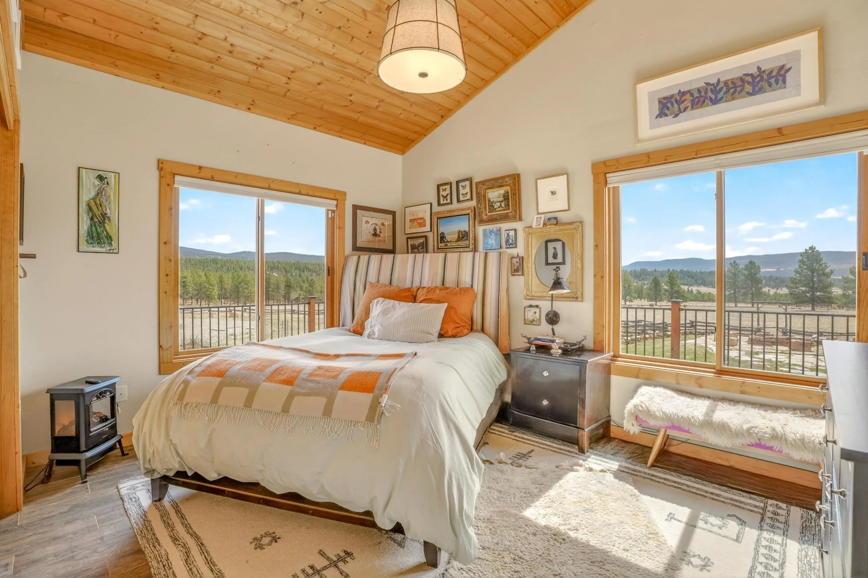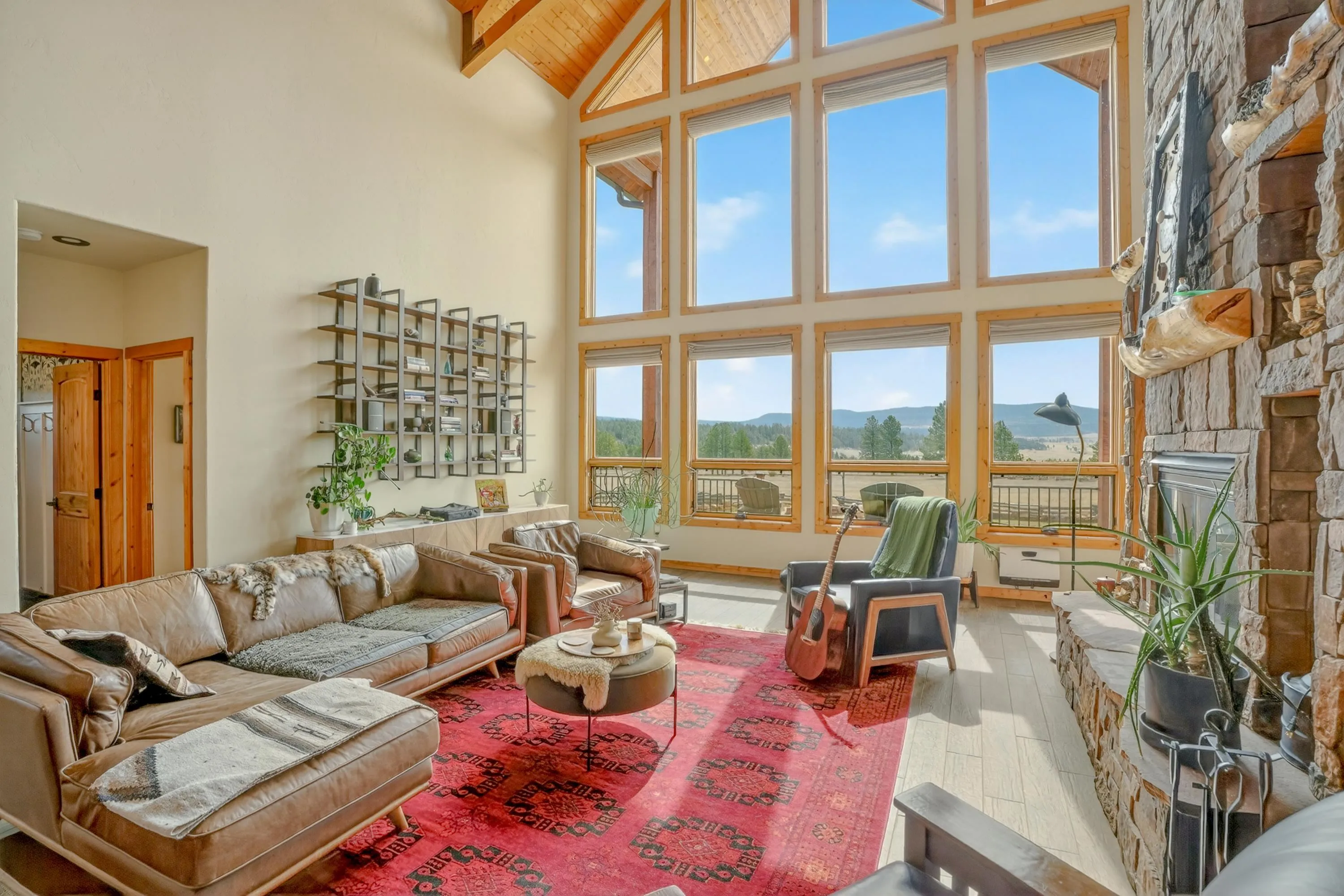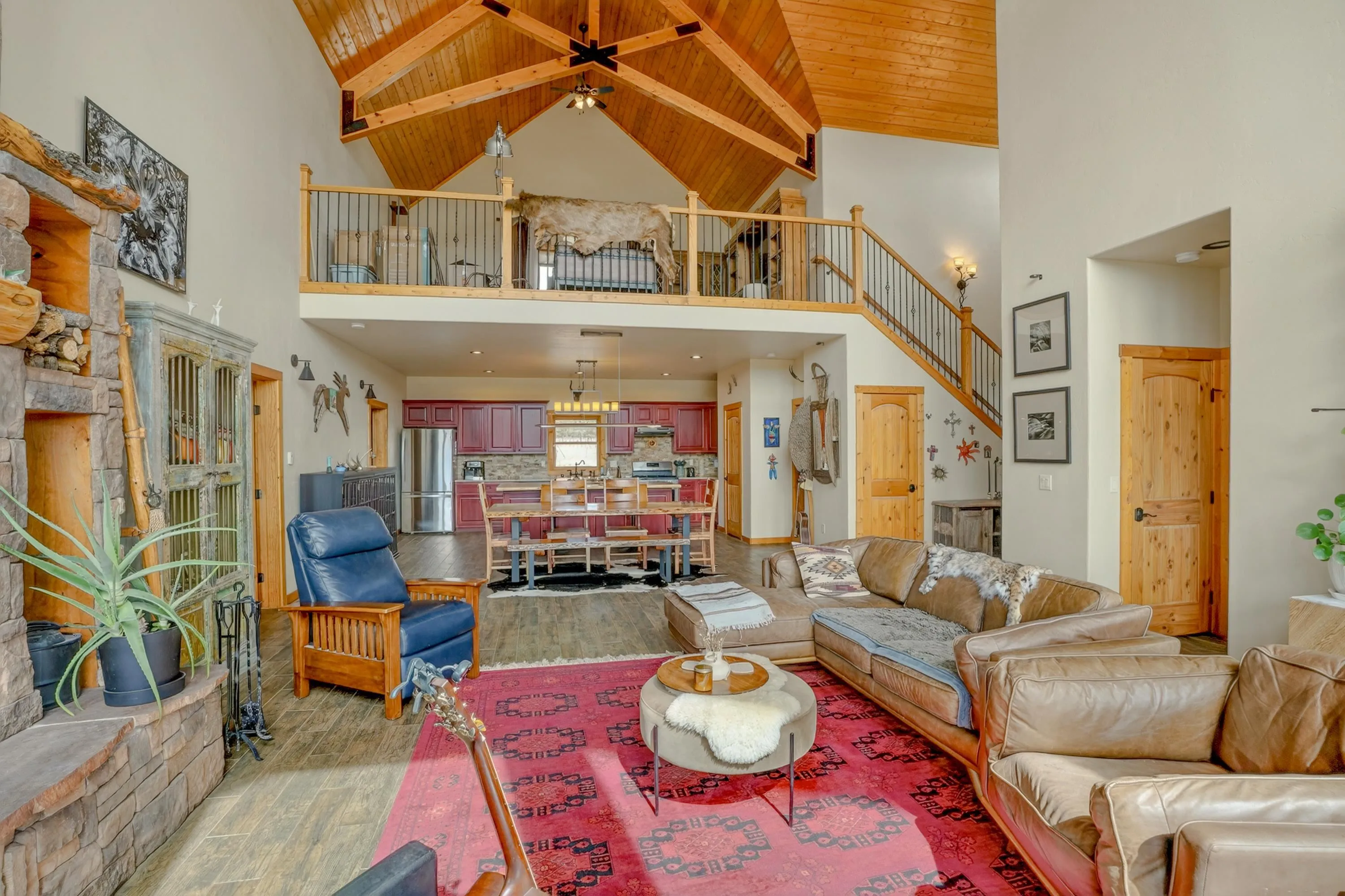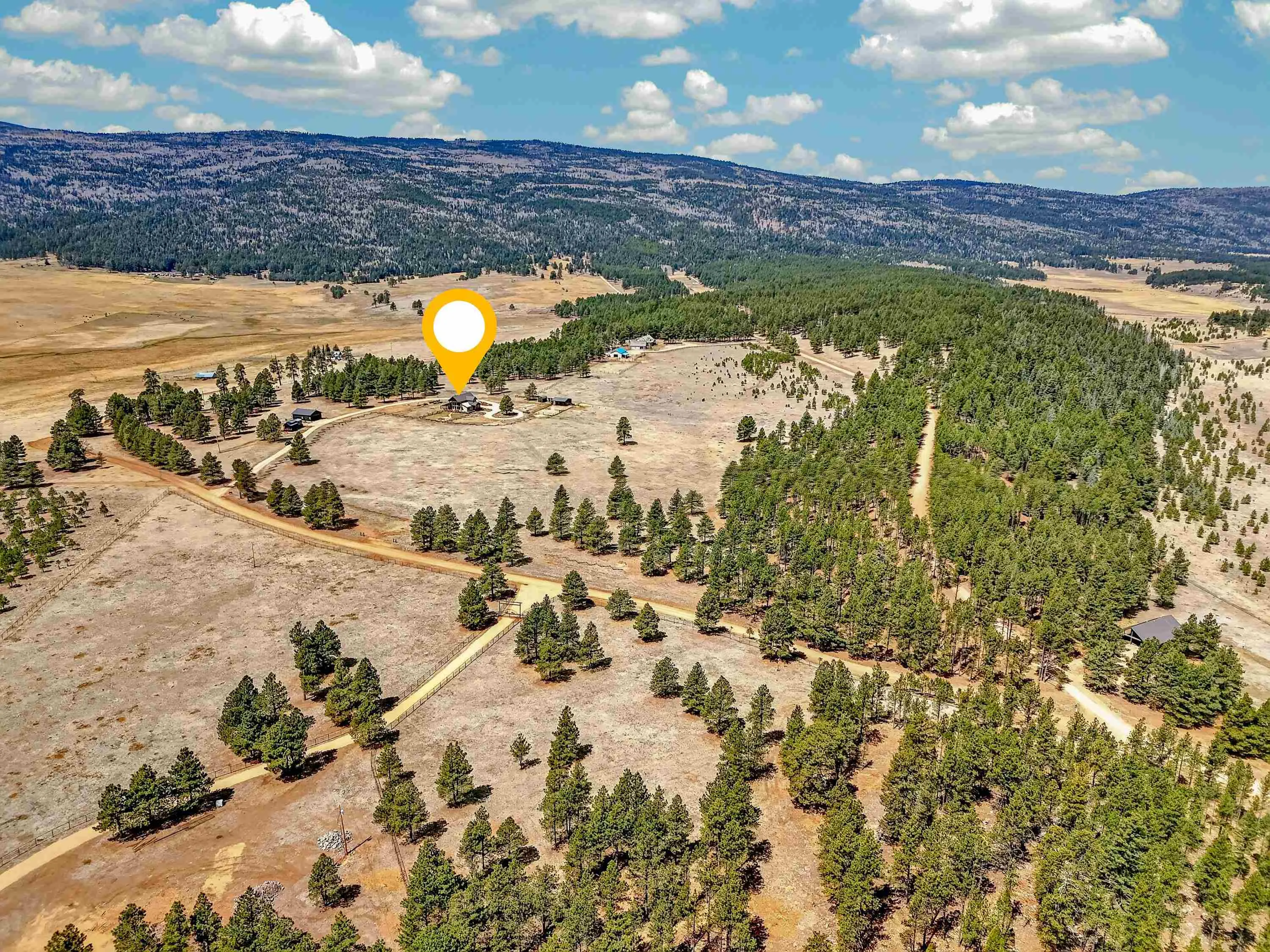 23 Acre Horse Property with Custom Home & Stunning Views Enjoy the perfect blend of mountain living and equestrian functionality just minutes from Angel Fire Resort. Set on 23 fully fenced, usable acres, this thoughtfully designed property offers privacy, open space with sweeping valley and mountain views—ideal for horse owners, outdoor enthusiasts or anyone seeking a peaceful year-round retreat. Entering through the handcrafted timber ranch gate and following the improved private driveway, you’ll find a beautiful custom-built home. Inside, travertine tile with marble inlay and in-floor radiant heat create a warm and inviting first impression. The open-concept living, kitchen and dining areas are filled with natural light from a dramatic wall of windows and anchored by a massive stone fireplace. Soaring 30-foot ceilings lead to a loft with expansive views, adding to the home’s spacious feel. The kitchen is both functional and refined, featuring Kenmore Elite appliances, a copper farmhouse sink, granite countertops, wormy maple accents and custom cabinetry. All three bedrooms are conveniently located on the main level, including a spacious primary suite with French doors opening to a covered deck. The ensuite bath offers a clawfoot soaking tub, walk-in shower and walk-in closet. The oversized 2-car garage also features in-floor radiant heat. Designed for equestrian use, the property is a fully equipped horse setup with steel pipe fencing, two 50’x50’ paddocks, cross-fenced pastures and hotwire fencing throughout. The 15’x35’ shed-row barn includes adjustable stalls (1–3), a Dutch-door tack and feed room with heat, on-demand propane hot water, utility sink, and electricity inside and out. A 15’x35’ overhang provides additional shelter, complemented by a hay barn with loft, water lines, electric access for trough heaters and a designated gated manure composting area. Additional property features include a 1,200 sq ft workshop with loft, water, and electricity, a dedicated RV pad with 30-amp service and multiple outbuildings offering flexibility for storage, hobbies, or future expansion. A newly added 2025 tiny house casita (1 bedroom, 1 bath plus loft) includes its own deck, outdoor fireplace, separate septic, electric, water, and fiber optic internet—ideal for guests or potential rental use. Recent upgrades include a new Generac whole-home generator (2025) connected to an owned 10,000-gallon underground propane tank, fire-wise tree thinning, new gutters and snow breaks, exterior re-staining, an updated laundry room, and extensive landscaping with native plants, drip irrigation, stone walkways and natural boulder accents. Offered fully furnished with no HOA or resort dues. This is a rare opportunity to own a turn key equestrian mountain property offering space, privacy, and exceptional versatility.