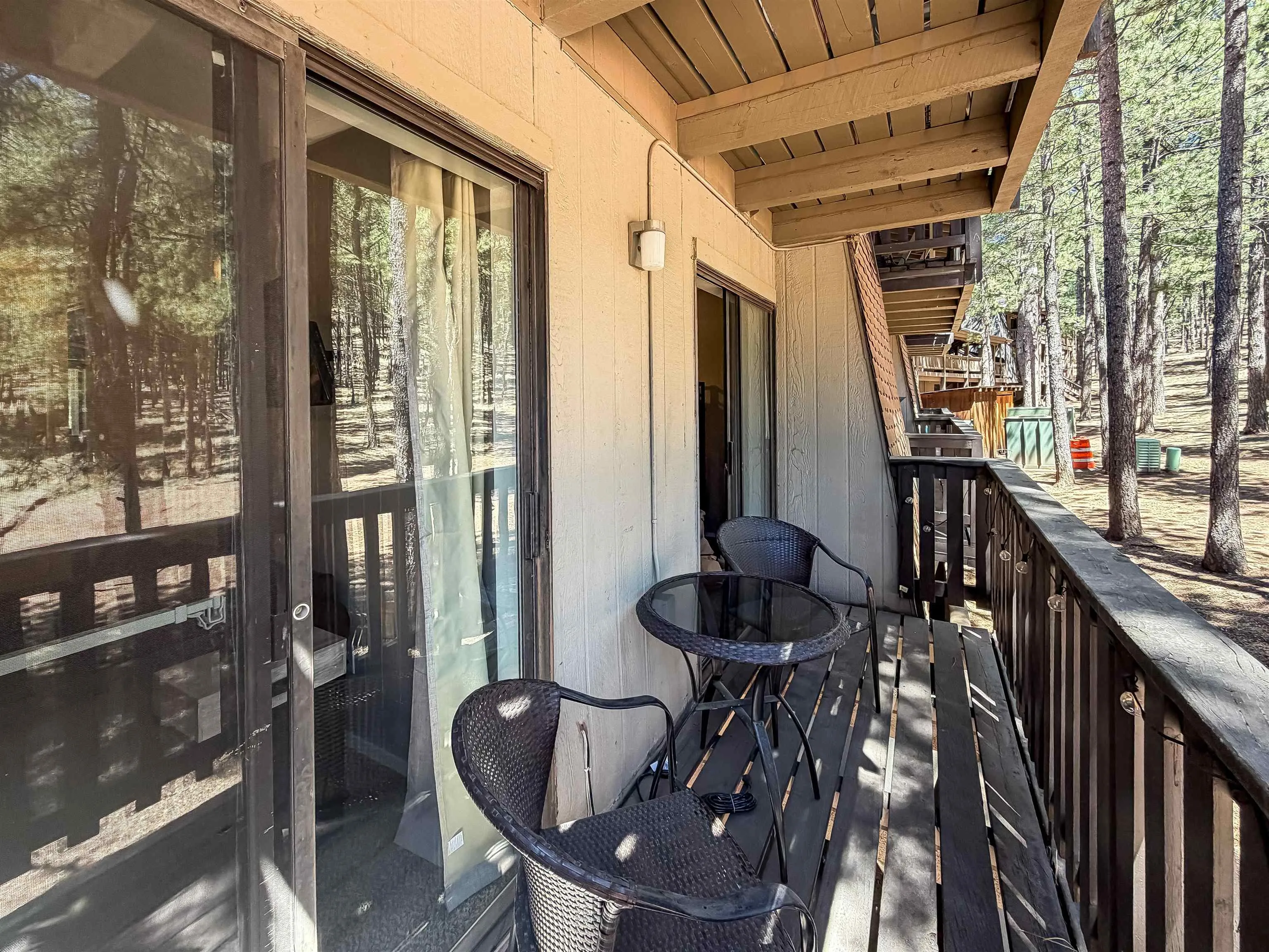 Come and discover the perfect mountain getaway! Centrally located yet tucked away in a private, wooded setting, this updated end-unit condo is an ideal choice for a cozy getaway or a savvy investment. Inside, the atmosphere is clean, bright, and inviting, featuring a cozy fireplace that serves as the heart of the living space. An additional deck off of the primary bedrooms offers the perfect vantage point to start your day taking in the surrounding pines and crisp mountain air. Enjoy all four seasons with the slopes just a short drive or walk from your front door. Winter enthusiasts will love the easy access to skiing and snowboarding, while nearby trails offer serene snowshoeing, sledding, and cross-country skiing just a short drive away. As the snow melts, the mountain transforms into a premier mountain bike park. Hop on your bike and ride straight to the lift. Beyond the trails, summer days are filled with rounds at Angel Fire Resort’s PGA rated 18-hole golf course, pickleball, tennis, hiking, and fishing. With no exclusions, this condo is ready to welcome you in and be the base for your outdoor adventures. Don’t miss out on this great opportunity! Call us today to schedule a showing.