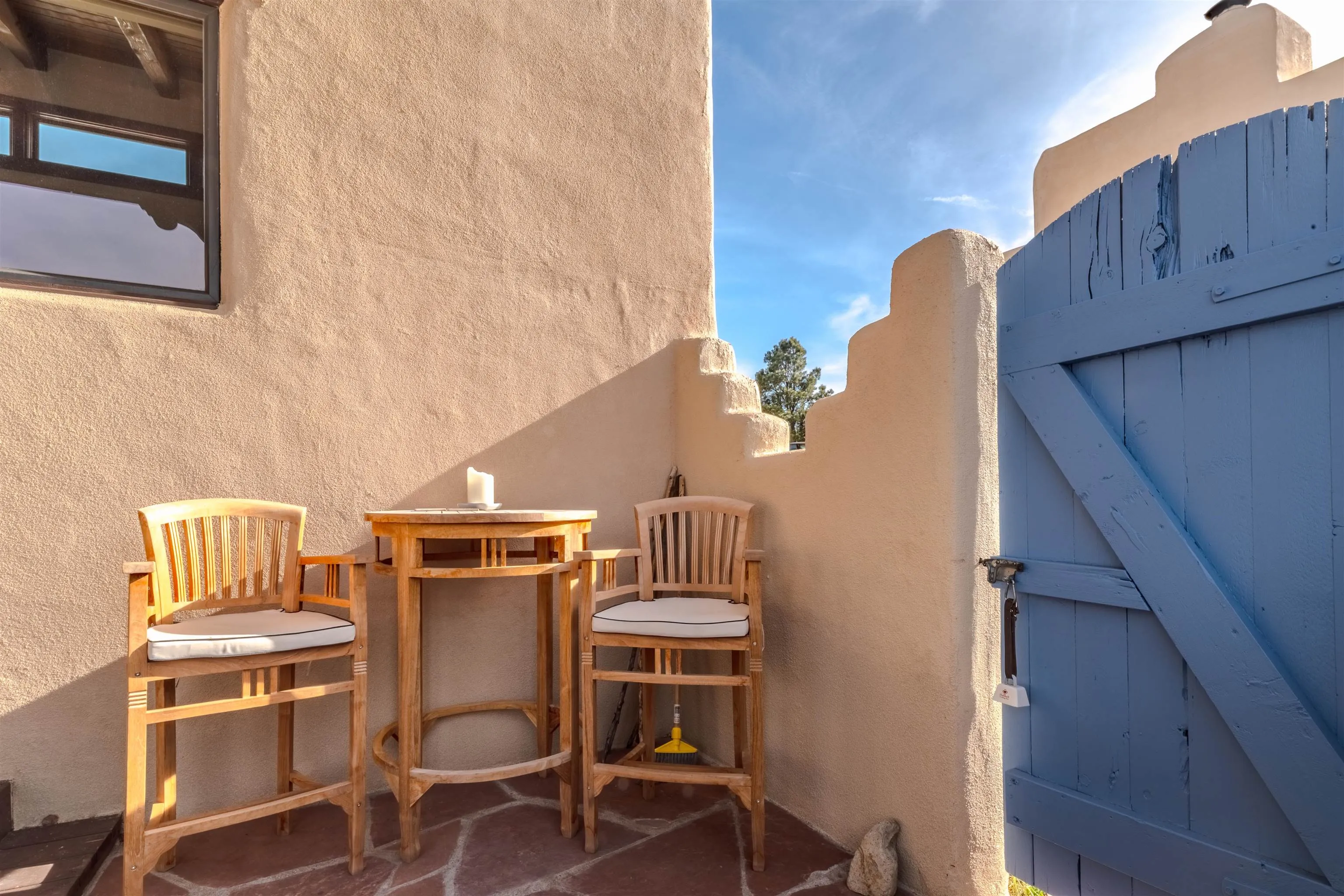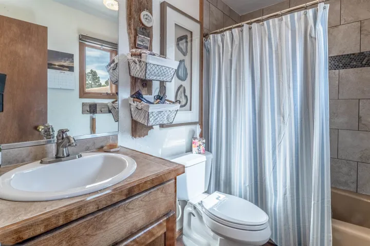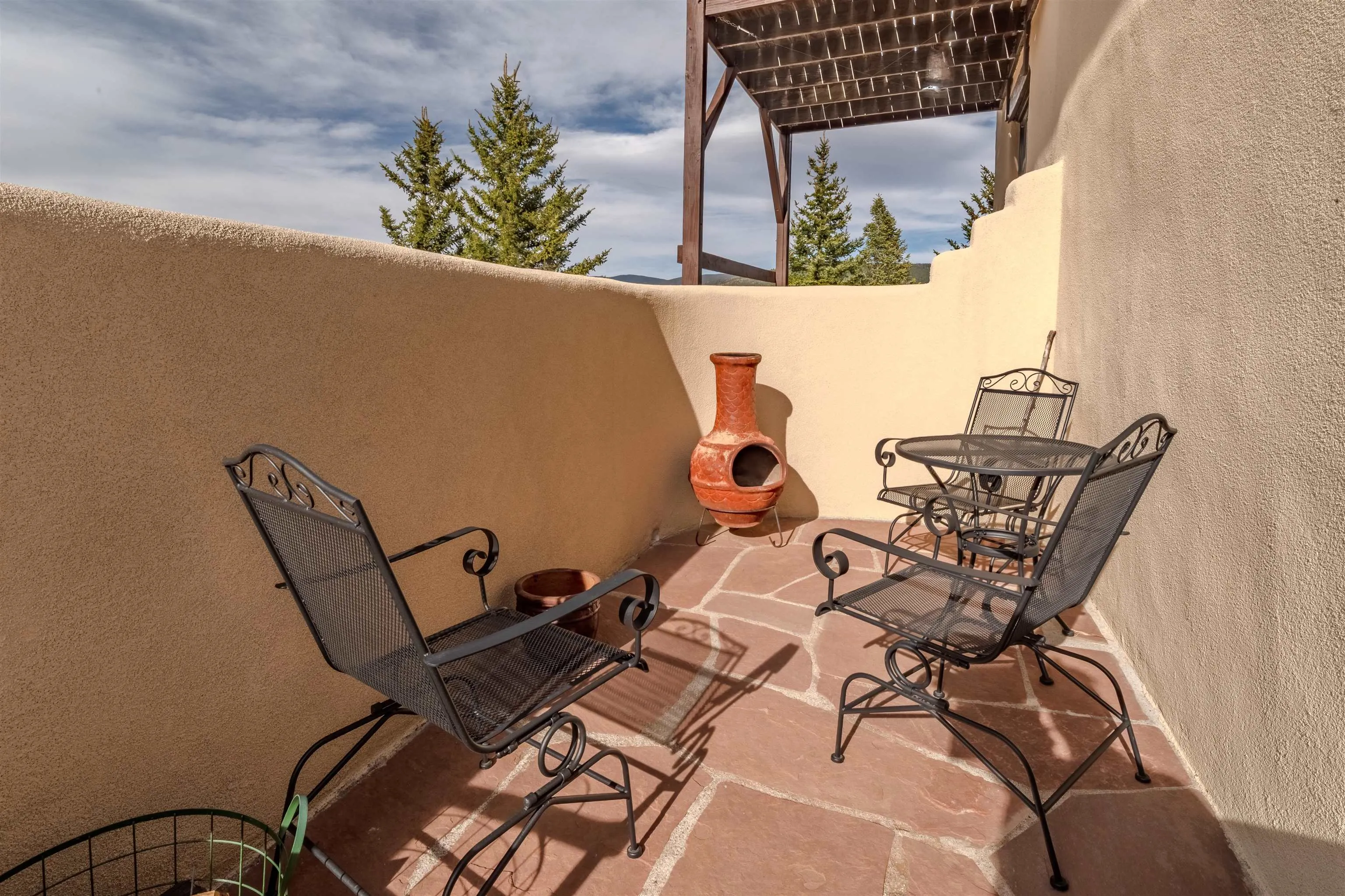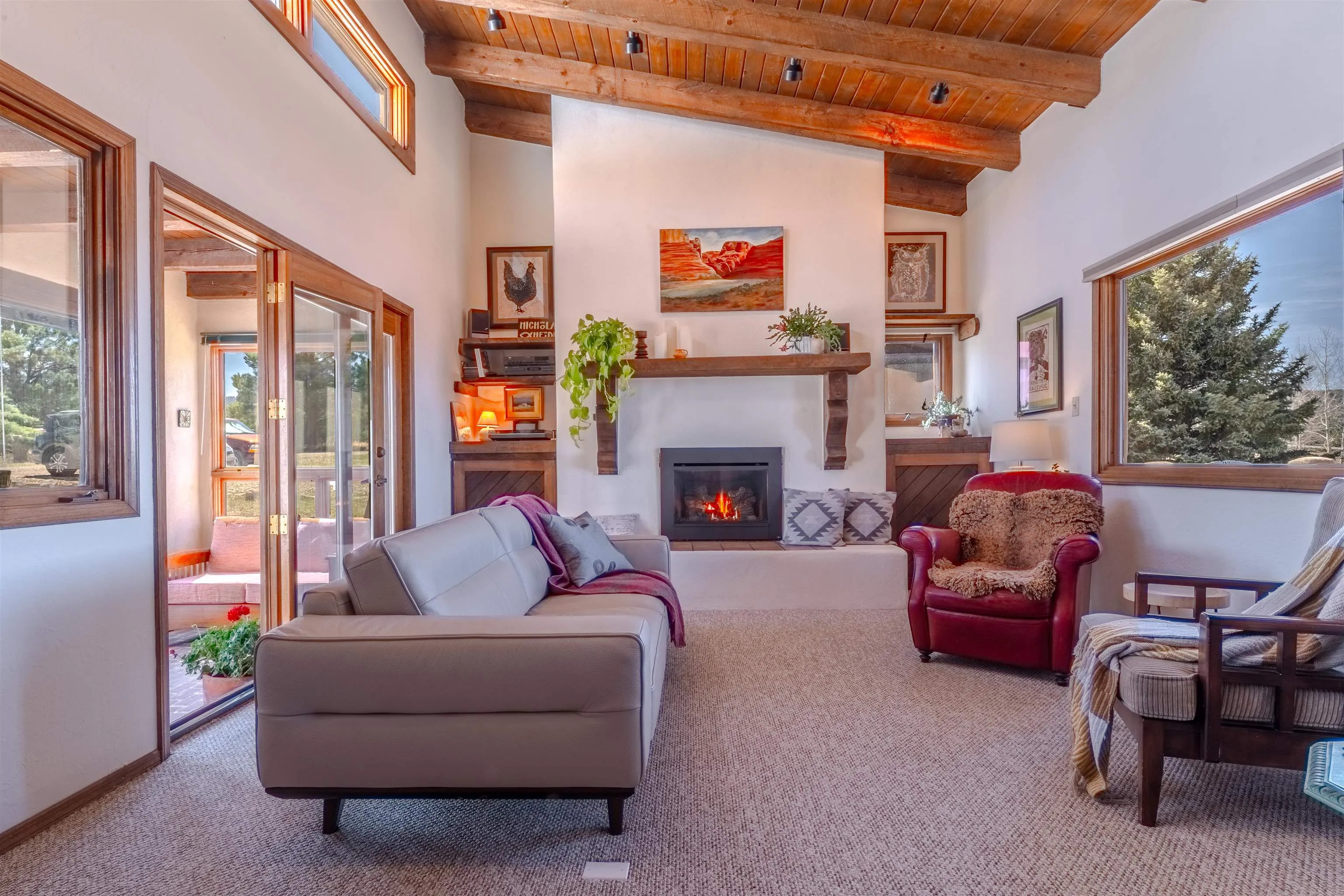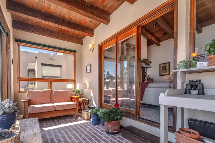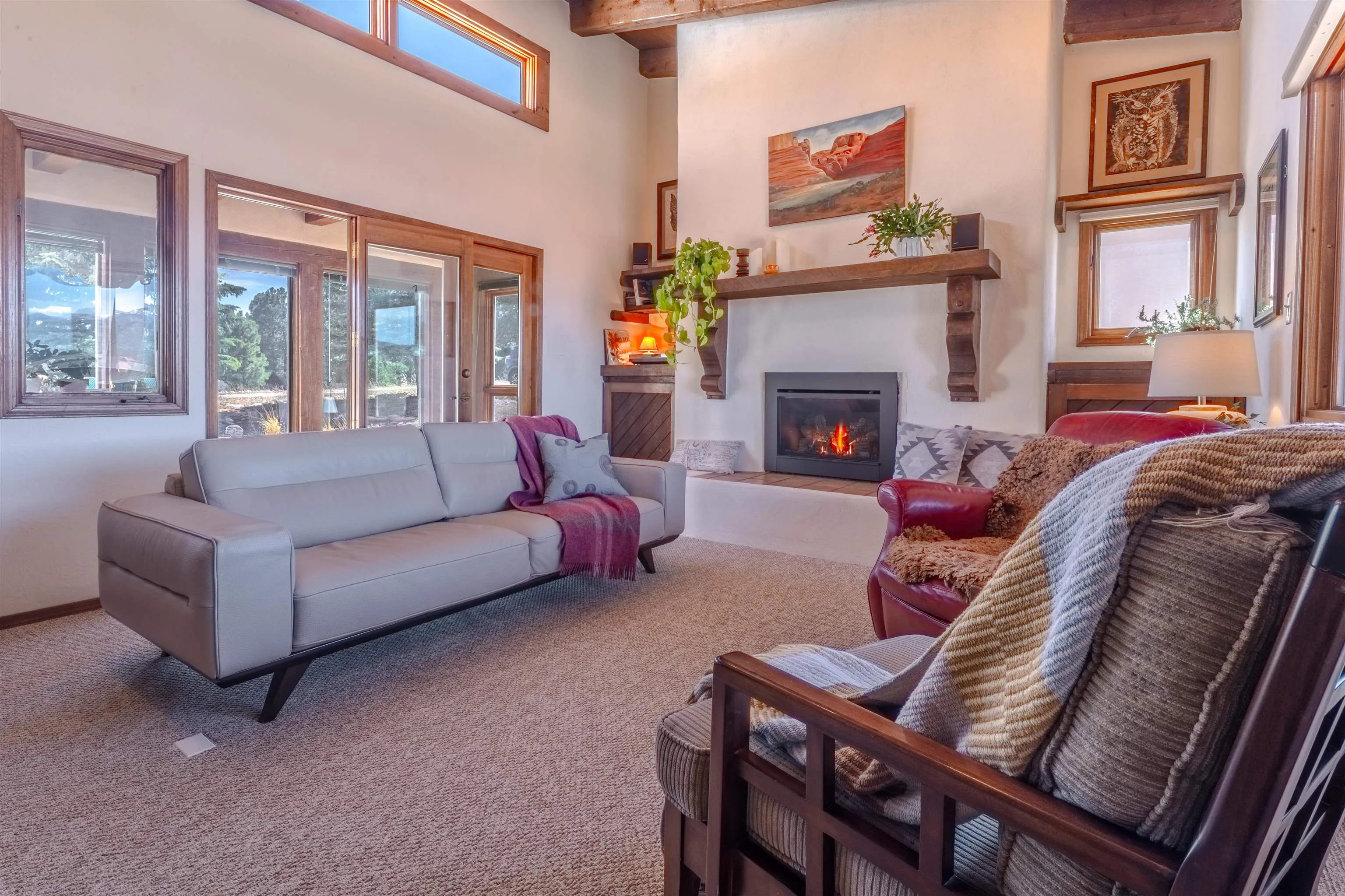Tucked into the peaceful beauty of Angel Fire, 38 Sage Lane #2 feels less like a condo and more like a mountain townhome retreat—inviting, comfortable, and full of character. Located near the conveniences and adventures of Angel Fire Resort, yet outside the resort boundary, this home offers quiet mountain living without required annual membership dues. Inside, warm wood-look tile floors, classic vigas, and a light-filled sunroom create a true sense of place, while large windows frame beautiful views toward Wheeler Peak. The open living area flows seamlessly into the kitchen and dining space, making the home ideal for relaxed mornings, cozy evenings, and time shared with family and friends. Recent upgrades bring both style and peace of mind, including a new standing seam metal roof, new washer and dryer, and a new refrigerator. The fireplace features a recently added Lopi insert, complete with thermostat and remote, offering effortless warmth on winter days. Outside, a newly added stone patio and brand-new three-person hot tub create a special place to breathe in the mountain air and enjoy those signature Angel Fire skies. The thoughtful layout includes a spacious main-level guest bedroom and full bath, while the upstairs primary suite offers an ensuite bath with a recently re-tiled shower/tub combo and a charming bonus alcove—perfect for an office, creative space, or additional guests. With the Sage greenbelt trail beginning just outside the front door and connecting to miles of hiking and biking trails, this home is perfectly positioned for the Angel Fire lifestyle. Offered unfurnished and ready for your own art, style, and furnishings, Unit 2 at 38 Sage Lane is a rare find—spacious, comfortable, and full of mountain charm.