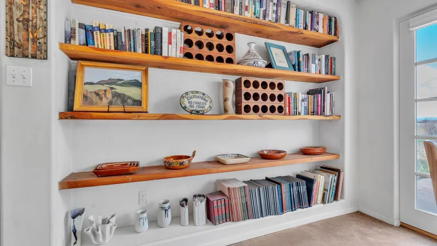 Nestled in the heart of Arroyo Seco, this expansive estate featuring a beautifully designed two-bedroom main residence and a charming two-bedroom casita offers a refined blend of modern elegance and timeless Northern New Mexico allure. Inside, the home unfolds into a light-filled living space defined by soaring vaulted ceilings and exposed wood beams that create both architectural drama and warmth. The elevated ceilingline enhances volume and airiness, while the natural timber detailing brings a grounded, mountain-modern sophistication. At the center, a statement fireplace inspired by the French countryside anchors the room, offering an inviting focal point for quiet evenings and elevated entertaining alike. The open-concept layout flows effortlessly into a thoughtfully designed kitchen, where a custom statement hood and distinctive tilework add an artistic, high-end touch. Expansive windows frame panoramic mountain views, creating a seamless connection between indoor living and the surrounding landscape. Designed for both comfort and efficiency, the home features modern concrete radiant heated flooring throughout. Along the property boundary, there is a traditional acequia. Outside you can experience breathtaking 360-degree views of surrounding peaks and valleys, all while enjoying the privacy of a quiet dead-end road setting. A two-car garage and a recently installed new roof complete the offering, delivering both convenience and peace of mind. A truly rare and elevated retreat in the enchanting landscape of Arroyo Seco—where design, comfort, and natural beauty exist in perfect harmony!
