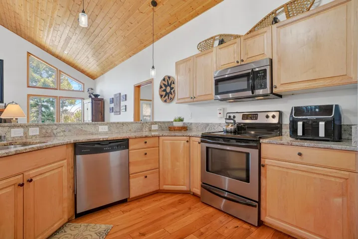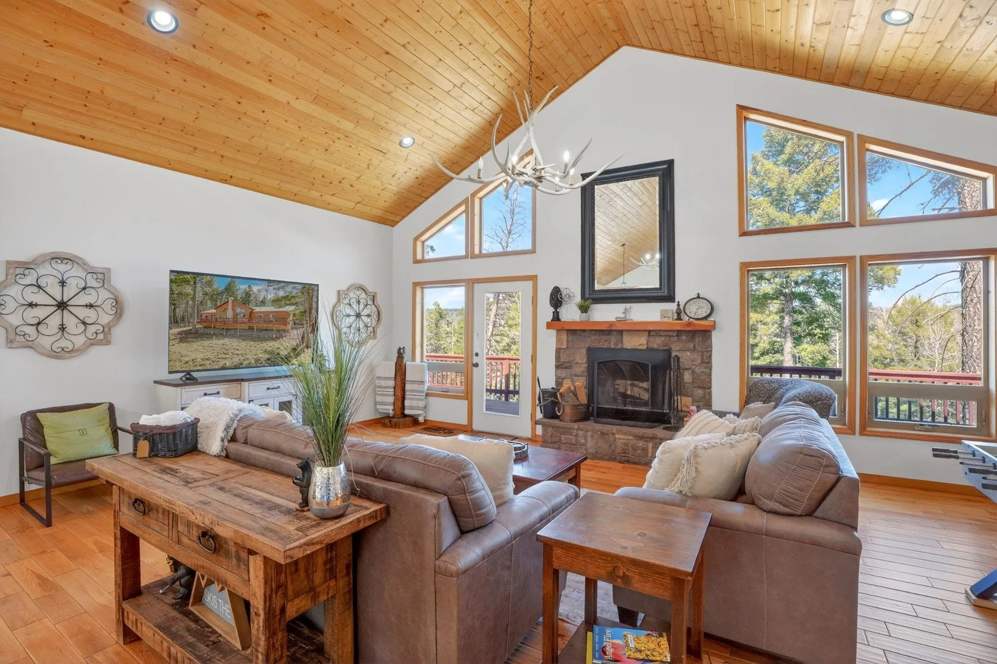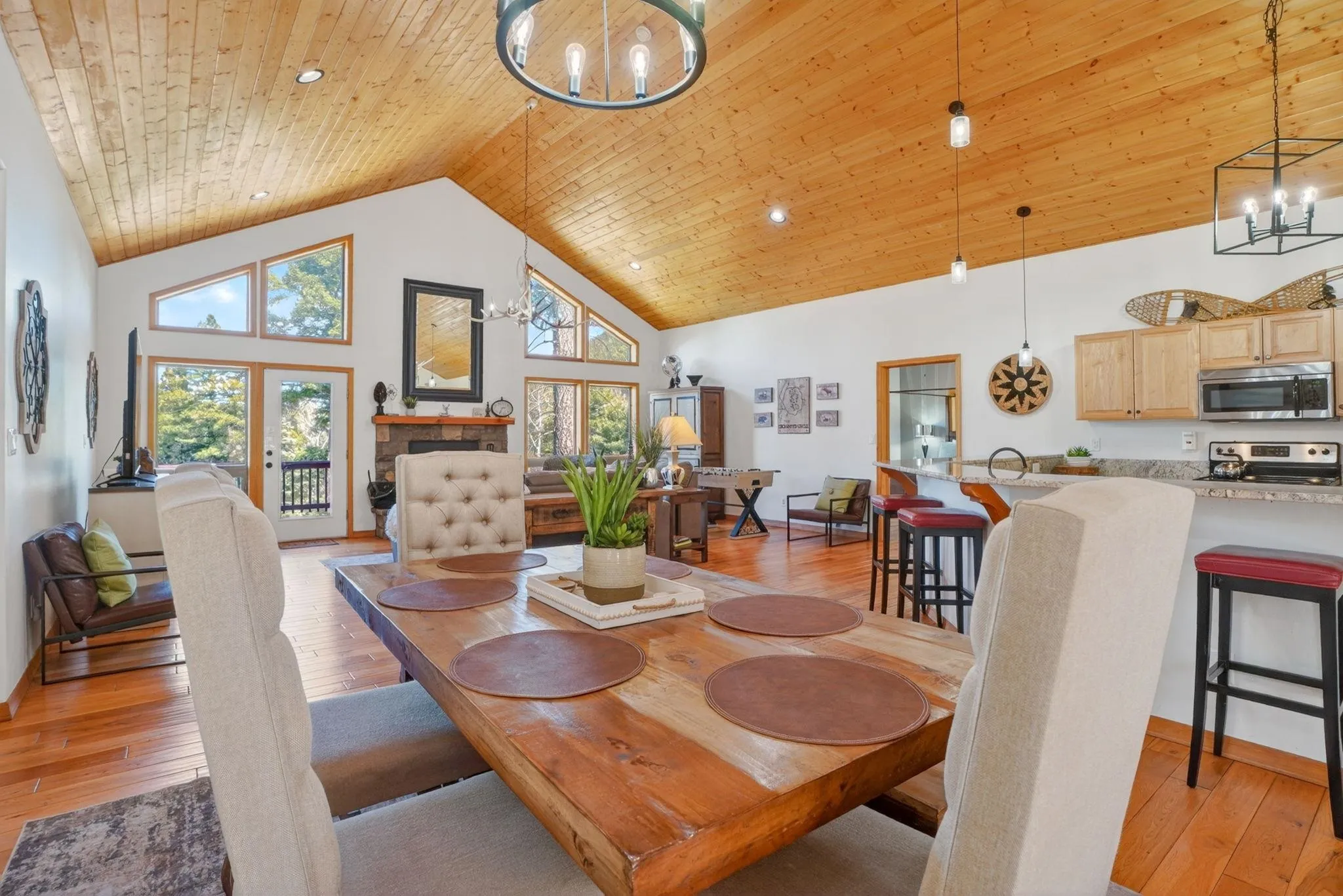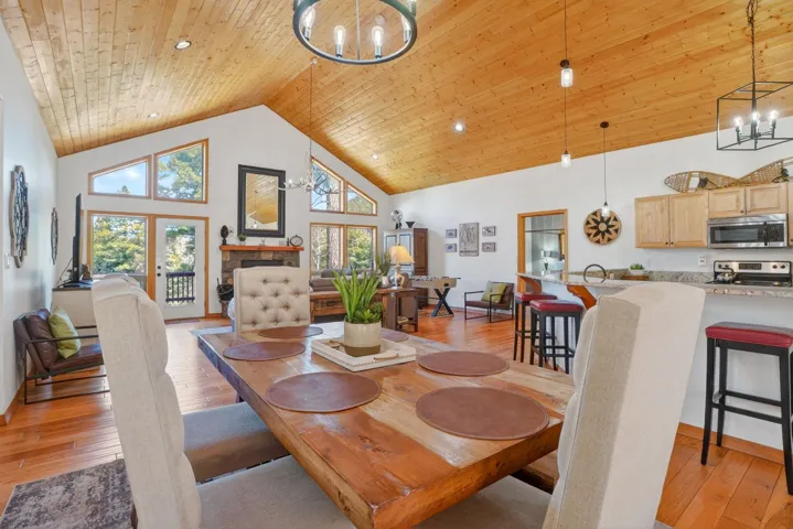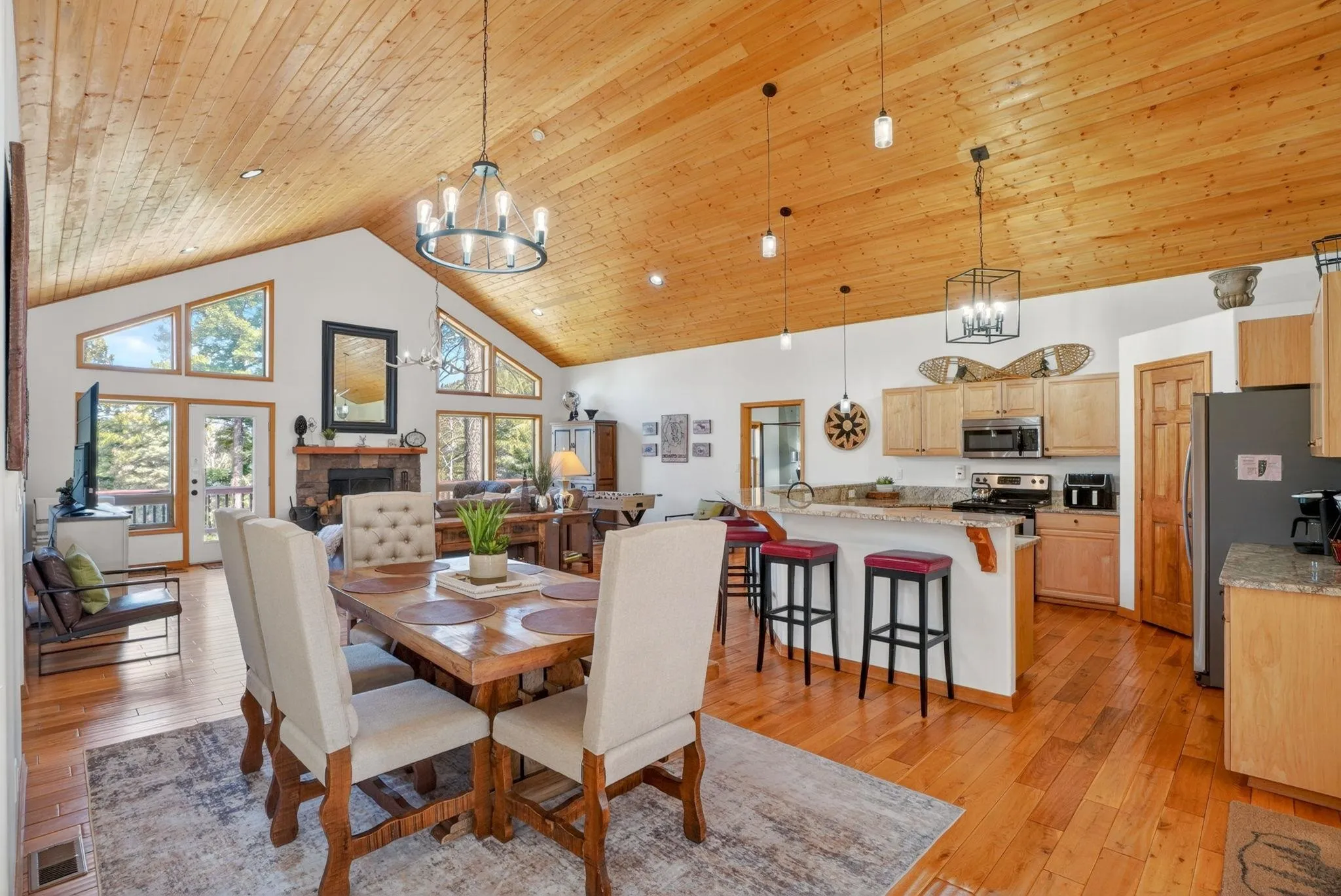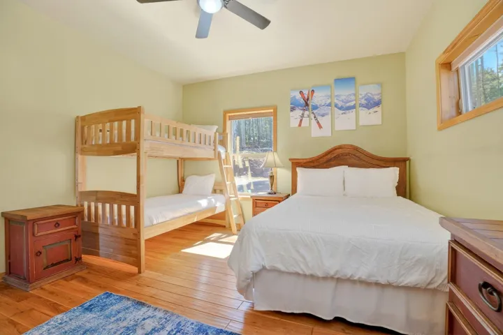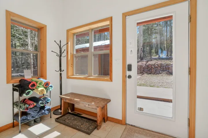 While the setting feels tucked away, 342 Back Basin is located on one of Angel Fire’s highest-priority roads, offering quick and easy access to the ski mountain, golf course, restaurants, and more. Designed for gathering, the home features an open-concept layout with vaulted wood ceilings, expansive windows, and a warm, inviting living area anchored by a stone fireplace. The kitchen flows seamlessly into the living and dining spaces, ensuring the cook is never far from the conversation. The true single-level layout is a rare and highly desirable find in Angel Fire, with no steps to enter, access the garage, or move throughout the home. Set apart from the main entry, a secondary entry space creates a natural landing zone for mountain living—whether you’re coming in from an adventure or stepping out to the hot tub. A bonus room, currently set up with a trundle daybed for extra guests, also works well as an office, library, or additional seating area. Outdoor living is just as compelling, with a spacious deck to the north and hot tub and grill areas to the south, creating multiple ways to enjoy the mountains throughout the day. The home has numerous recent updates, including a new roof, updated appliances, a hot tub, and furnishings, offering both comfort and peace of mind. Fully furnished and decorated, it’s ready to be enjoyed from day one.