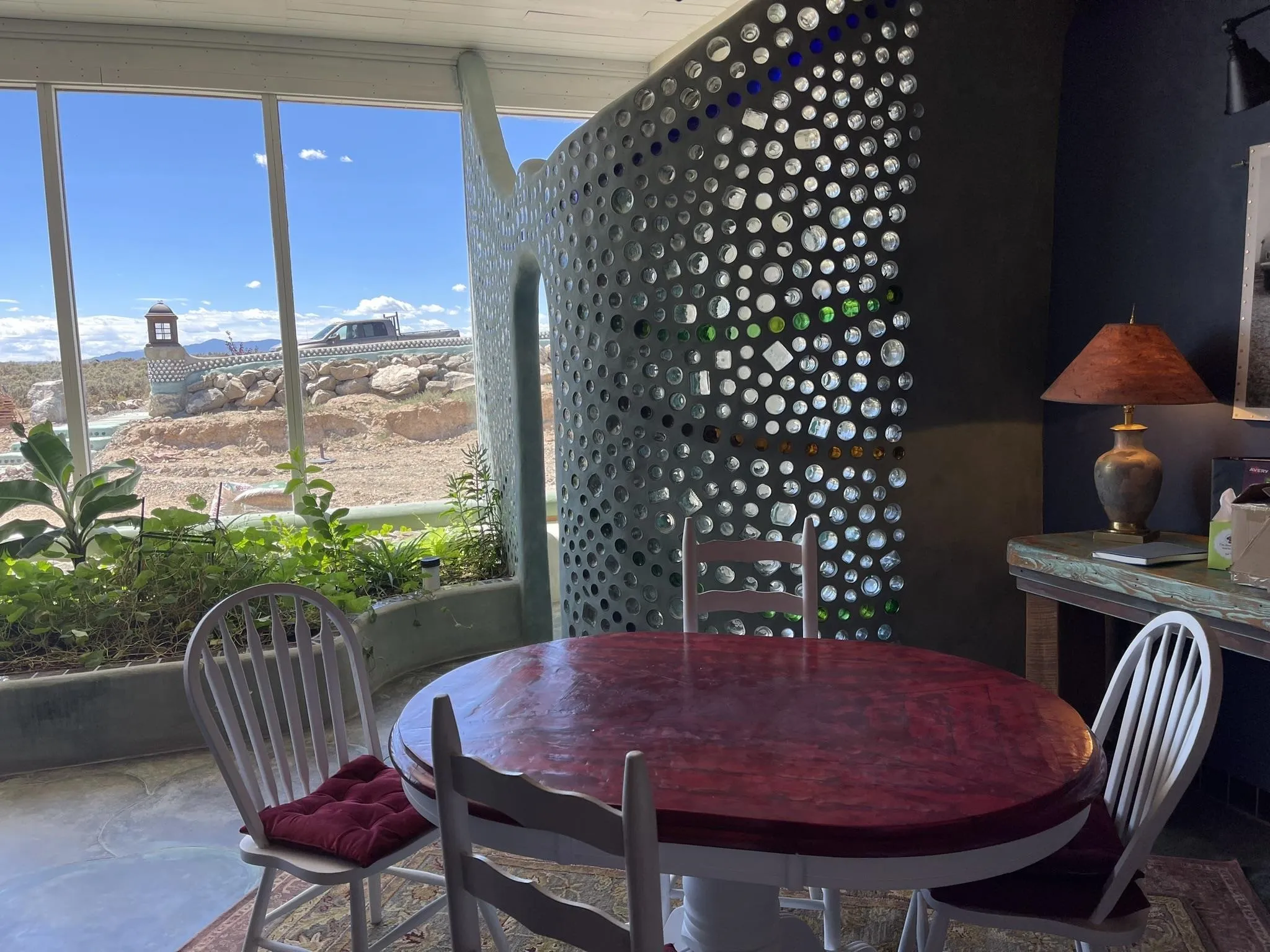 The Atlantis Earthship is ready to provide autonomous living for all peoples. The latest Unity model form the world famous Michael Reynolds is a living breathing sculpture. This 2 bedroom, 2 bath home sits on 3 acres with a veranda overlooking a mini gorge. It’s fully sustainable and off grid with a greenhouse. Keeps one warm all winter and cool in the summer.