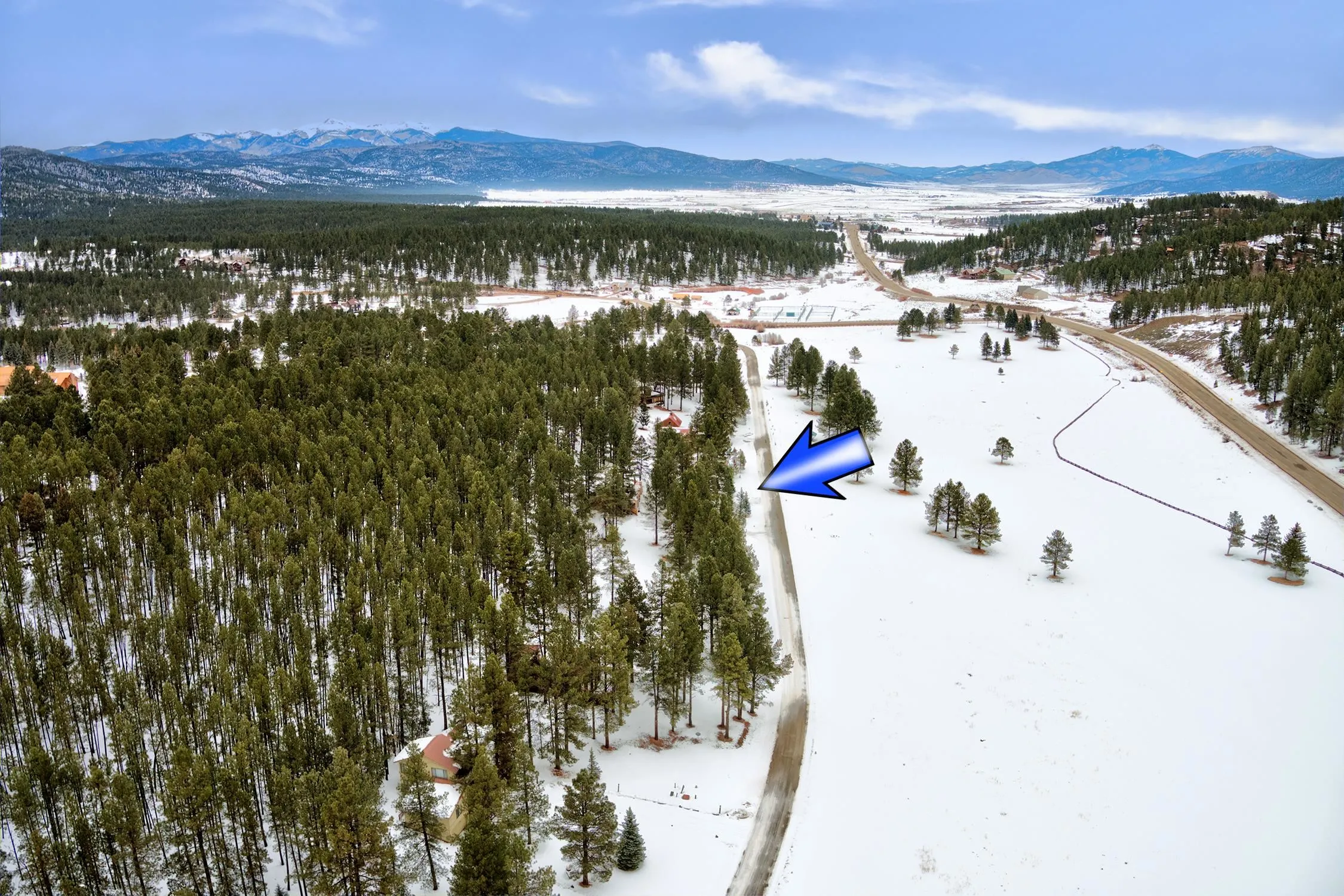 Beautiful homesite with a golf course view! Build your dream home on this lot that is just over 1 acre and right across a paved street from the Angel Fire Golf Resort Course. A home tucked in the pine trees of this lot with a gentle slope will give you the comfort of privacy and the convenience of a great location.