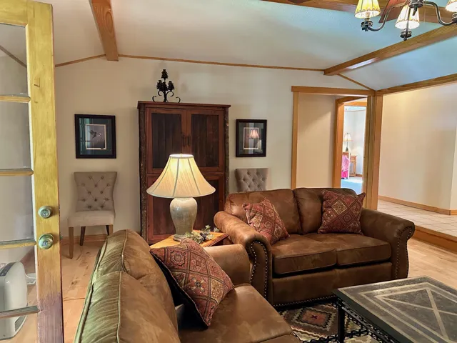 Ready for Ski Season, Spring Break, Easter and beyond…This easy all-weather access mountain home is nestled in the Southern Rockies on the Enchanted Circle of northern New Mexico, minutes from the Angel Fire Resort ski mountain. Being just outside of the Angel Fire Resort but still in the Village of Angel Fire, there are no Resort HOA dues. In the winter, there are filtered views of the Resort ski mountain. Almost 1 acre of beautifully forested, level land. Two bedrooms , two baths on main level and a second living space, primary bedroom and ensuite bath on lower level. Forced air heating. Wood burning fireplace insert in living room. Wall/space heaters for additional spot heating. Large kitchen with S/S appliances. Washer/dryer outlets are in a 195 sq-ft heated area in the lower level which is not included in the square footage in this MLS listing. Appraisers might not include that square footage in their appraisal due to certain appraisal guidelines. The covered back porch is perfect for outdoor dining, entertaining and relaxing. Wonderful back yard for the kids, pets and privacy. There is even a fenced area for pets. This versatile property would make a wonderful primary home or the perfect get-away from the stress of the big city. There are no restrictions on the number of short term rentals in Angel Fire, making for some potentially valuable supplemental income when you’re not in town. Fiber-optic internet with super-fast data transfer is run to the house giving you opportunity to work from home but ski on your lunch hour. The Angel Fire Resort ski mountain/nationally recognized mountain bike terrain park is only a 6 minute drive (2.5 mi) and the $15 mill Angel Fire Resort Country Club with its PGA-rated golf course is about 7 minutes away. Average summer temperature is 76 degrees with no humidity. Mosquitoes, chiggers, no-see’ems, fleas and poisonous snakes don’t like altitude and choose not to live here. A few minutes away is the Angel Fire Airport primarily for private aircraft with a jet-capable runway accommodates your Gulfstream. In December of 2024, Advanced Air added 5 weekly roundtrips from Albuquerque. Only 15 minutes to Eagle Nest State Park for fishing, about a 30 minute drive to Red River, 45 minutes to Taos, 2 hours to Santa Fe and 3 hours to Albuquerque. This is a package that is hard to beat. Plan a visit soon and explore the many possibilities that Angel Fire, NM has to offer.