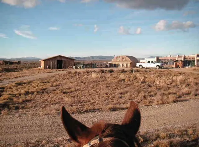 An Earthship (Aloe Vera House) as the main house, shared wall with the Casita (Rosemary Casita), and a Studio (Turquoise House) as a separate guest house with a barn, five stalls, corrals, and extra space to expand with ~2 empty acres of land. All income producing properties could bring in $6,000 per month with all three rented out.