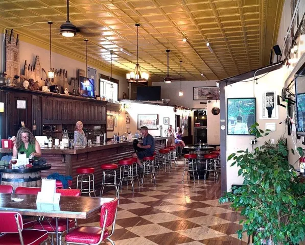 Custom Artistry and Living Water on Historic Burch~This 1,400-square-foot residence separates itself from the standard market through deep customization and intentional detail, functioning as a curated home rather than a typical condo. A vaulted great room with tile floors leads into a kitchen anchored by custom cabinetry, stainless steel appliances, and a striking copper-topped breakfast bar.
