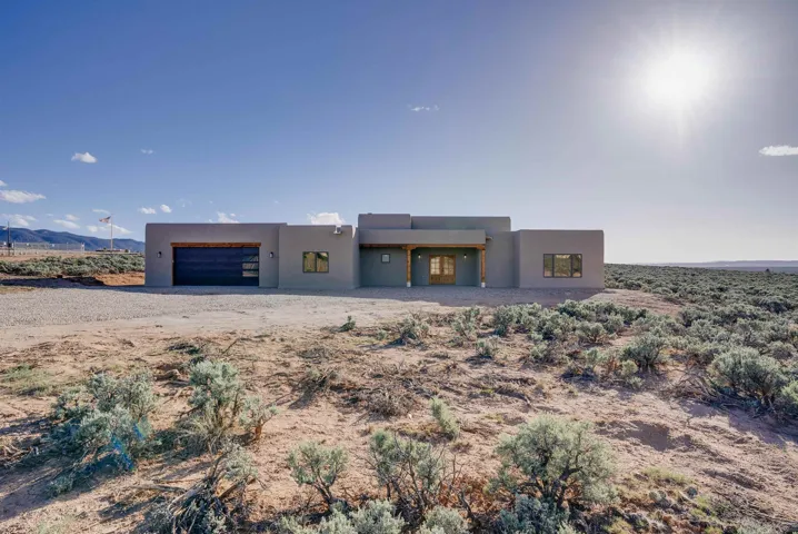 Nestled in a tranquil setting just off the pavement and adjacent to the renowned Taos Country Club, this brand-new 3-bedroom, 2-bathroom home offers the perfect blend of modern luxury and Southwestern charm. With a spacious 2-car garage and expansive floor plan, this residence is designed for both comfort and style.