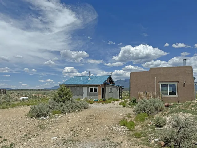 Here’s a flexible property featuring two 700 square feet casitas on 2.53 unrestricted acres! Main house constructed in 2017 has entry mud room and open living/dining/kitchen areas with lots of windows framing wrap around views of sunset, Taos Mountain and Sangre de Cristo Mountains. Painted concrete floors with in floor radiant heat.